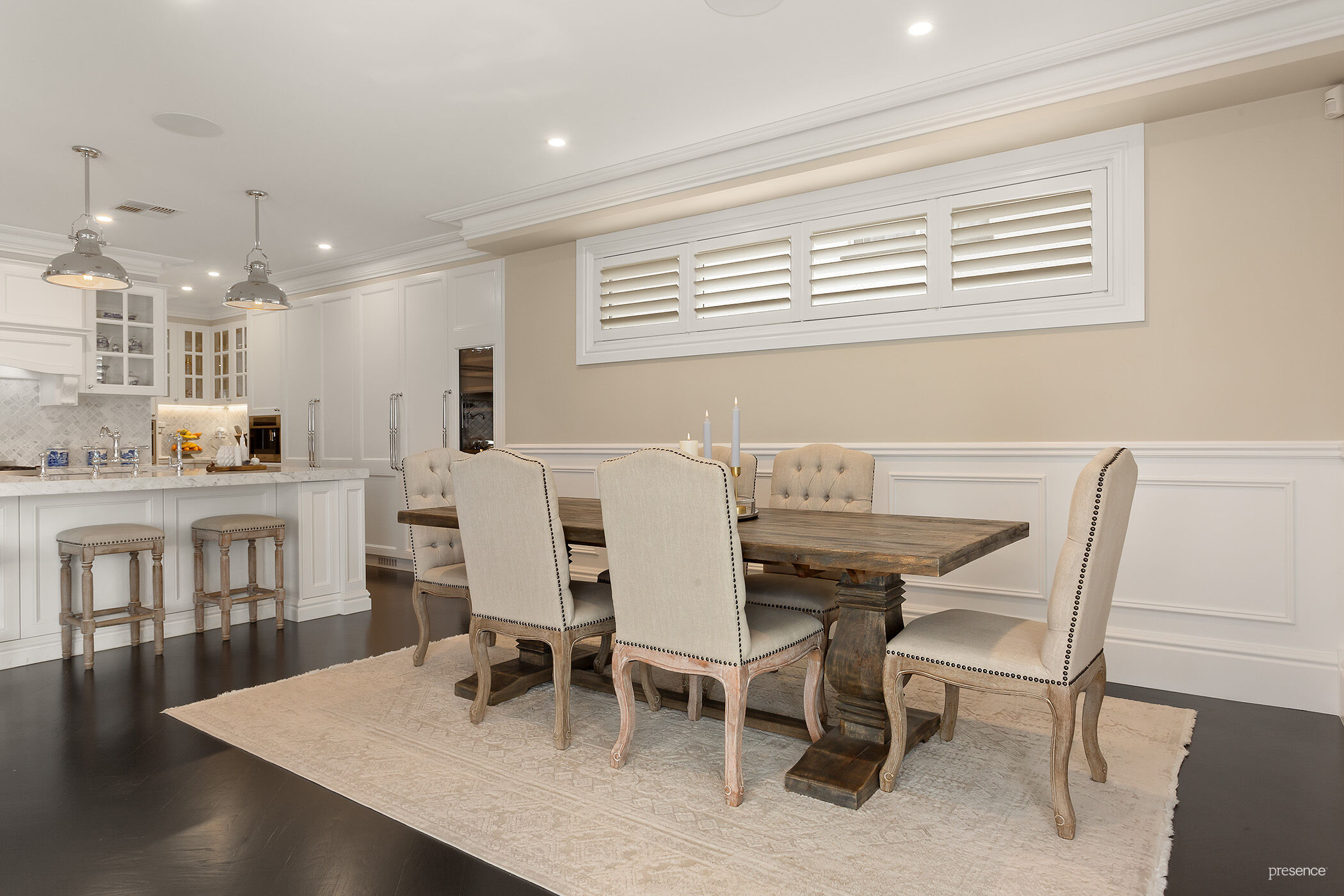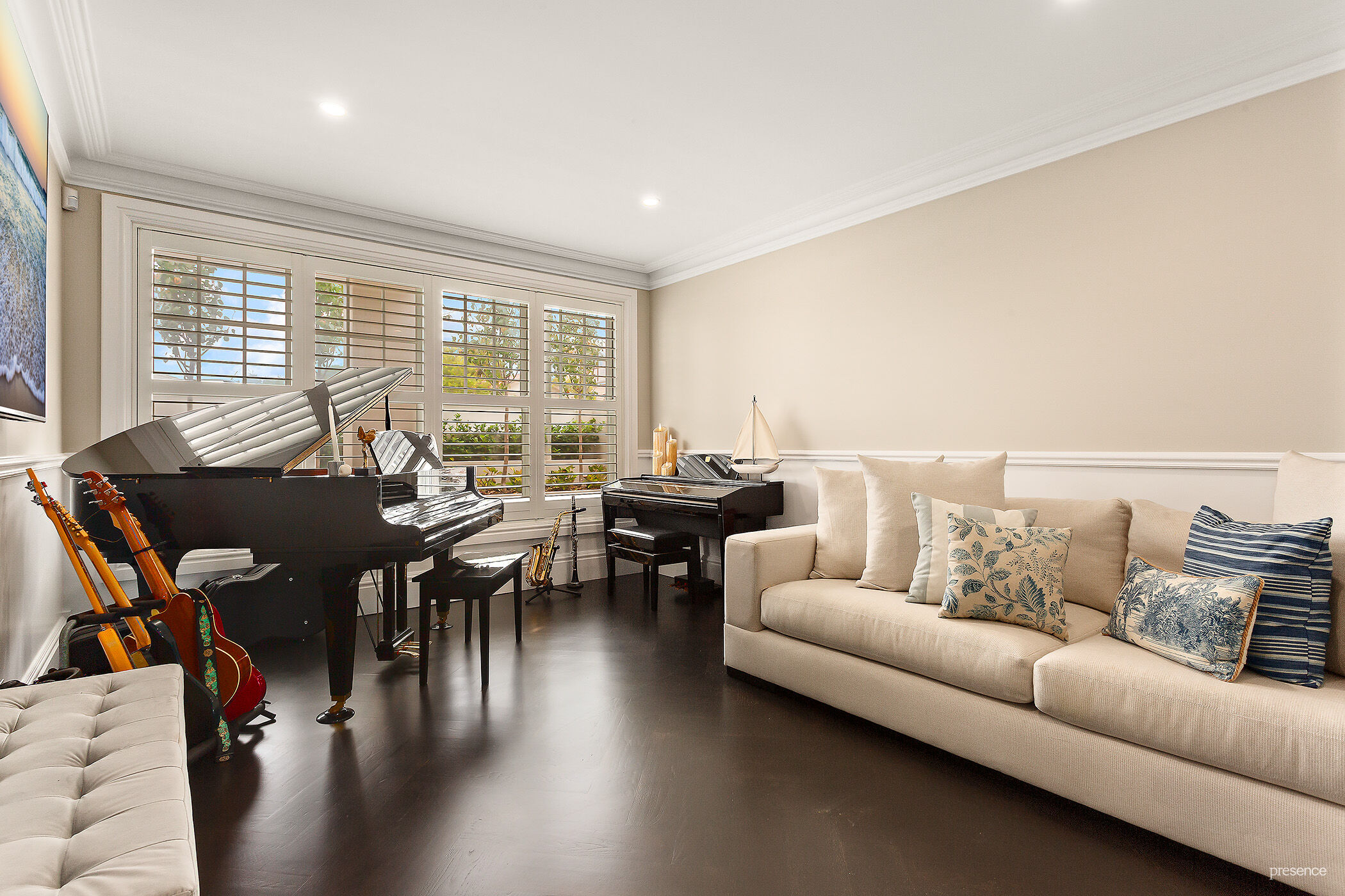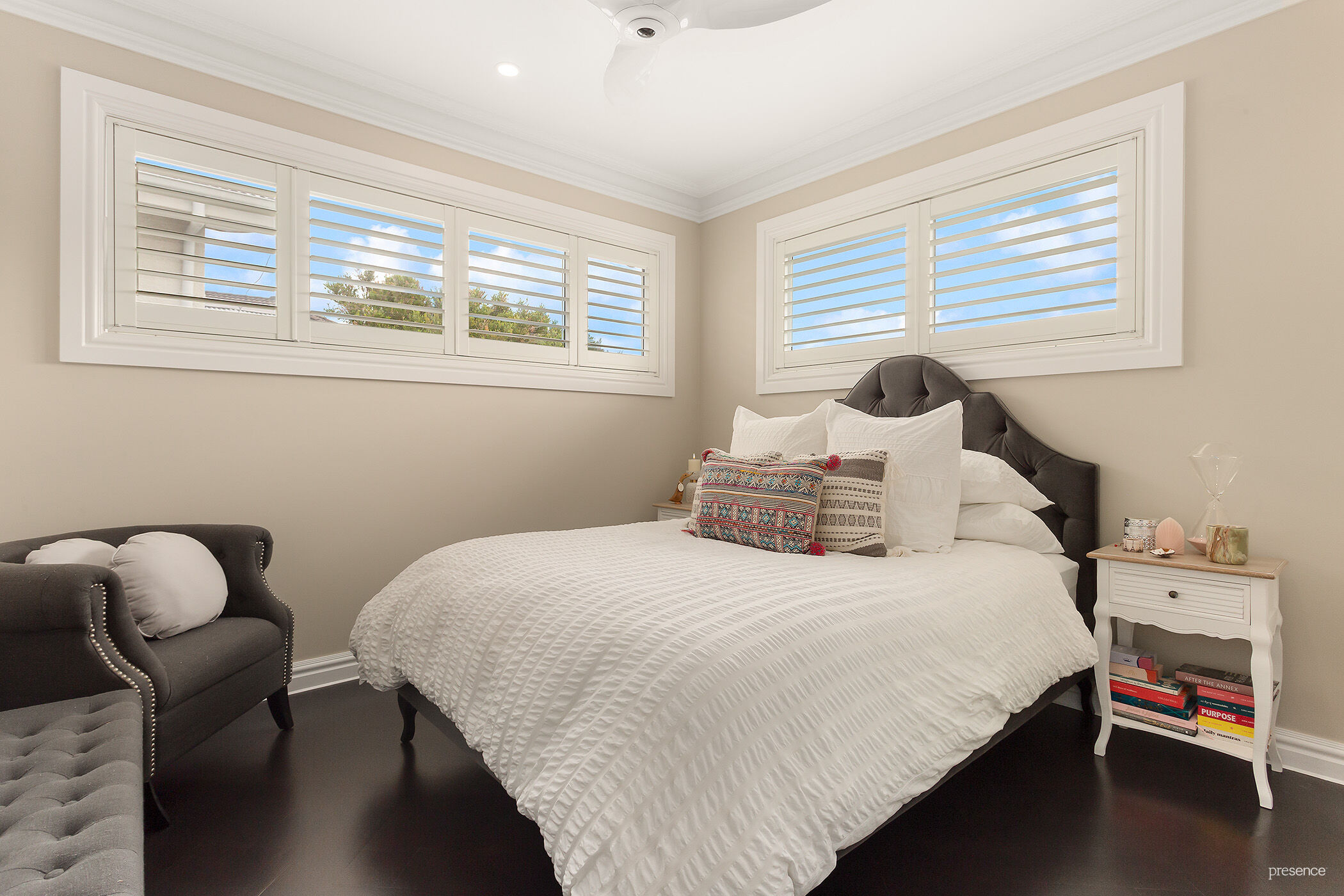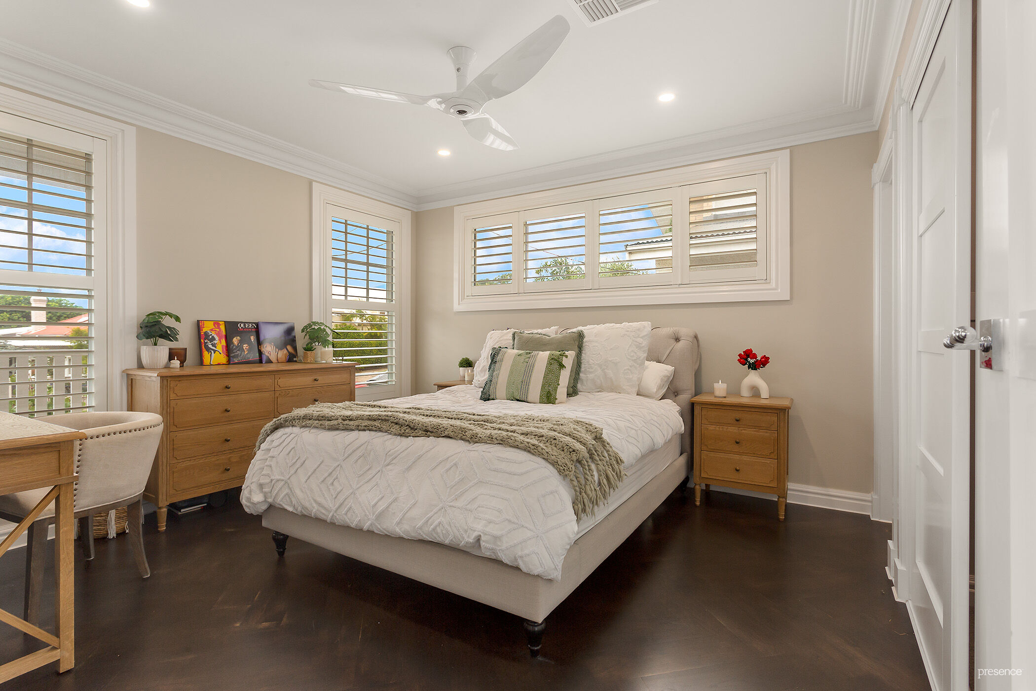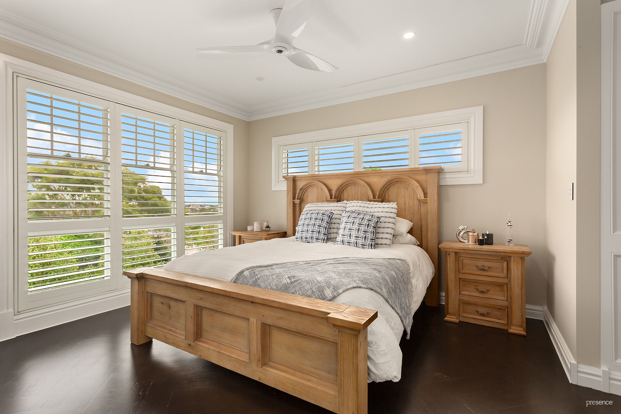 – All four bedrooms fitted with plantation shutters and Bigass Haiku fans, two with ensuite, master bedroom with custom dressing room