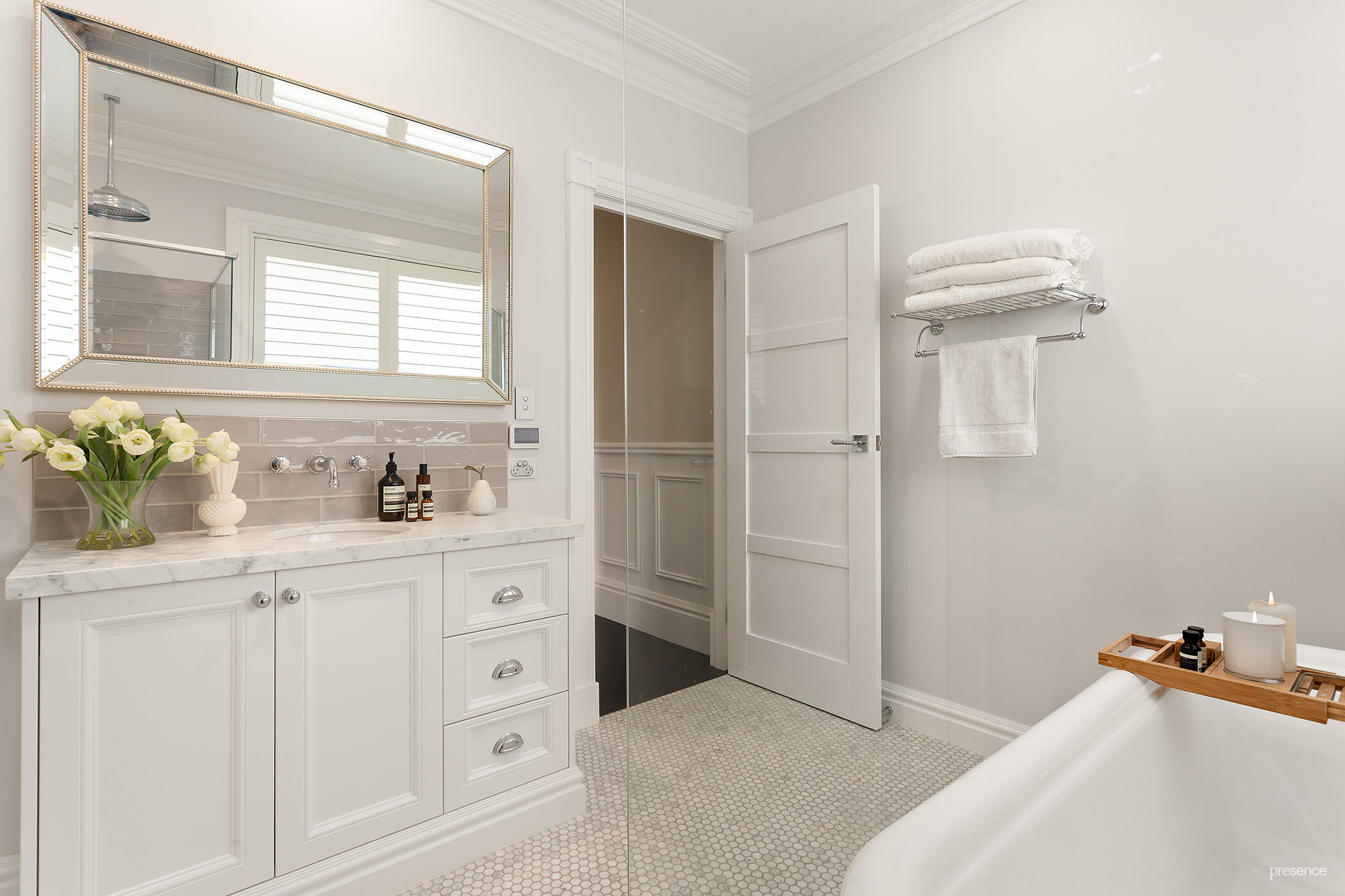 – All wet areas fitted with imported Perrin & Rowe tapware, marble vanities and tiles, under floor heating