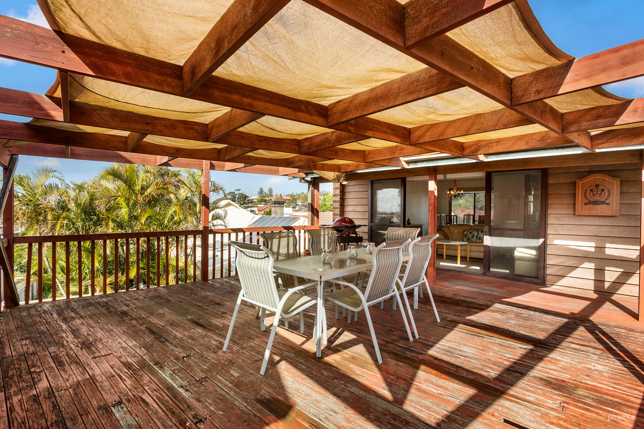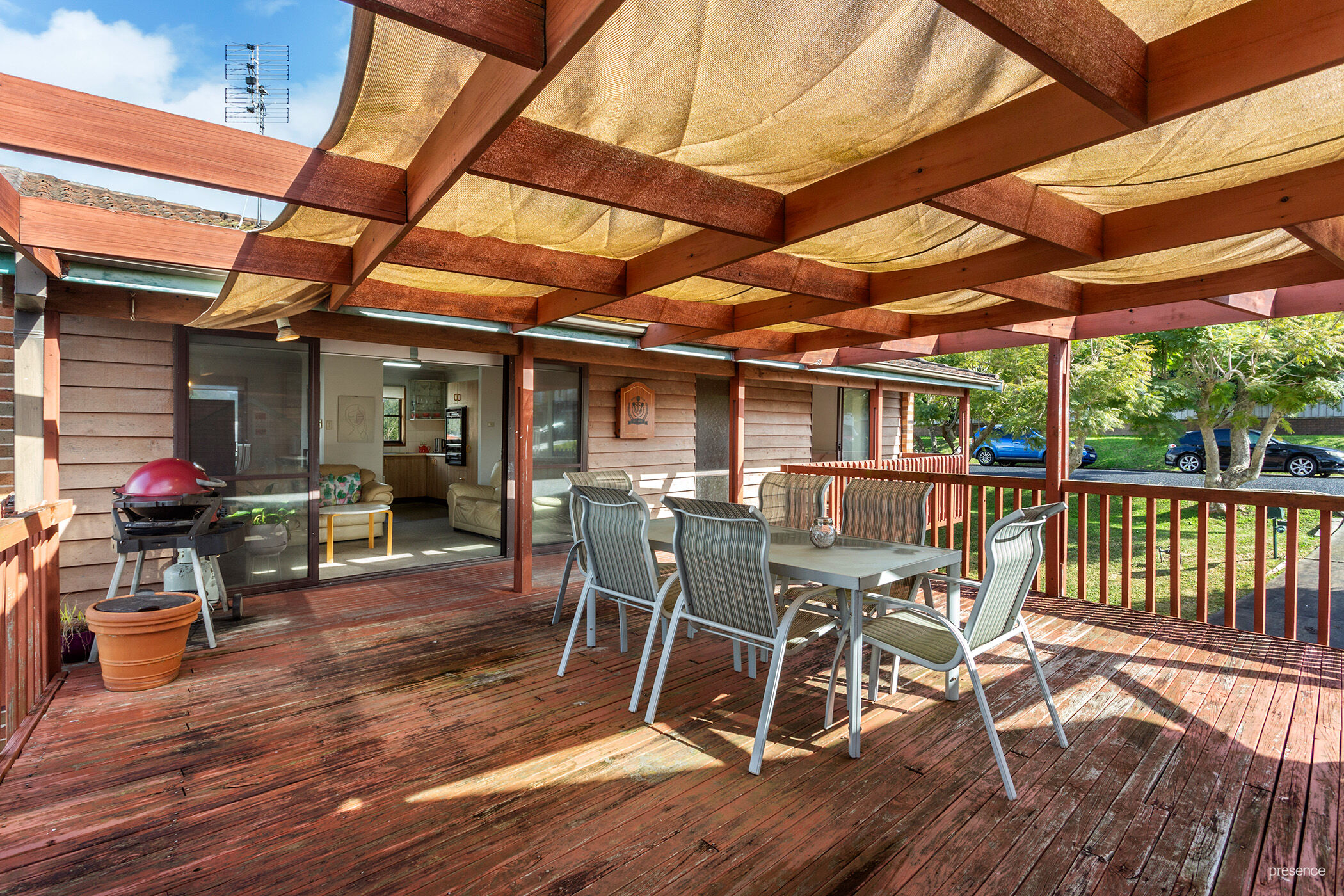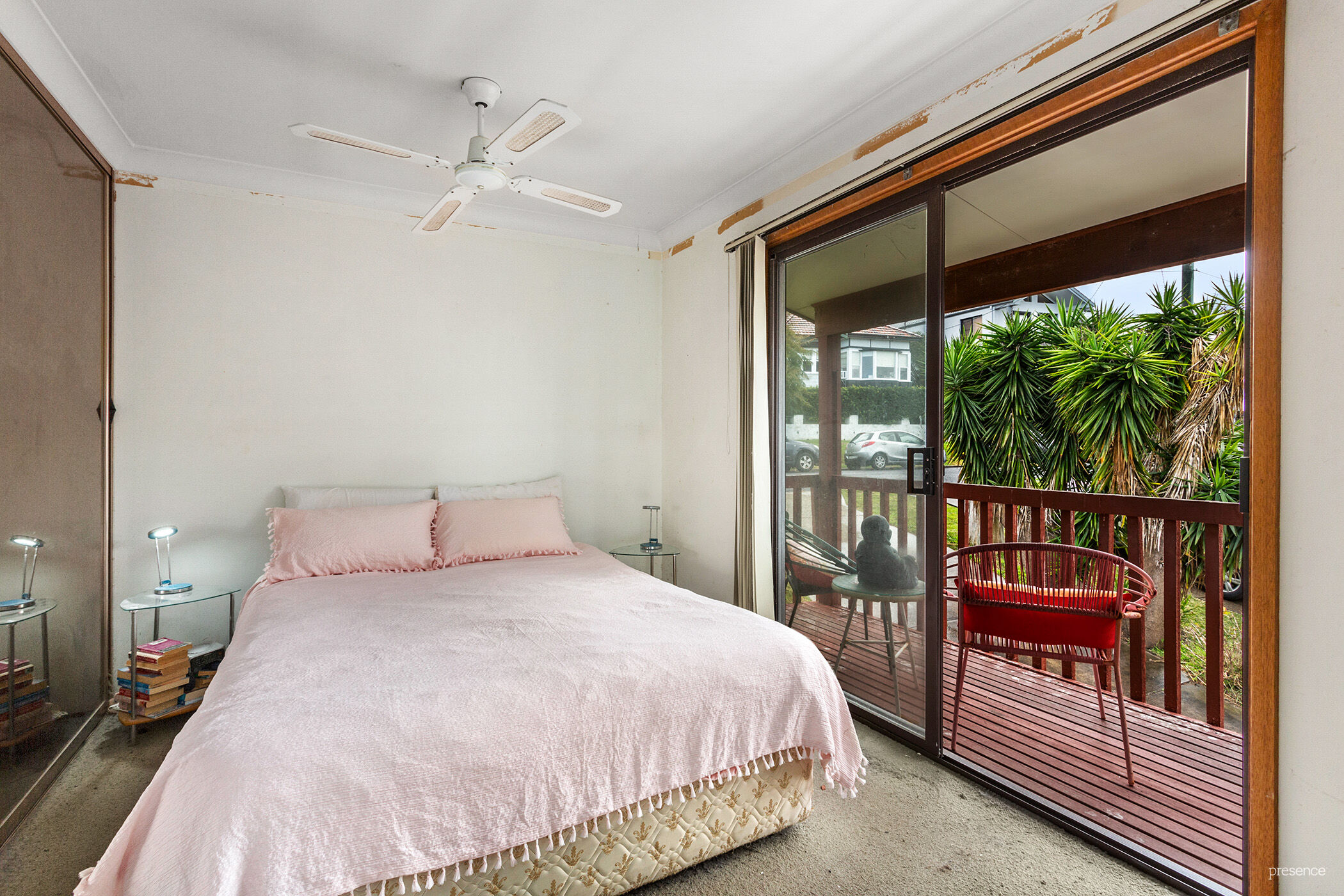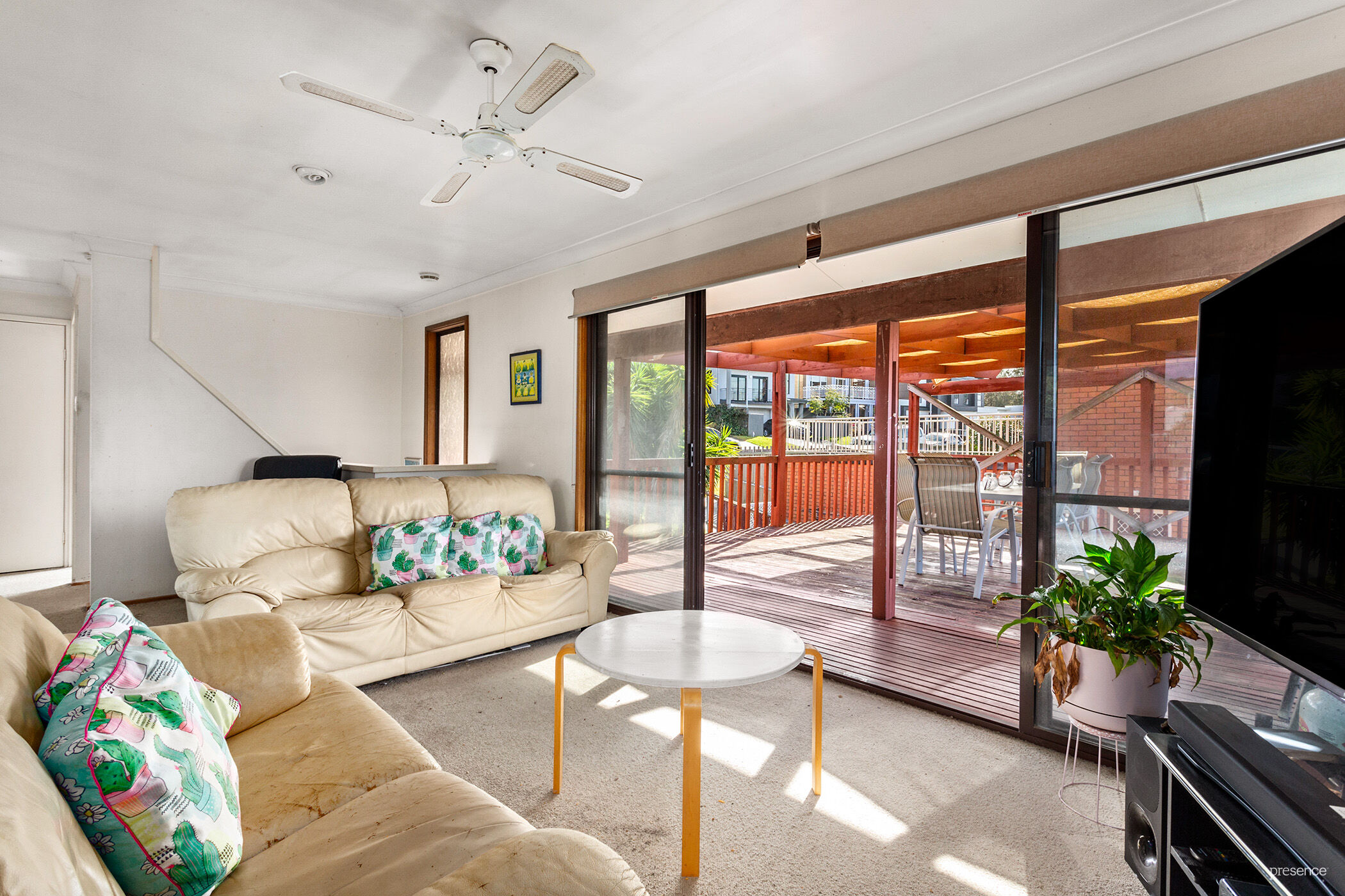 – Large, covered deck accessed from living area & main bedroom enjoys views & sunshine