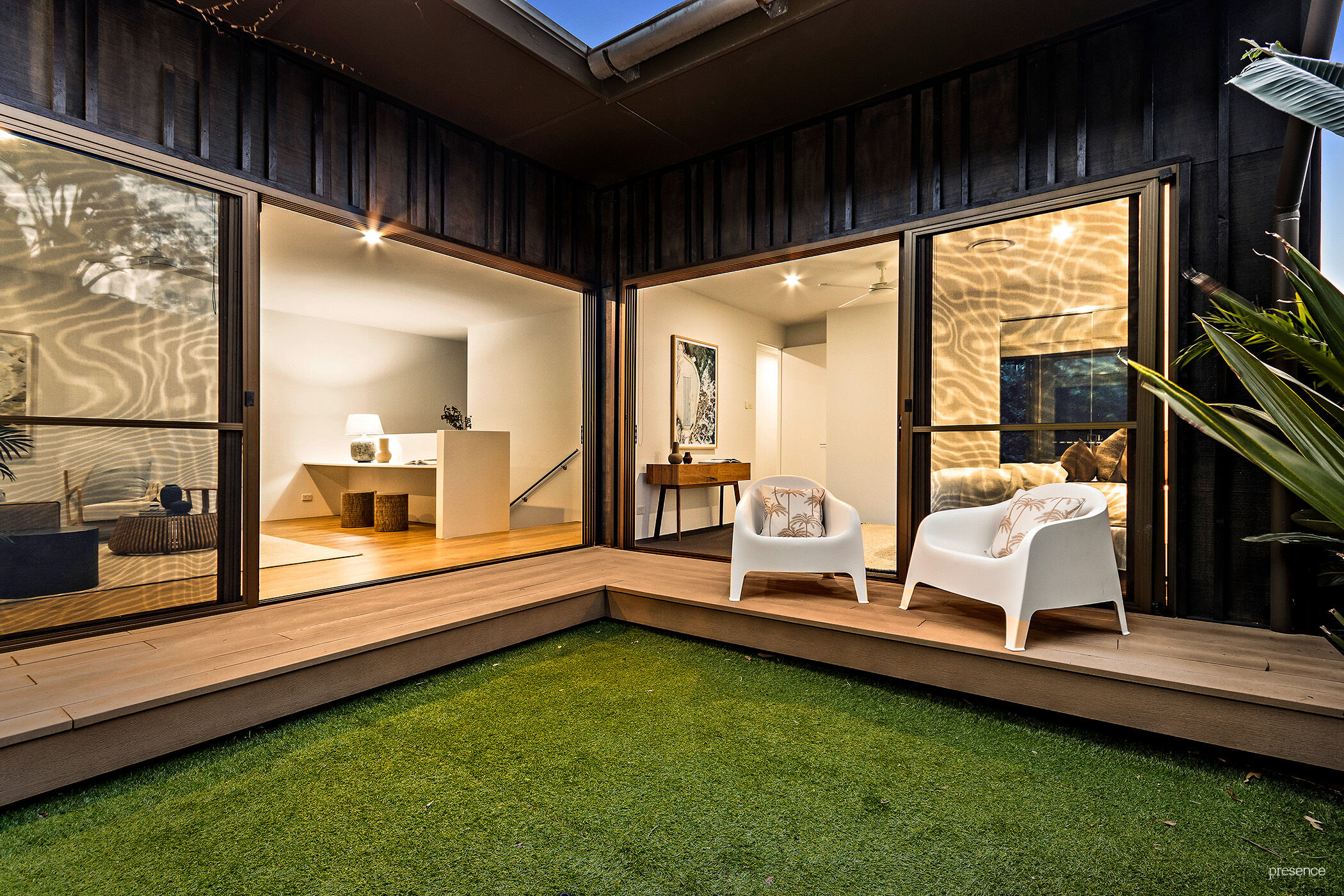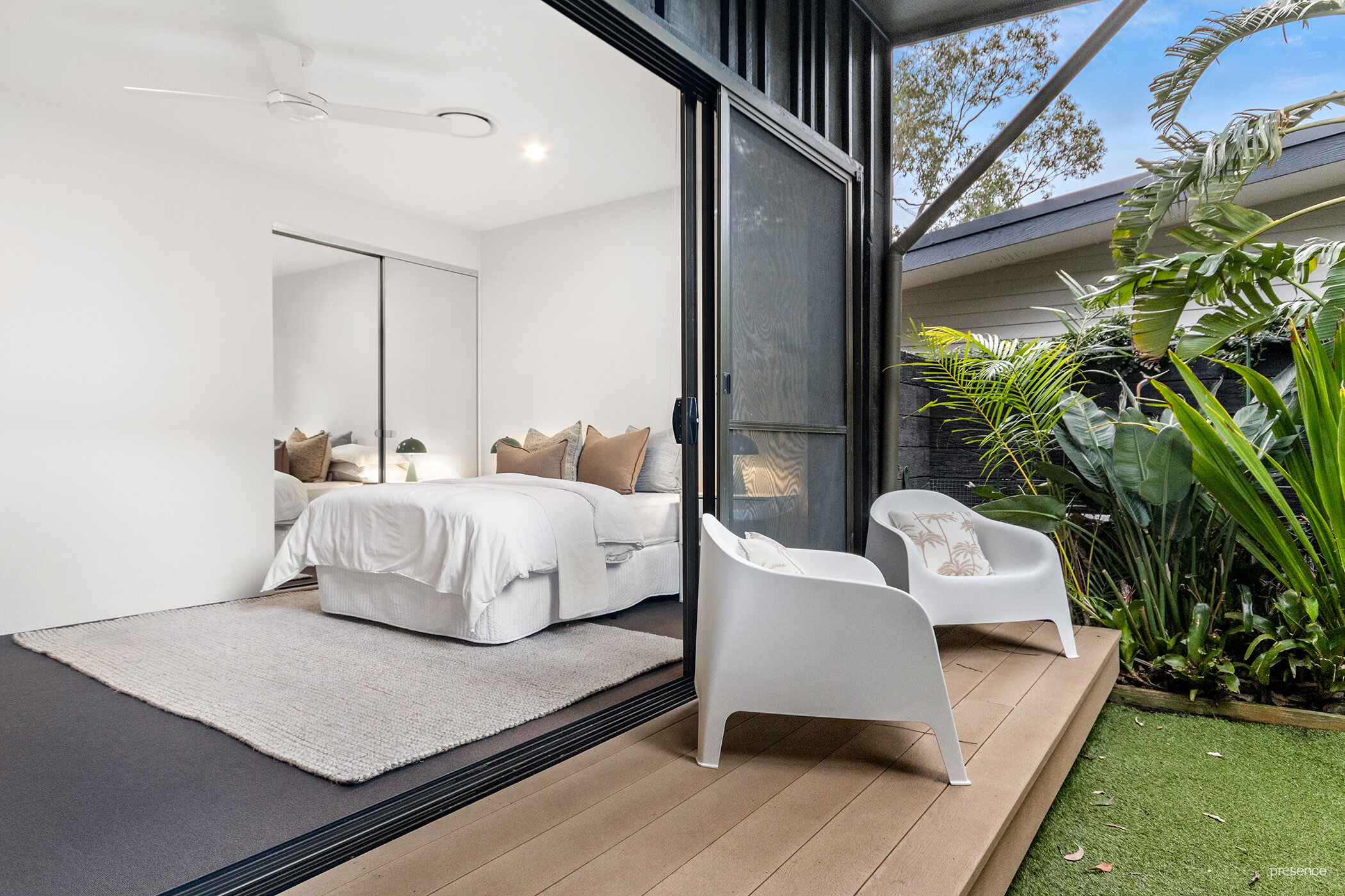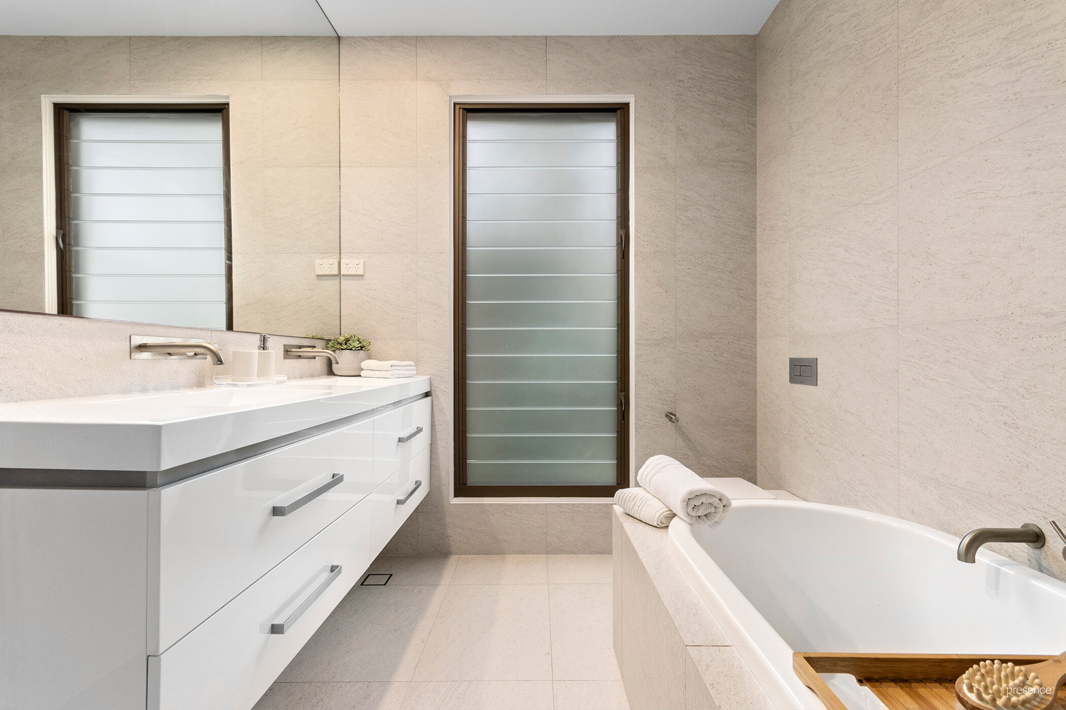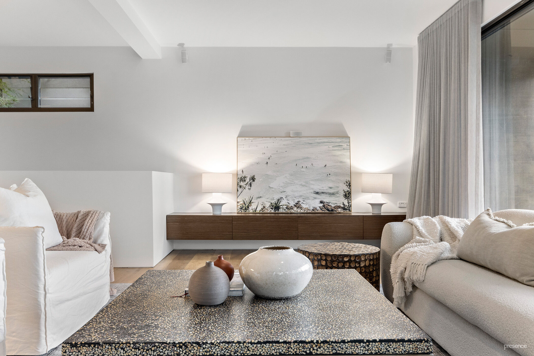 Experience a dreamy interplay of space, texture, and natural light, enhanced by an organic palette and finishes in oak, concrete, and glass that define liveable luxury. Wide leafy vistas create a beautiful and serene backdrop to the main open plan living area, BBQ entertaining deck and master bedroom, making you feel like you’re in your own secluded haven.