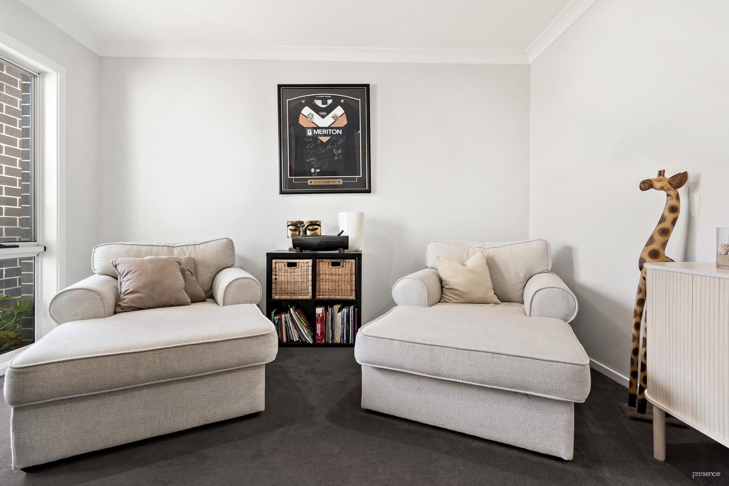 Behind the electric gates, you’ll find plenty of room to relax in two separate living areas, anchored by a sleek, gas-equipped kitchen. The flow from the indoors to the patio and travertine-edged pool, complete with spa jets, a waterfall, and LED lights, is seamless. Upstairs, the four bedrooms and two bathrooms offer a quiet retreat from the day’s activities. Plus, with ducted A/C and a 13.2kw solar system, comfort and efficiency are a given.