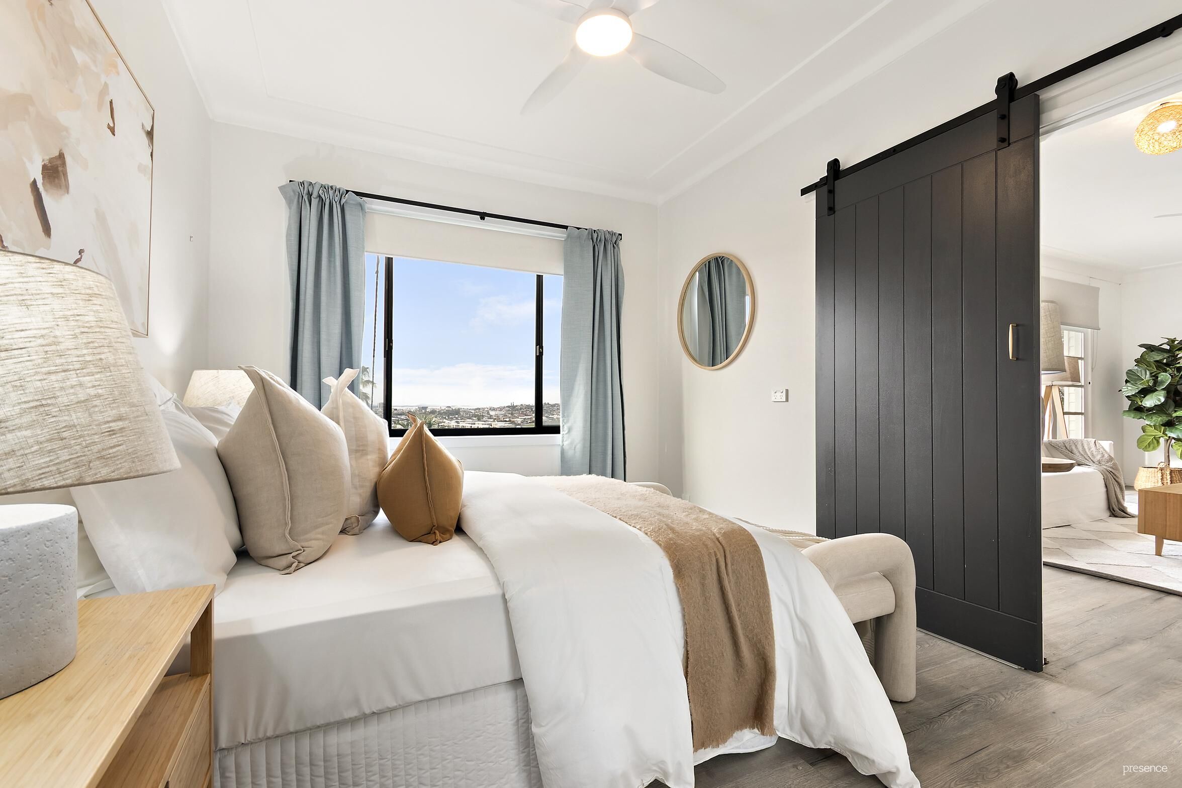 Two of the three bedrooms capture the views, oversized third bedroom at rear