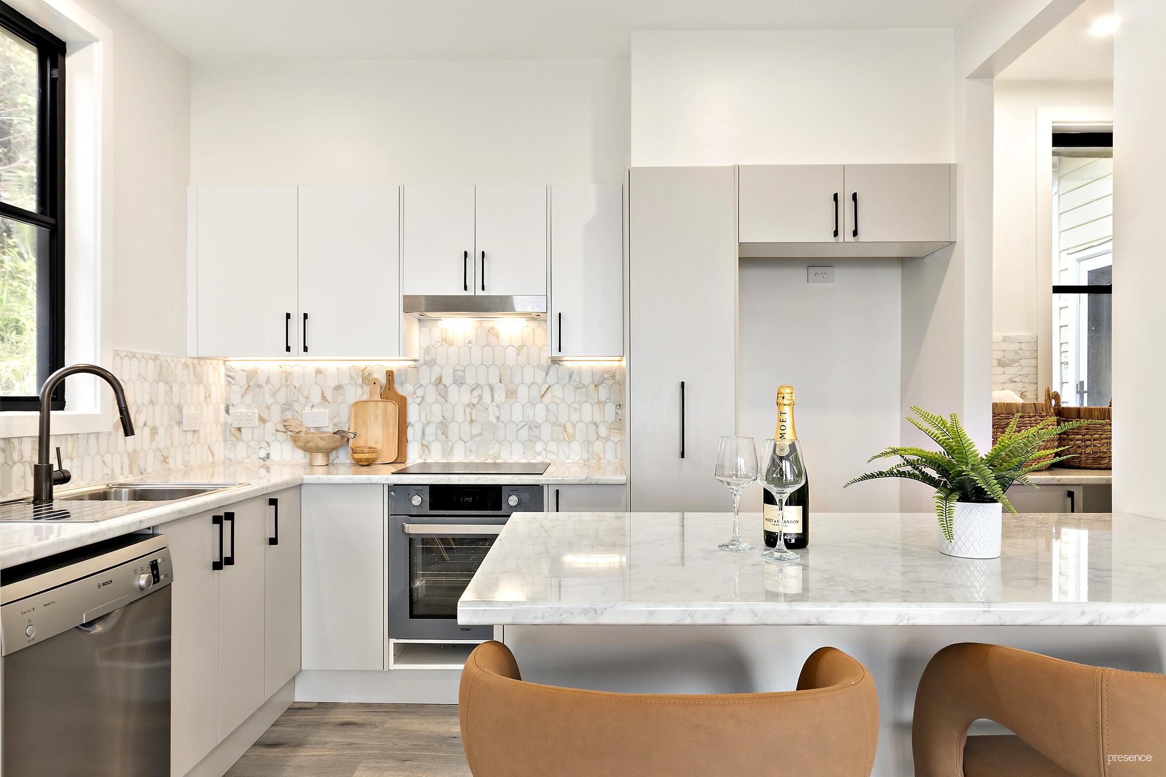 Modern new kitchen, induction cooktop, under bench oven, dishwasher, pull-out pantry