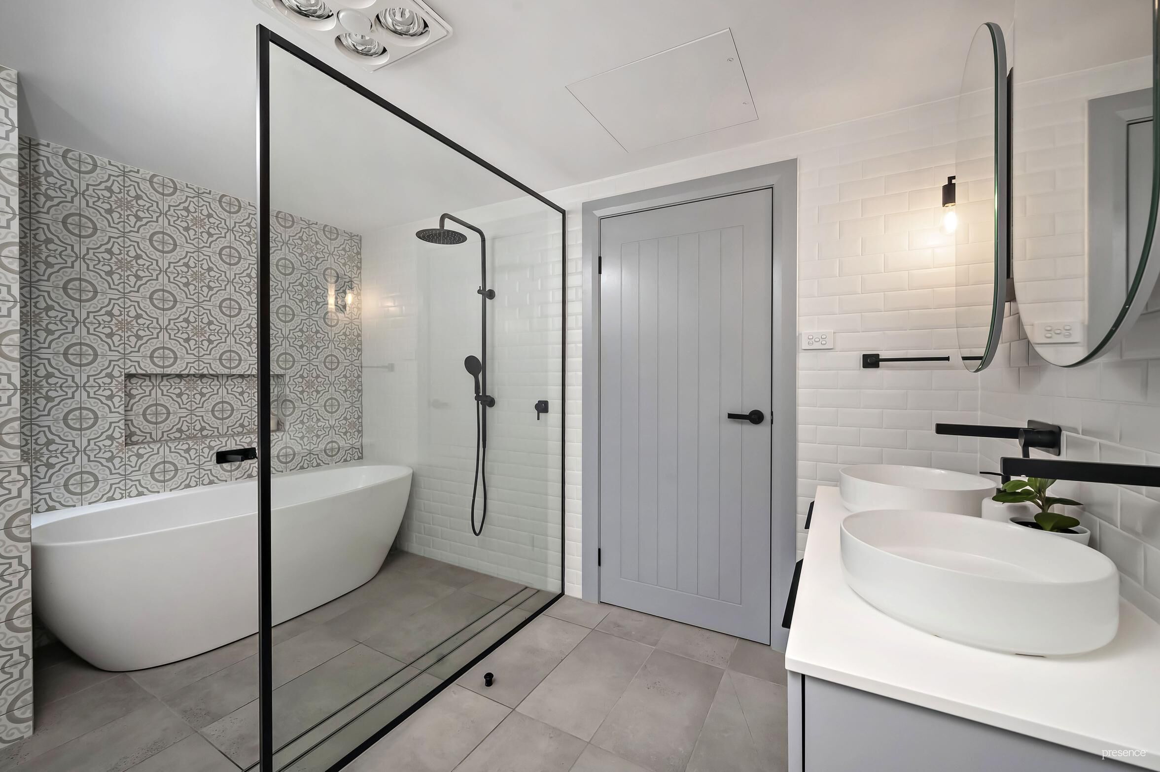 – Three bathrooms with floor-to-ceiling tiles and rainfall/hand-held showers