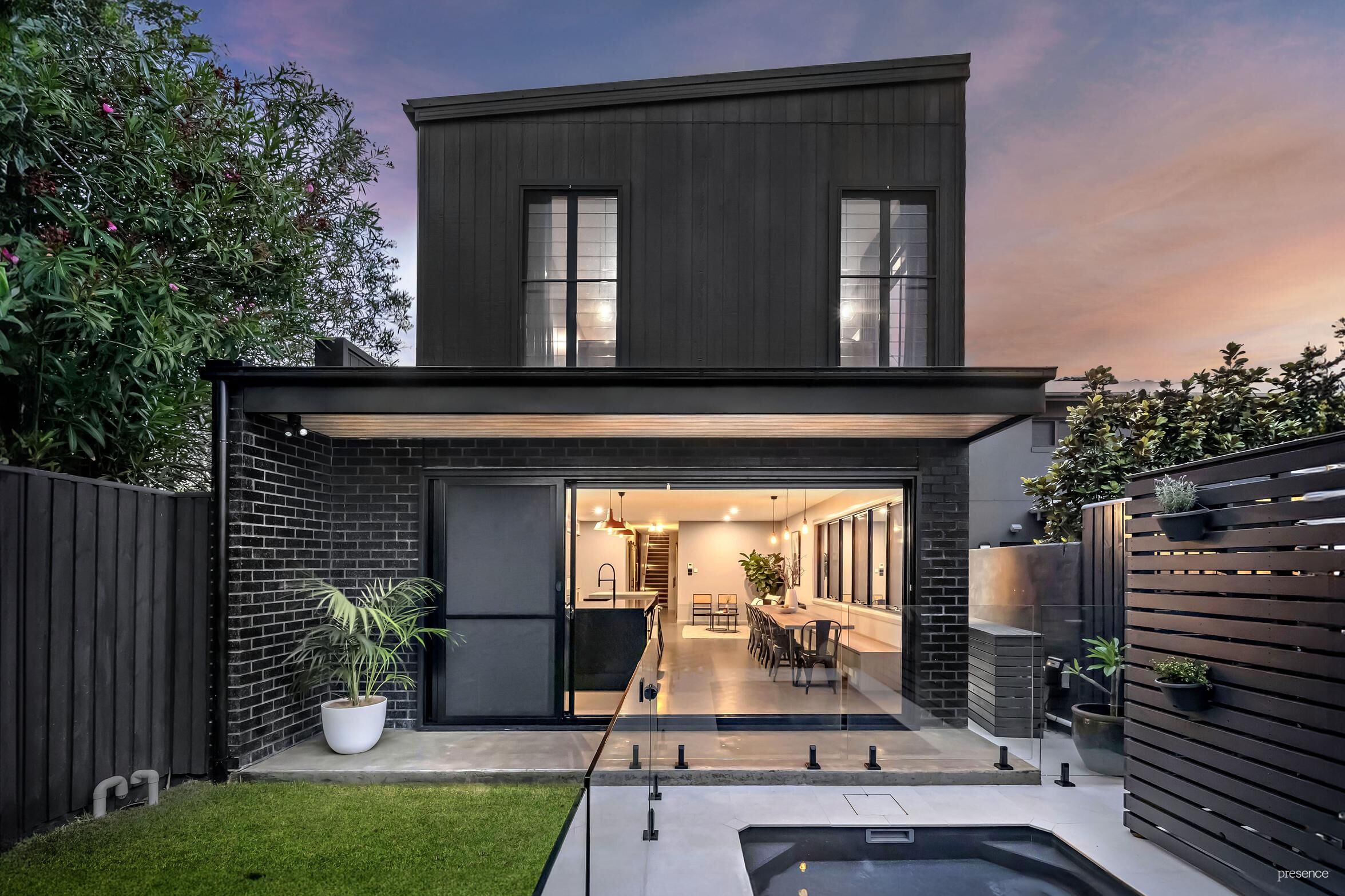 The bold black metal façade of this brand new, architecturally designed industrial-style four-bedroom residence sets the tone for a truly unique and sophisticated family home. Just a short stroll across Empire Park to Bar Beach, this one-of-a-kind property delivers high-end finishes, thoughtful design and exceptional indoor/outdoor living in one of Merewether’s most desirable pockets.