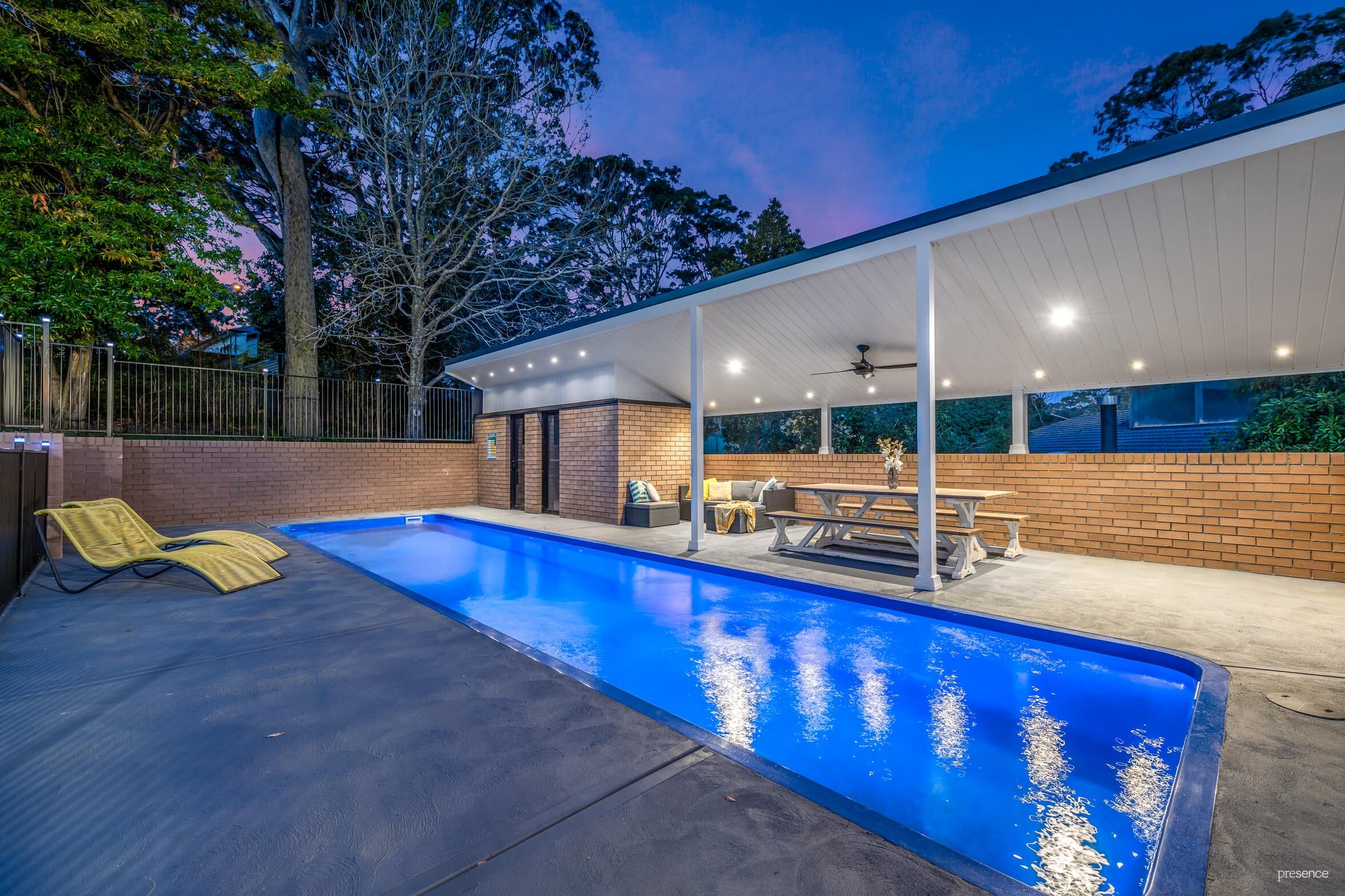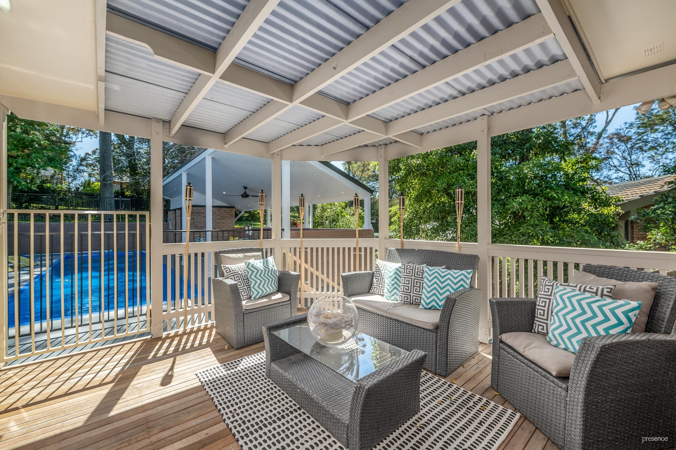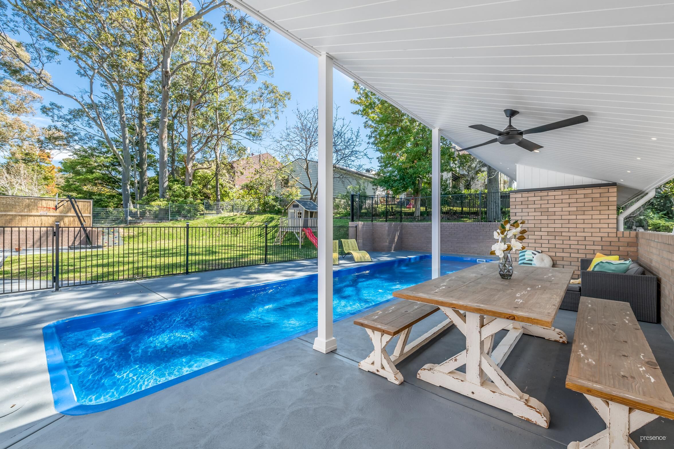 – A choice of poolside alfresco entertaining spaces and established gardens