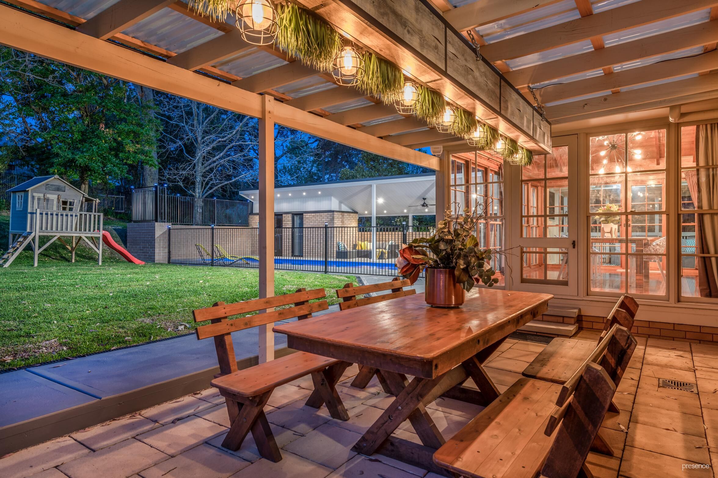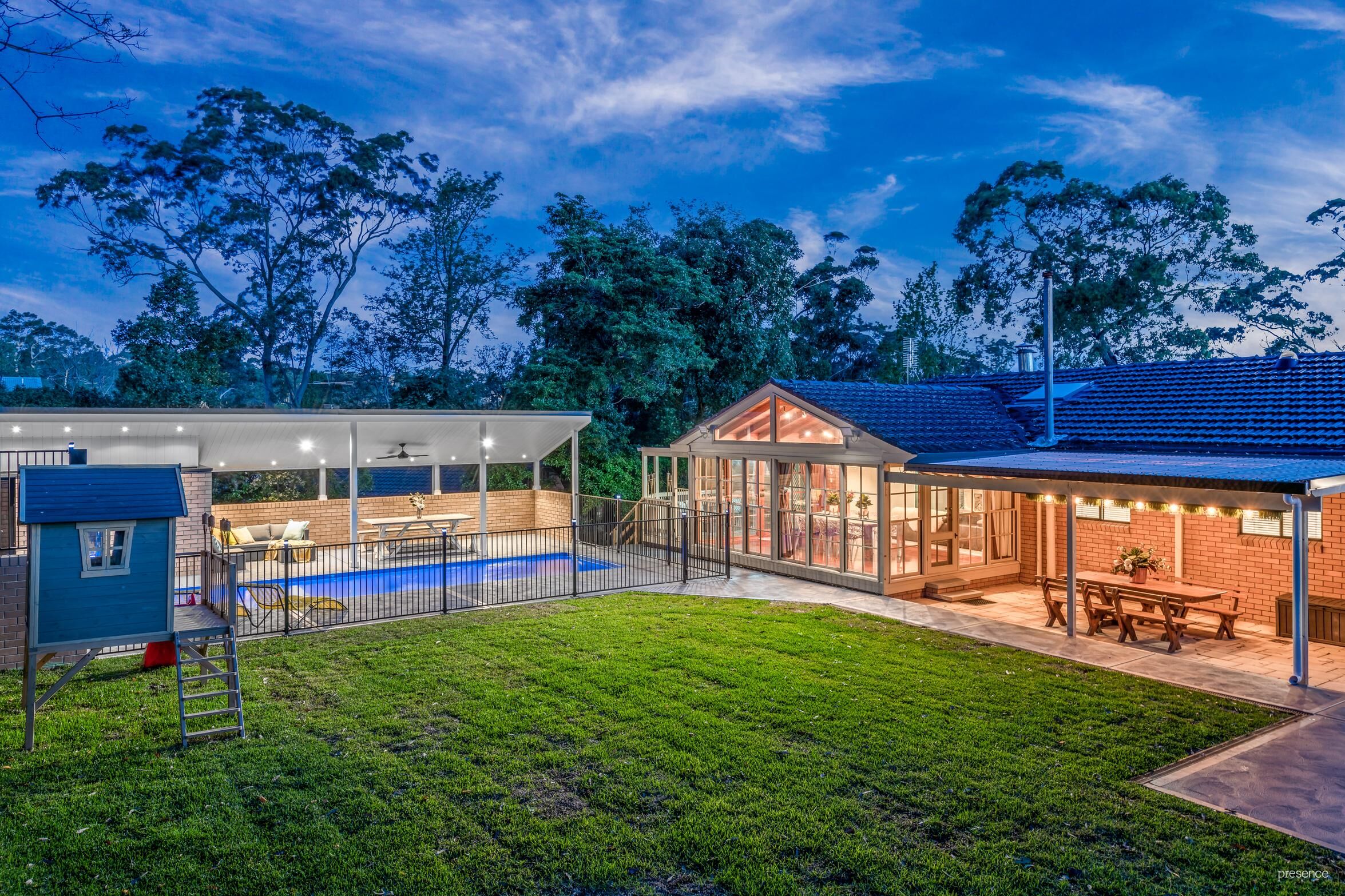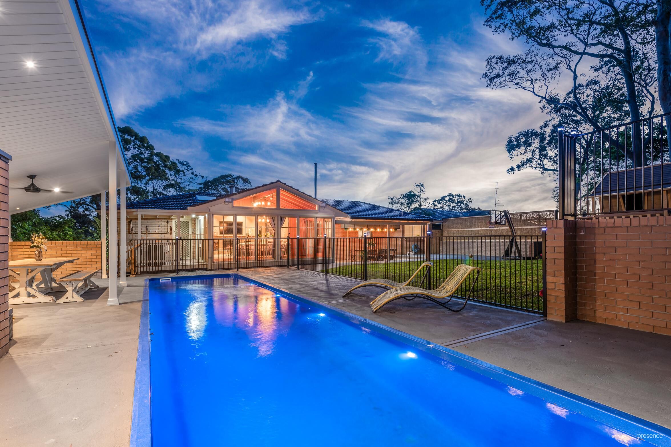 – A choice of poolside alfresco entertaining spaces and established gardens