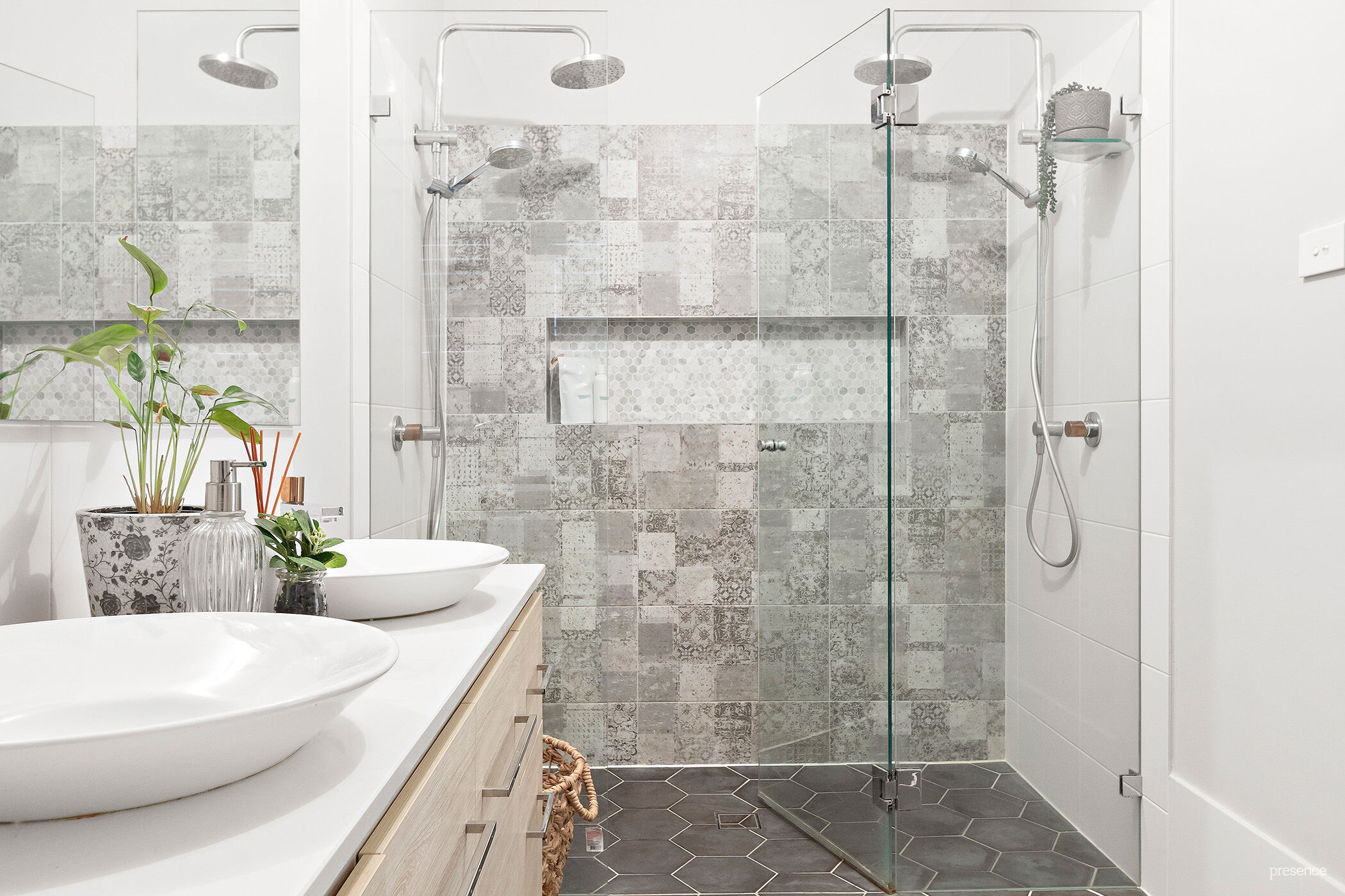 With commanding views and street presence this expansive home includes 5 bedrooms, 2 separate living spaces, a study and a media room. Everyone will have their own space but there are also plenty of places for the family to come together – whether it be gathered around the Caeasarstone kitchen island, lounging in one of the serene living spaces or watching a favourite movie in the media room. The open plan living/dining/kitchen flows onto the back porch. The exterior landscaping is a blank canvass – just waiting for you to create your own external paradise only limited by your imagination. The contemporary kitchen boasts a large walk in pantry, subway tiles and top of the range ILVE appliances which add superior function to an aesthetically beautiful kitchen. The elegant master bedroom features his and hers walk-in robes and resort style bathrooms boast trendy Italian-made tiles in honeycomb and Moroccan style, a divine soak in tub, and floating timber vanities.