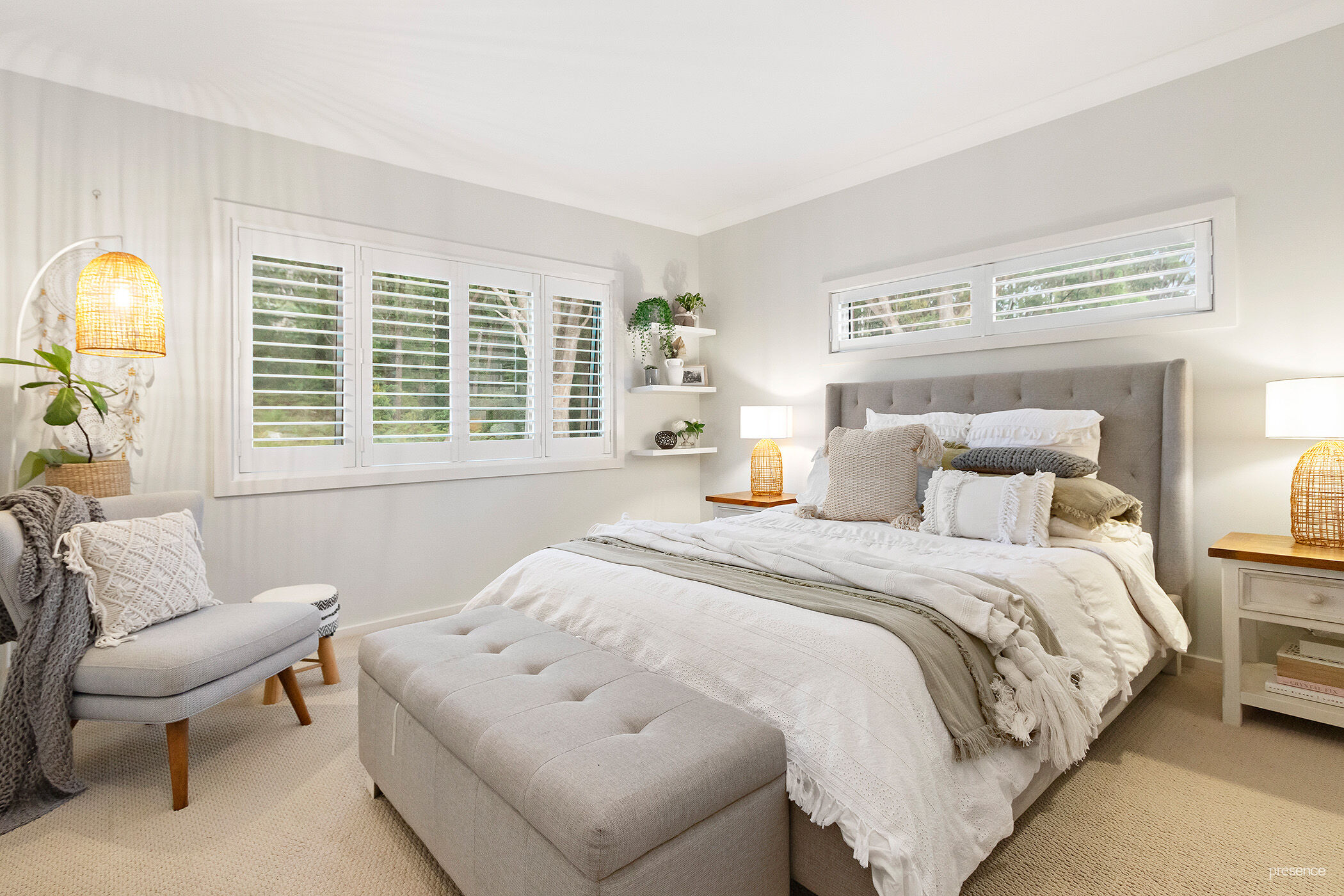 – Plantation shutters, quality super-soft carpets underfoot and stunning spotted gum timber flooring