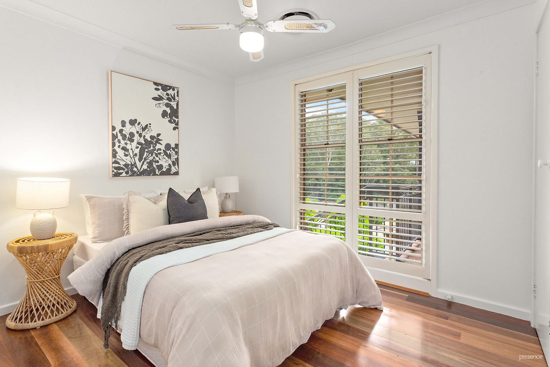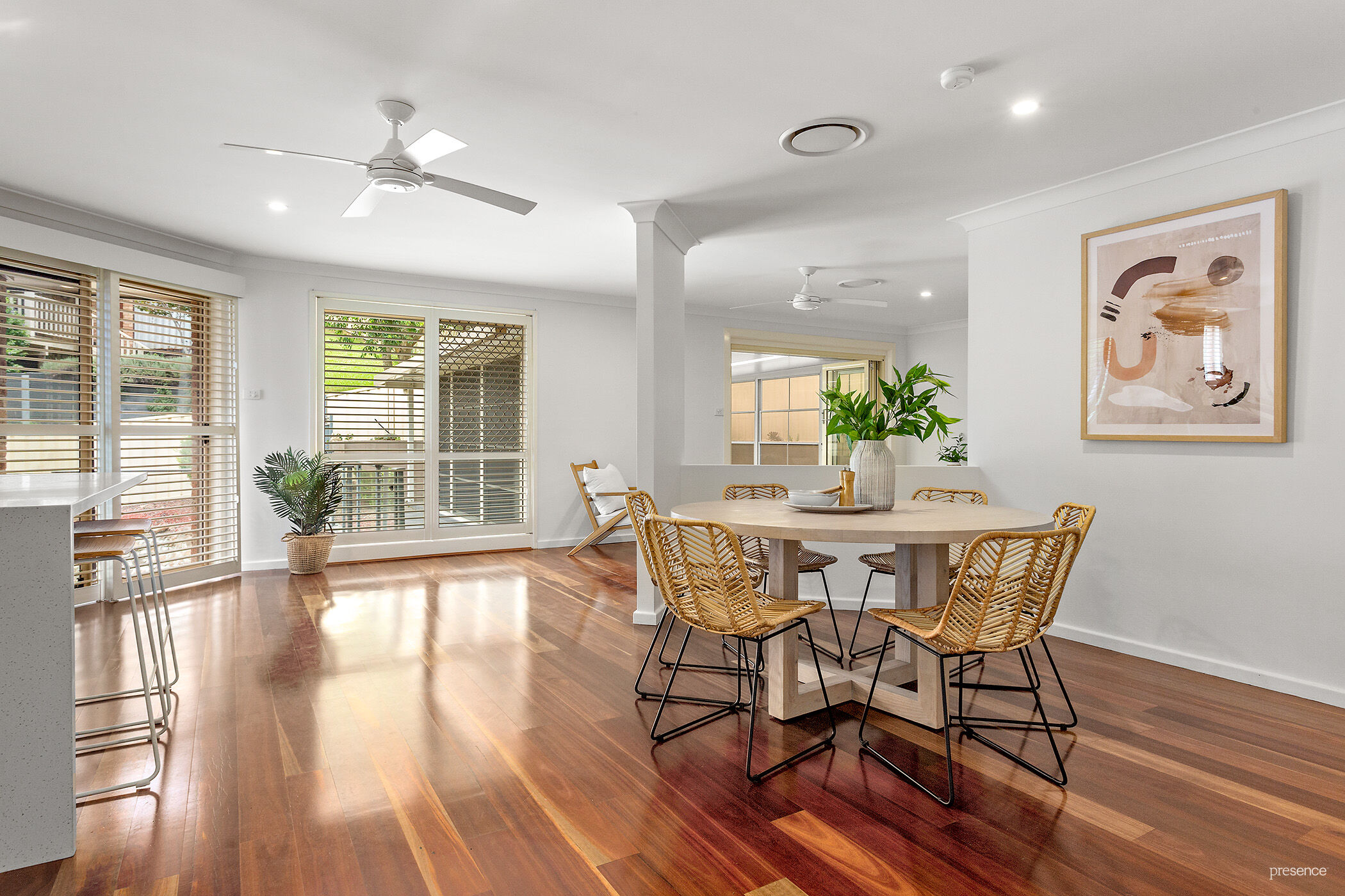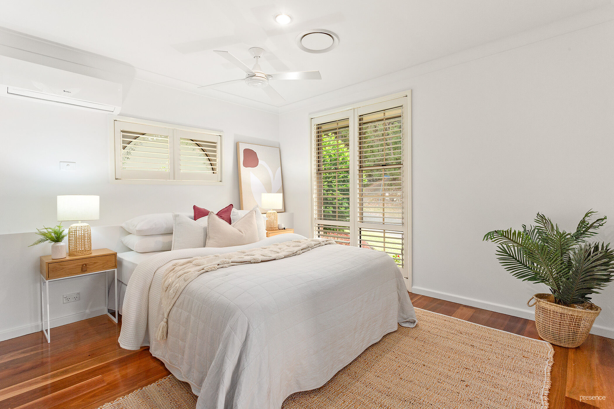 – Ducted air-conditioning provides year-round climate comfort, complemented by plantation shutters and highly-polished timber floors for timeless elegance.