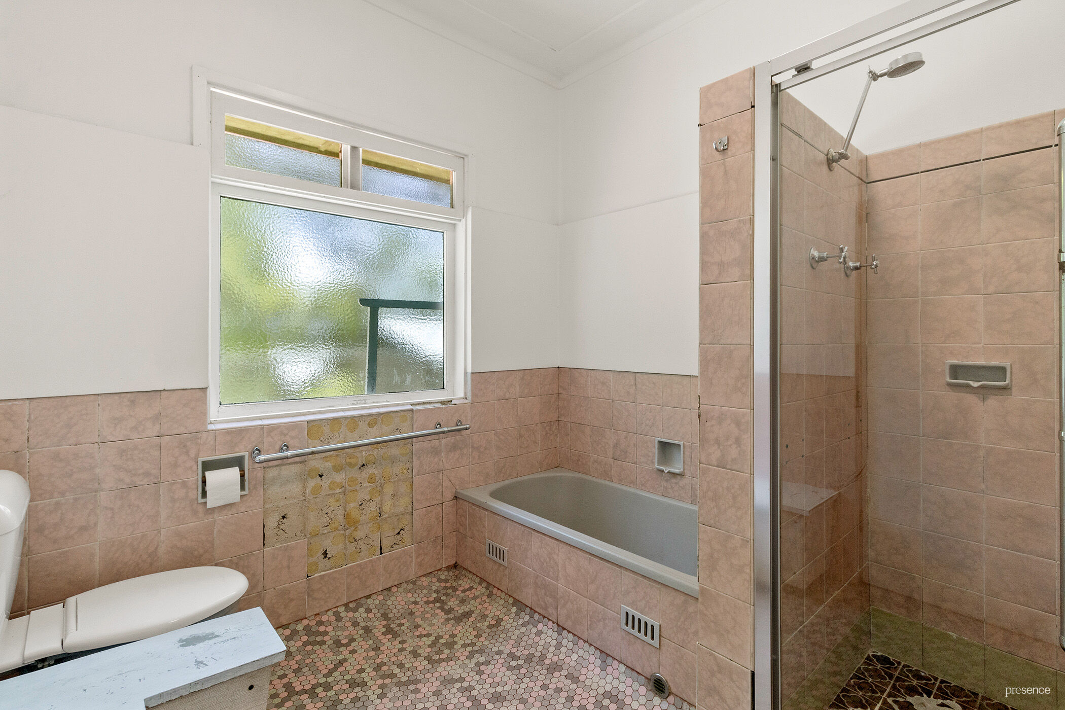 The bathroom delivers a glimpse back in time, styled in pink and green, with nostalgic penny tile flooring. It features both a bath and shower plus a sleek modern vanity for all your essentials. Downstairs, you’ll find a laundry area, second loo, and handy storage, as well as a single garage and carport – everything you need to keep things organised and practical. Whether you’re eager to restore this beauty or dreaming up plans for a fresh new build on this generous block (STCA), the possibilities are endless.