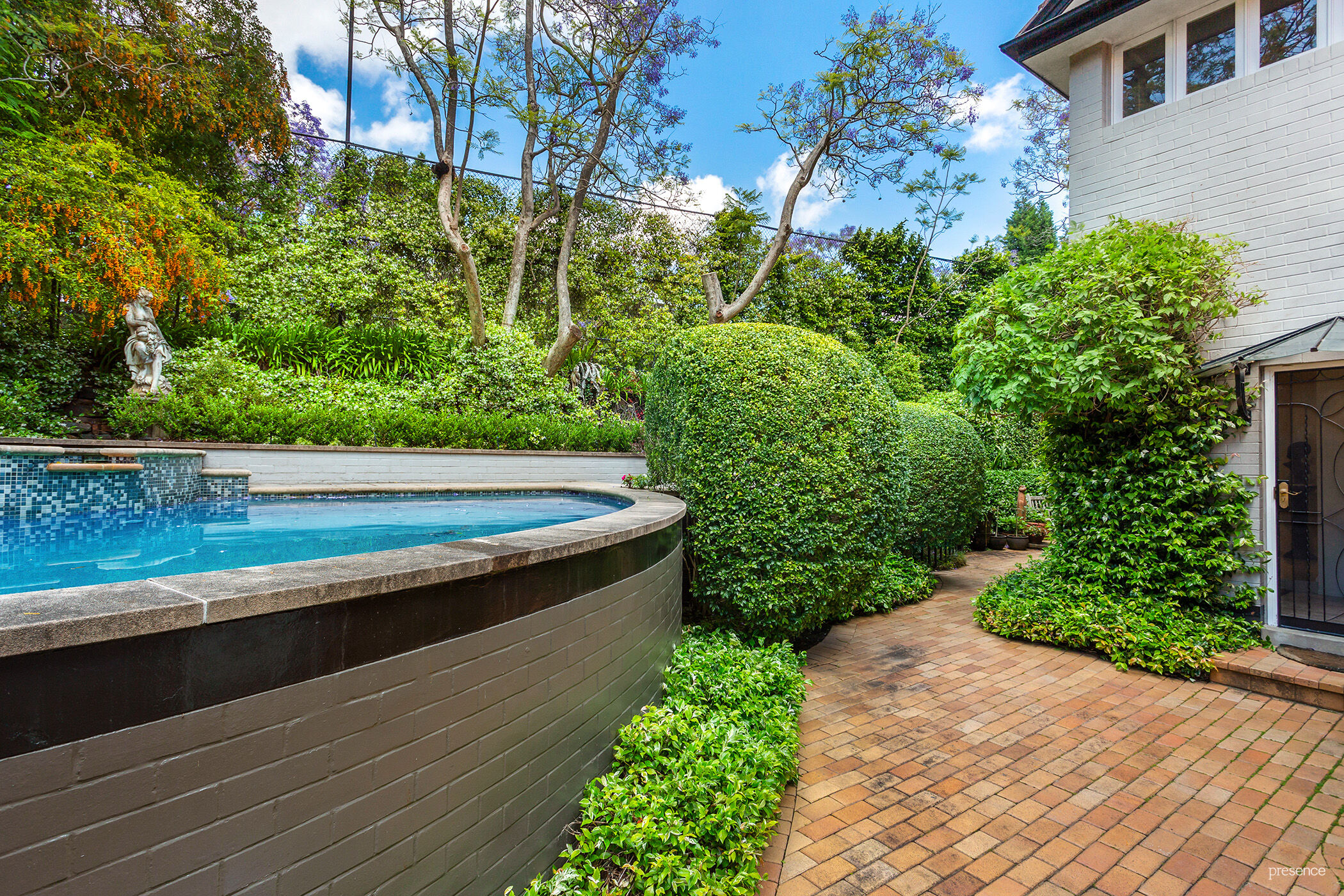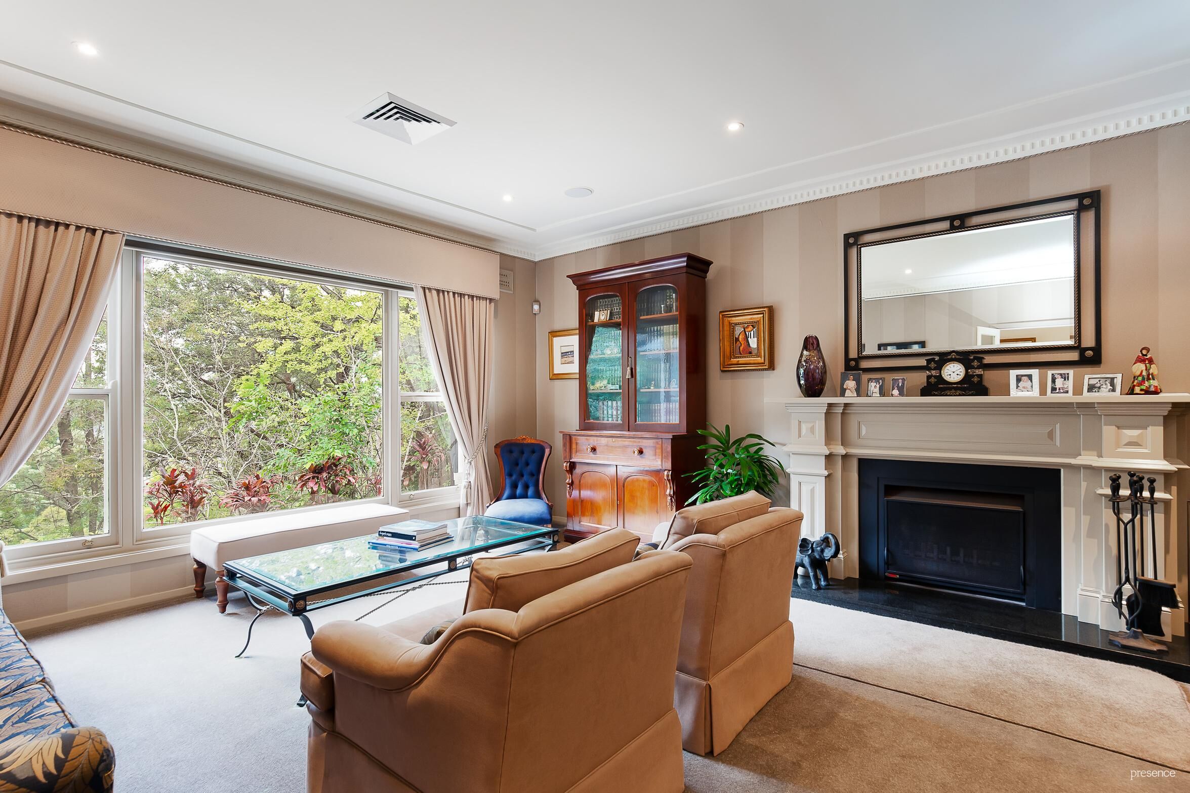 The luxurious indoor spaces unite seamlessly with the paved alfresco and beautifully landscaped extensive gardens. Including fishponds and fountains and linking the house with a spectacular pool, spa and tennis court, this home’s brilliant spaces are perfect for everyday enjoyment or grand scale entertaining.