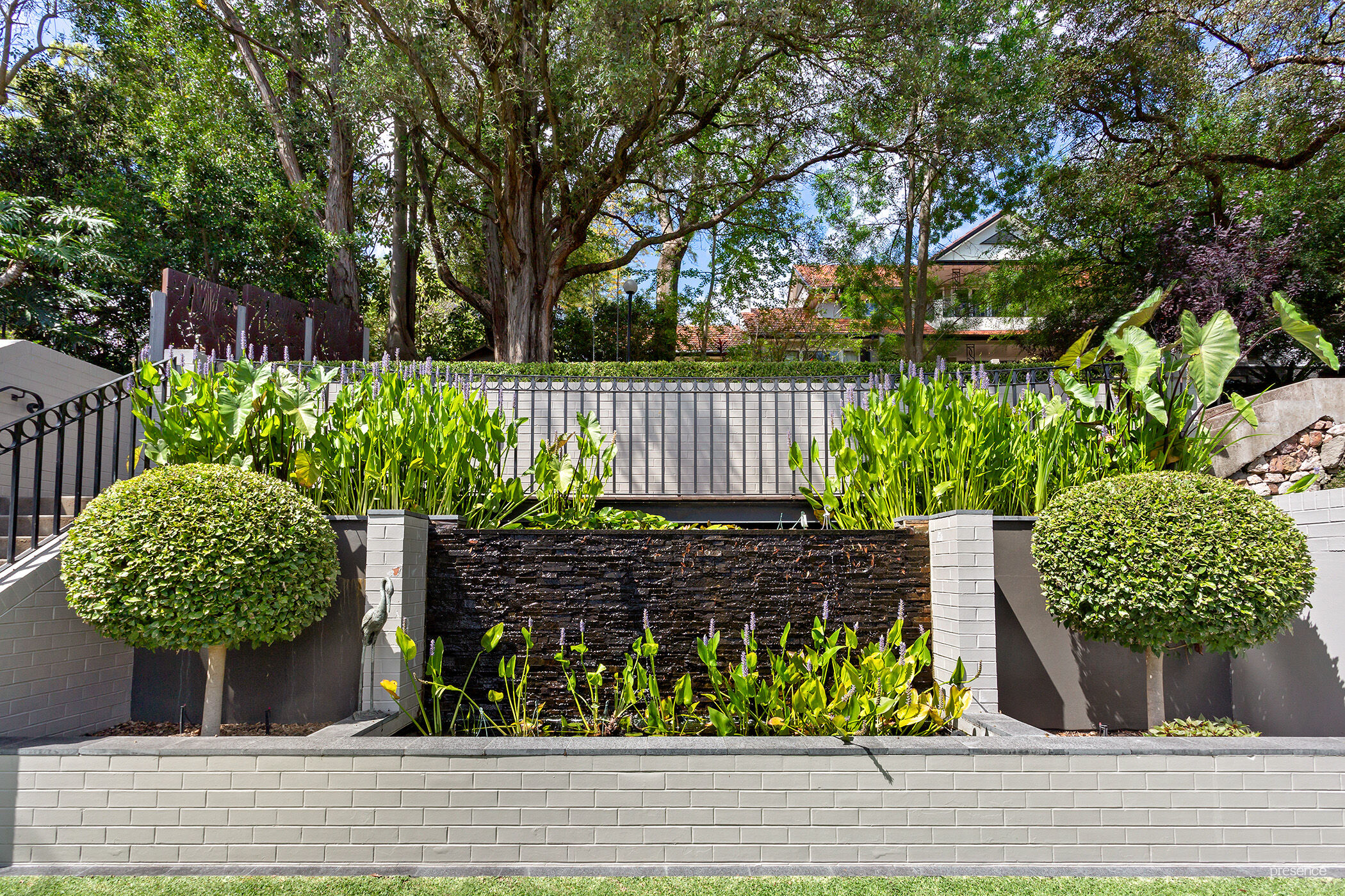 – Three fishponds, electric pumps and waterfall; extensive automated in-ground watering system.
