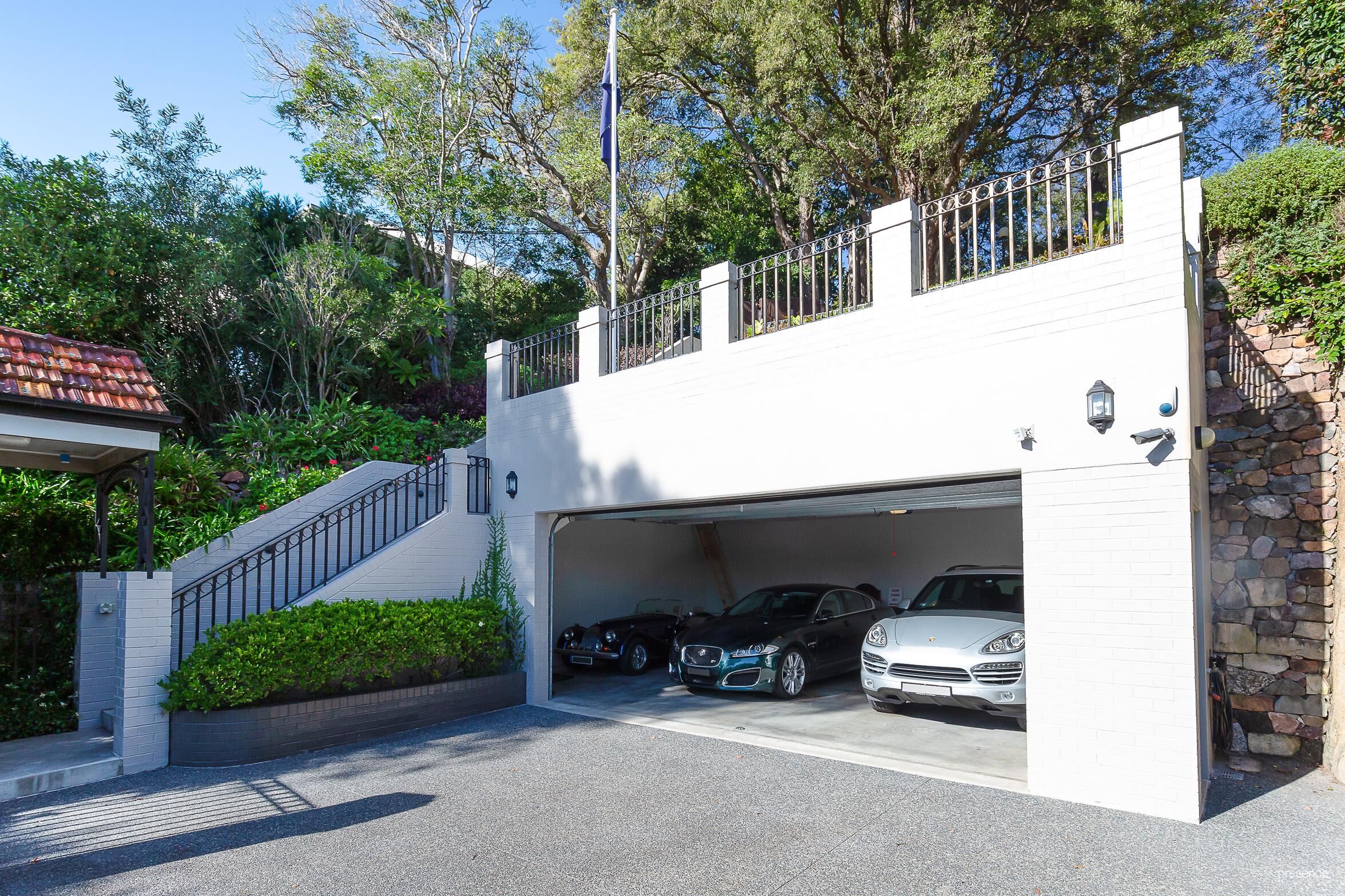 – Five undercover car spaces within two oversized garages provide parking for multiple vehicles and boat or motorhome.