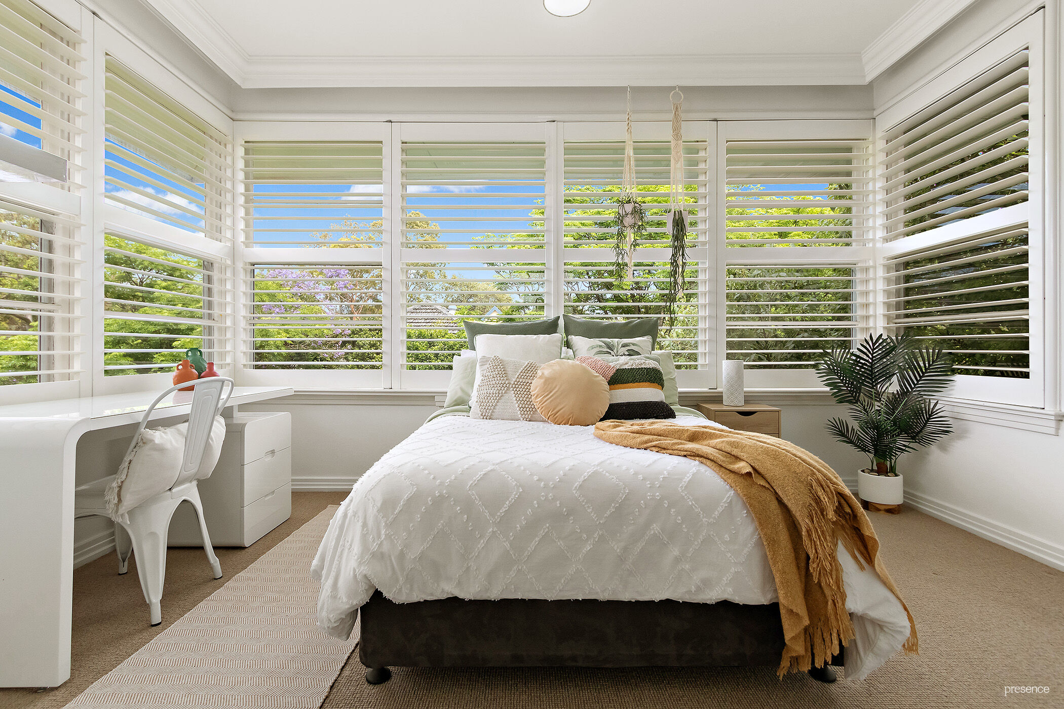 Three additional bedrooms with built-in robes and plantation shutters plus home office