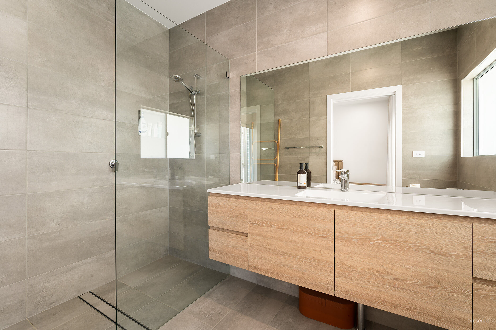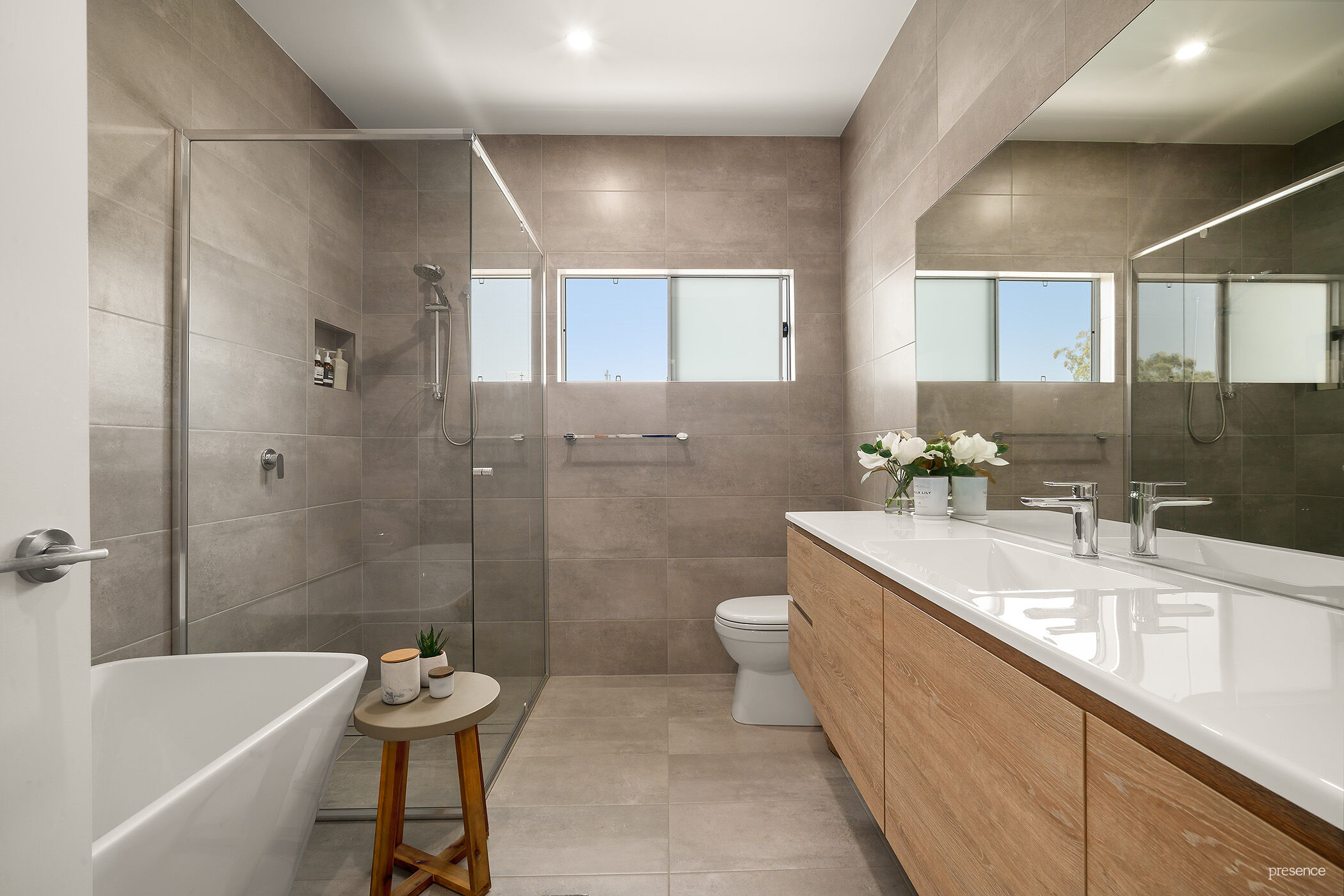 Full size main bathroom with bath and shower, master ensuite, both with 1800mm vanity