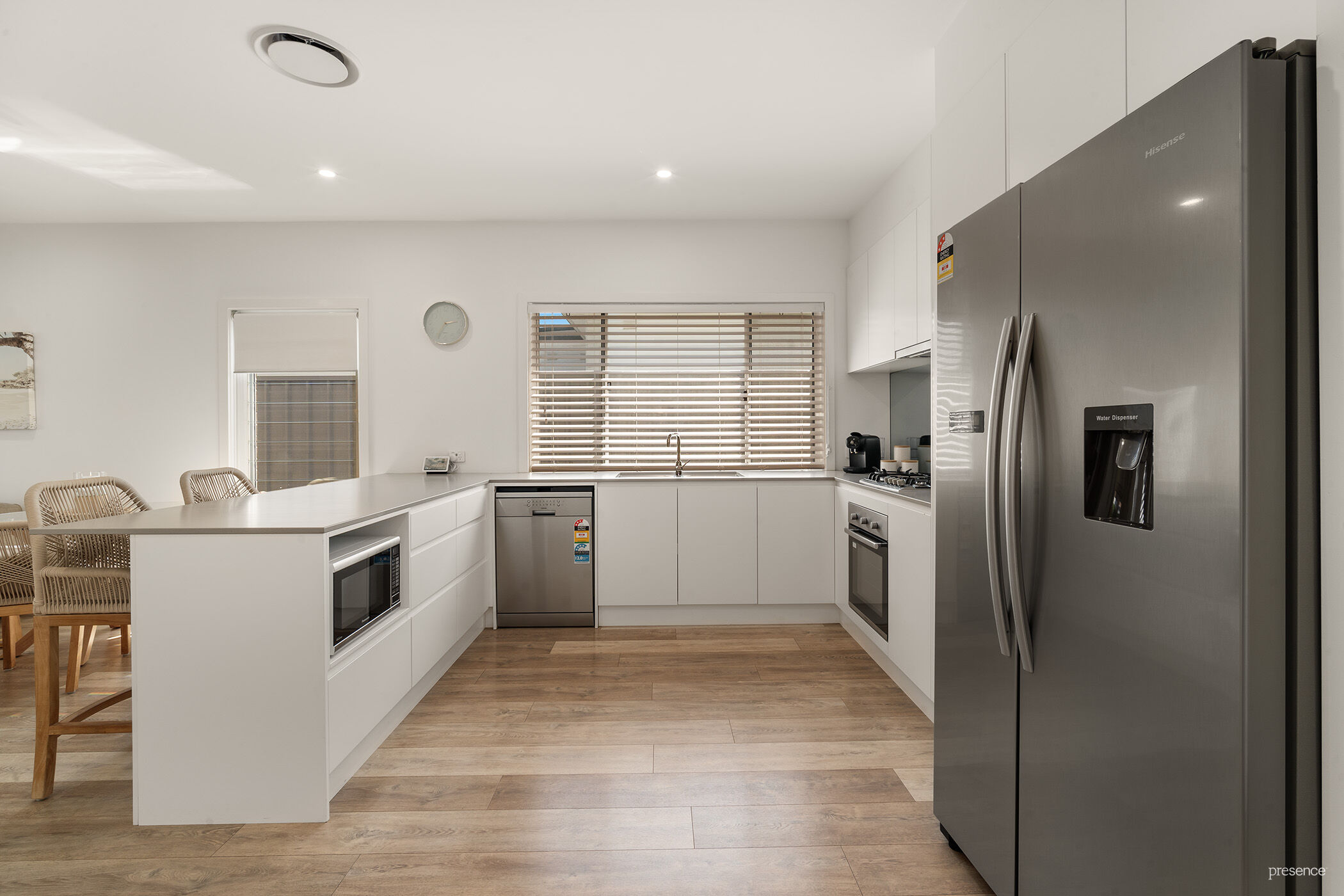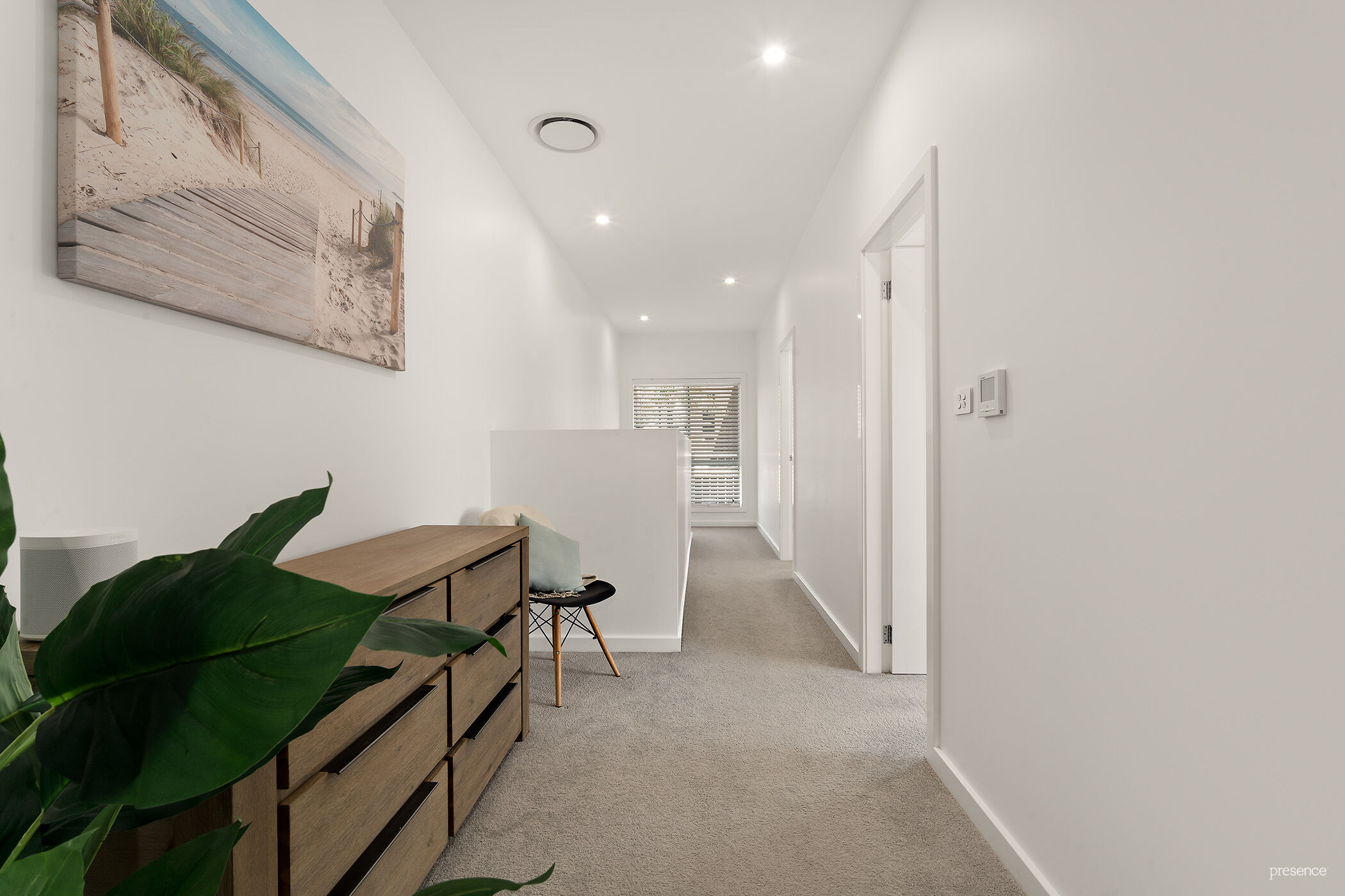 Every detail has been carefully considered from the 2.7m high ceilings upstairs and down, to the quality floor and window coverings, Caesarstone kitchen benchtops, full-height tiling in both bathrooms, and robes in all three bedrooms. A seamless flow from the living space to a private maintenance free backyard with covered alfresco delivers a perfect environment for entertaining. Ducted a/c, internal access to the oversized single garage, and a huge under-stairs storage area adds to the allure.