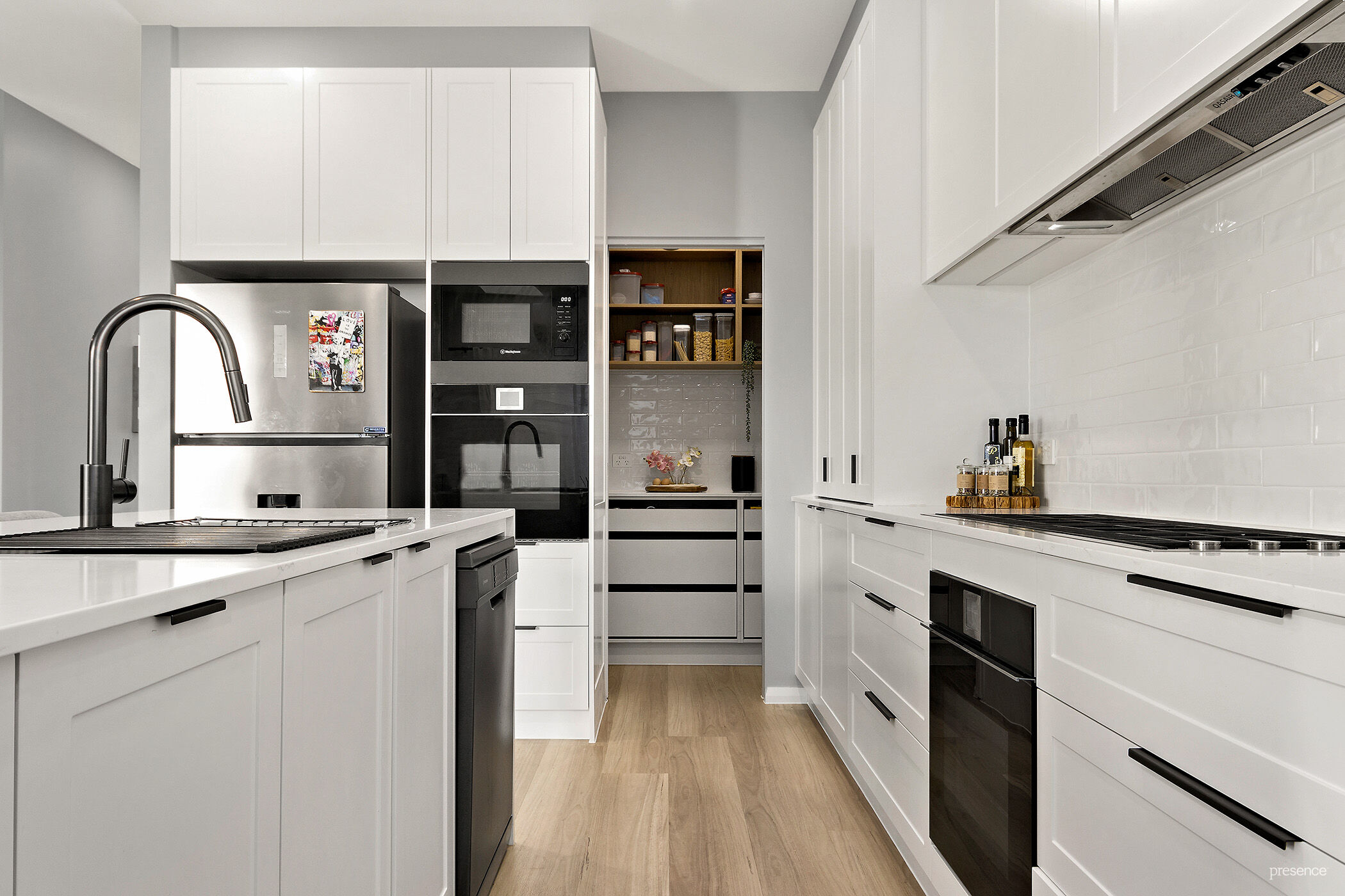 – Sleek kitchen with quality appliances and Butler’s pantry