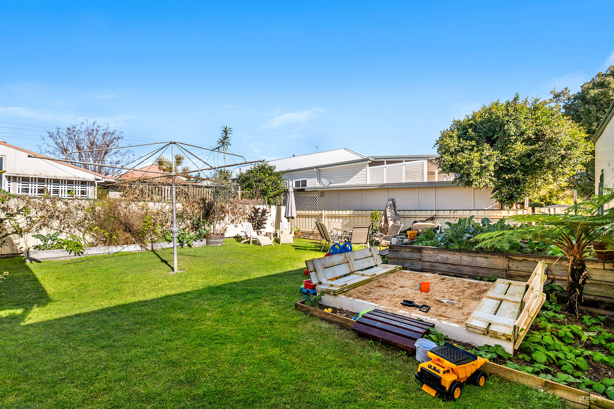 • Covered entertaining area overlooks level backyard with raised veggie beds