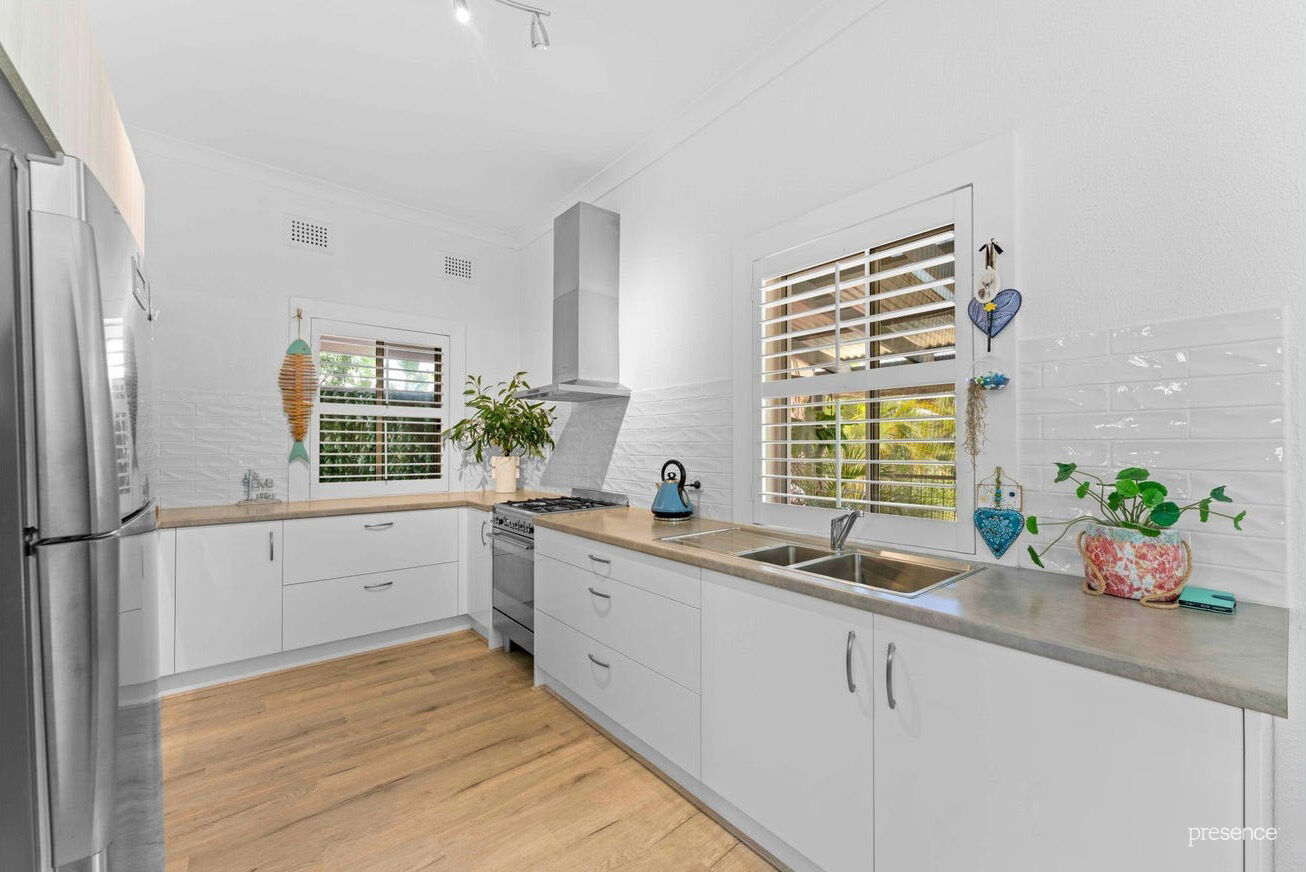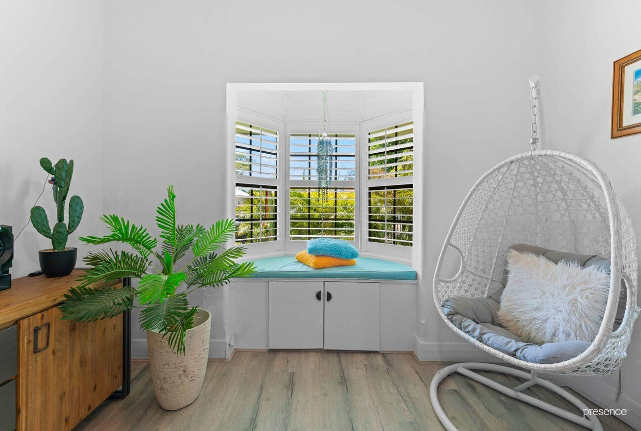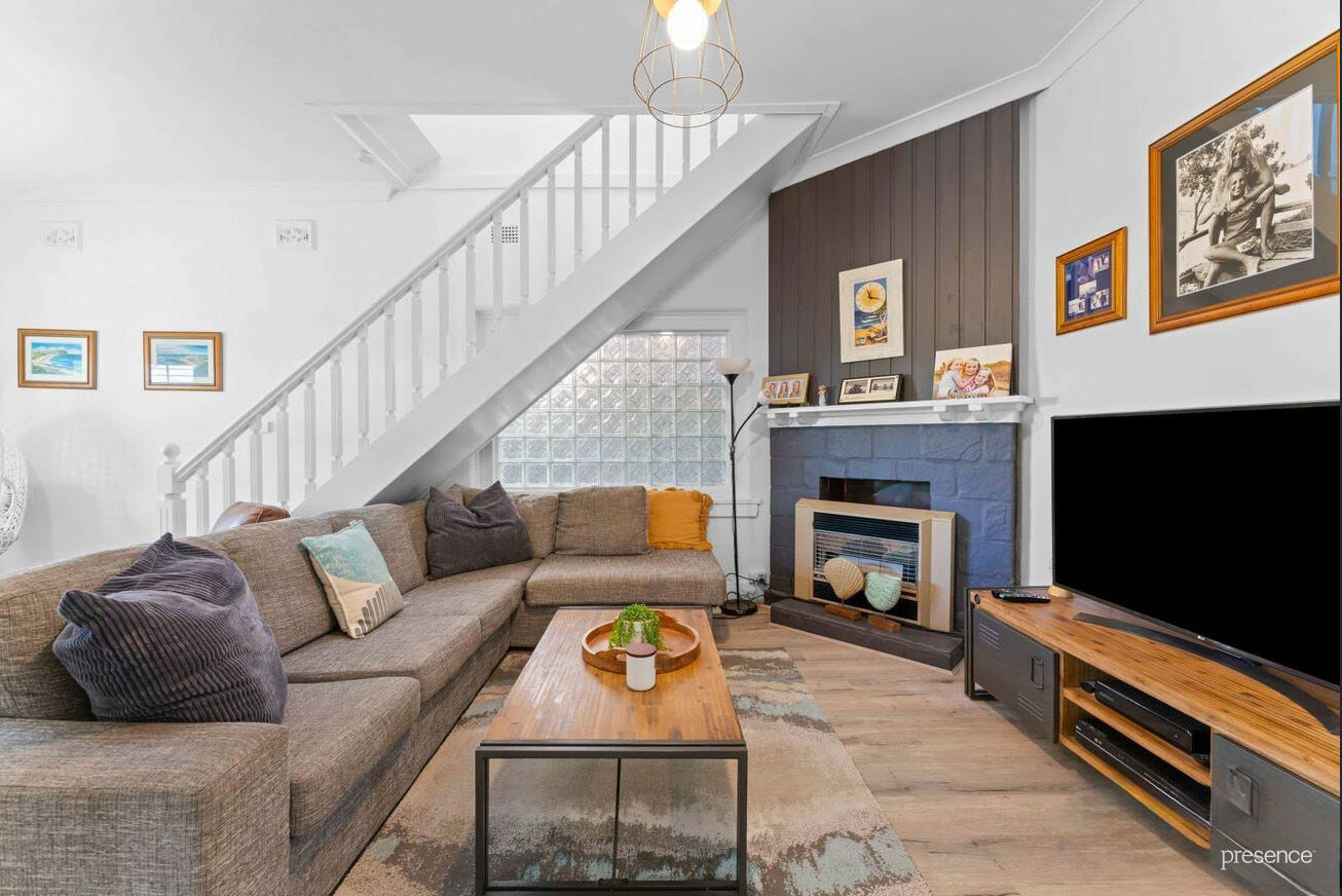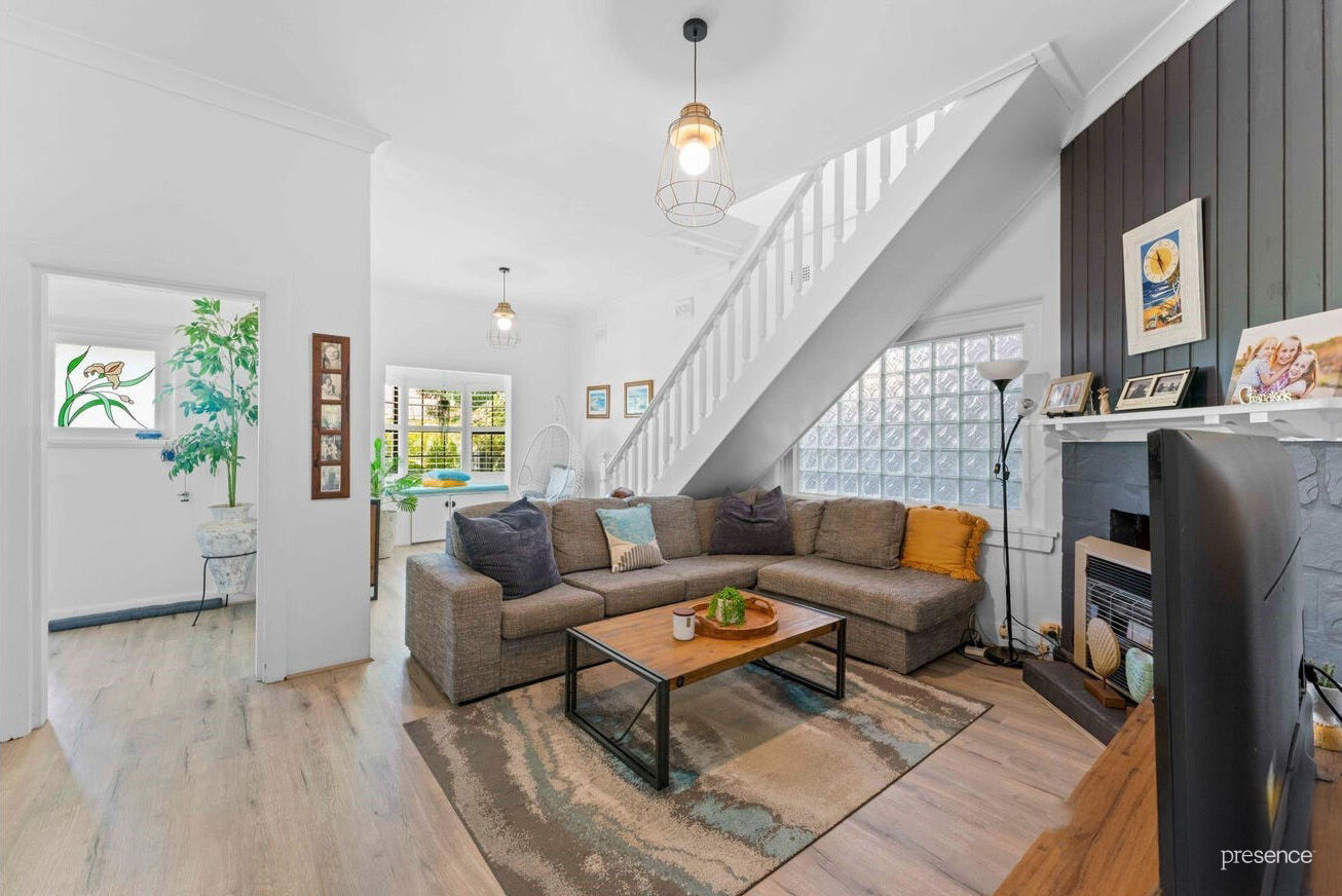 The upper-level extension adds two extra bedrooms, a second bathroom, a family room, and a sunny balcony that’s perfect for soaking up the afternoon rays. Plantation shutters and fresh, crisp décor tie it all together. Downstairs, the main living area is light and bright, thanks to glass bricks and a charming bay window with a cosy seat, the ideal spot to curl up with a good book. You’ll also find a third bedroom and a recently renovated bathroom, adding to the home’s convenience.