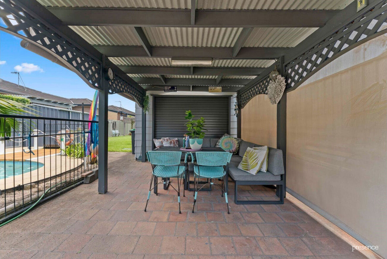 While the interiors are undeniably charming, it’s the outdoor spaces that truly elevate this home. The garage and workshop flow seamlessly into a covered alfresco area, perfect for hosting lively gatherings or quiet weekend barbecues, all with the pool as your backdrop. Beyond that, an expansive, lush lawn invites endless fun whether it’s kids kicking a footy, pets chasing each other around, or simply soaking in the sun-drenched freedom of your private backyard.