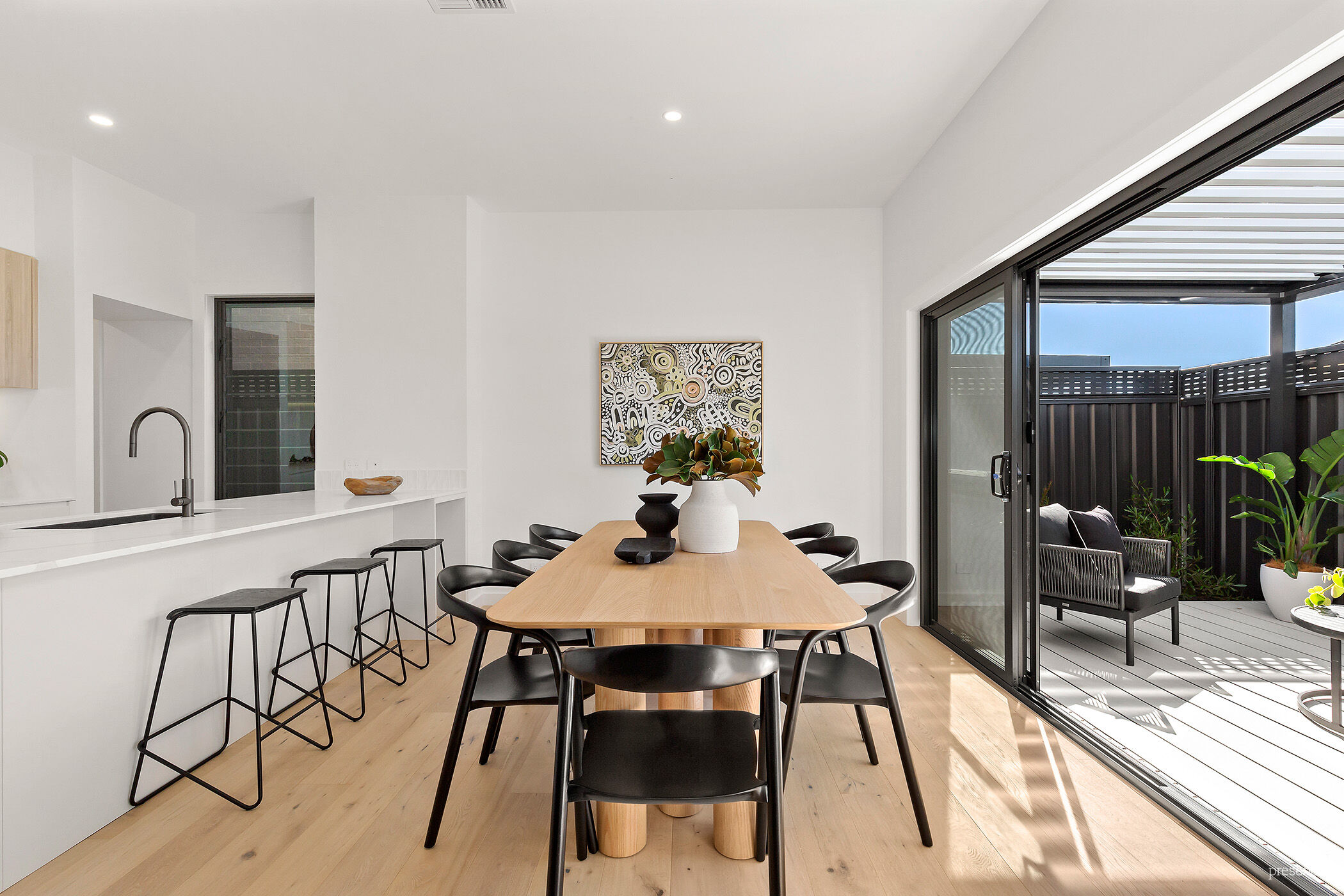 Step inside to a home crafted for effortless living and entertaining. First, you’ll discover a spacious downstairs master bedroom, complete with its own private ensuite and built-in robe, offering flexibility for single-level or multi-generational living. Next, a sleek, stone-topped laundry provides ample storage and includes a powder room for guests. Moving through to the heart of the home, the expansive open-plan family domain is framed by dramatic ceiling heights and generous proportions. Whether hosting a large group of guests or gathering the family, there’s ample space to connect and unwind. Here, a designer kitchen anchors the space with luxurious stone benchtops, a concealed butler’s pantry, and Smeg appliances, delivering both premium performance and aesthetic appeal. Glass doors extend seamlessly to a sun-drenched private alfresco entertaining deck and a lush, manicured lawn, creating an idyllic setting for year-round outdoor living.