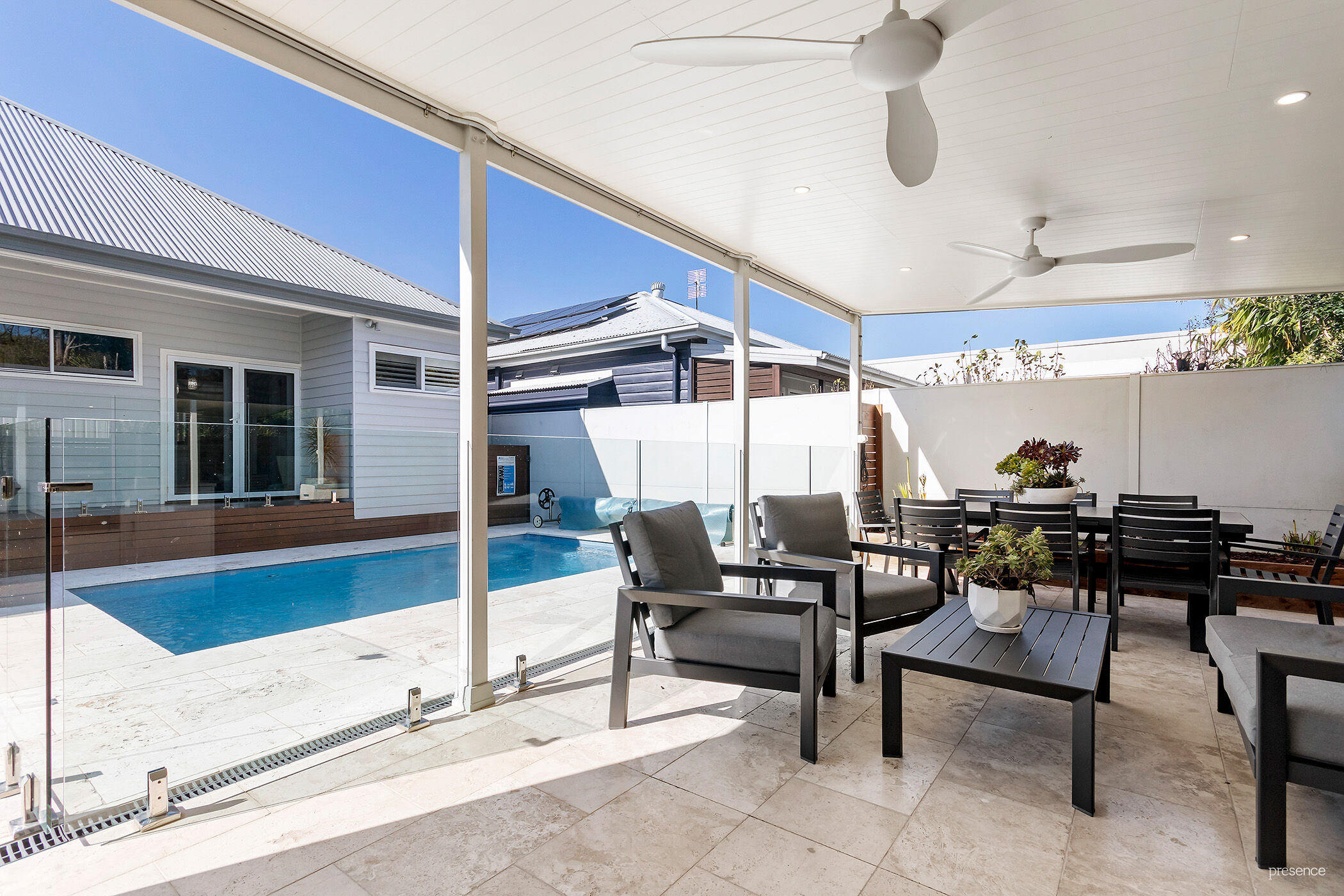 The true joy lies in the extension to lifestyle, an undercover entertaining deck overlooking the pool, with a dedicated barbecue zone ready for weekends spent with family and friends. Established greenery frames the backyard, ensuring privacy and a sense of retreat, while the pool delivers year-round appeal.