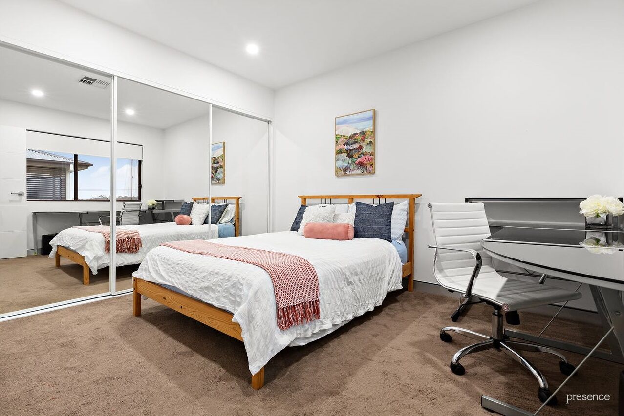 – Clean lines throughout, timber and carpeted flooring, abundant windows beaming light