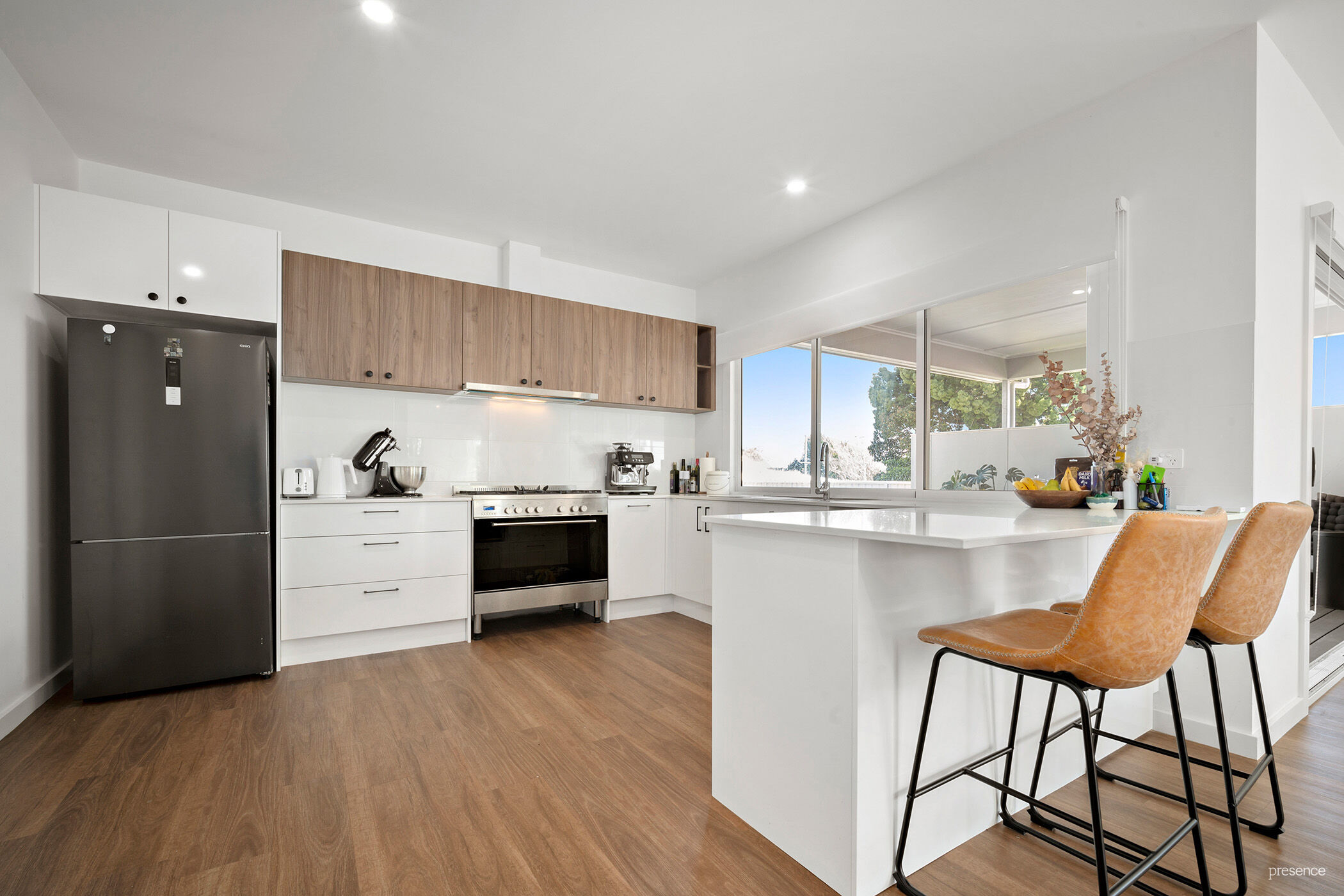 With three bathrooms, including the master ensuite, and a well-appointed sleek kitchen complete with a walk-in pantry and high-end appliances, the home ensures every convenience is at your fingertips.