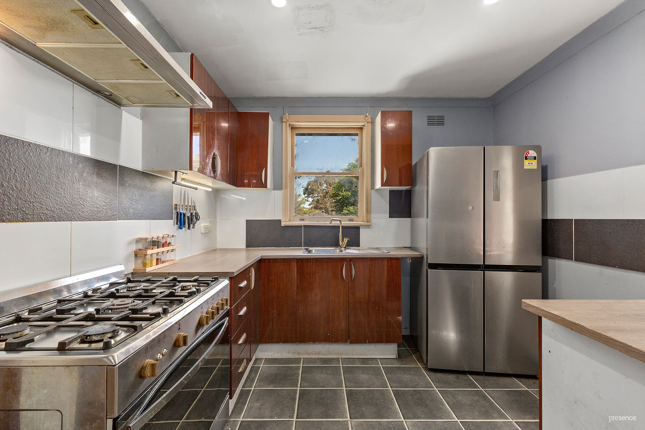 – Tidy kitchen with large gas cook top and plenty of cupboard storage