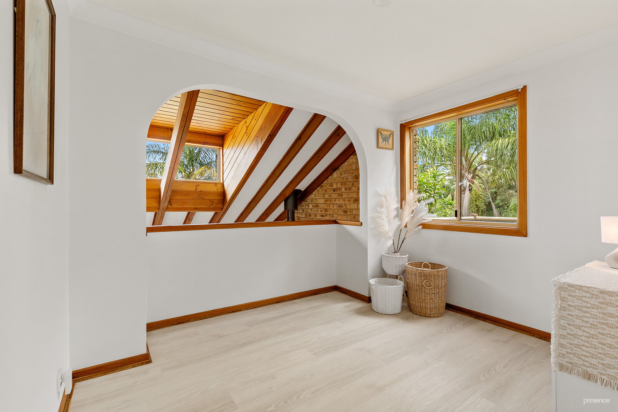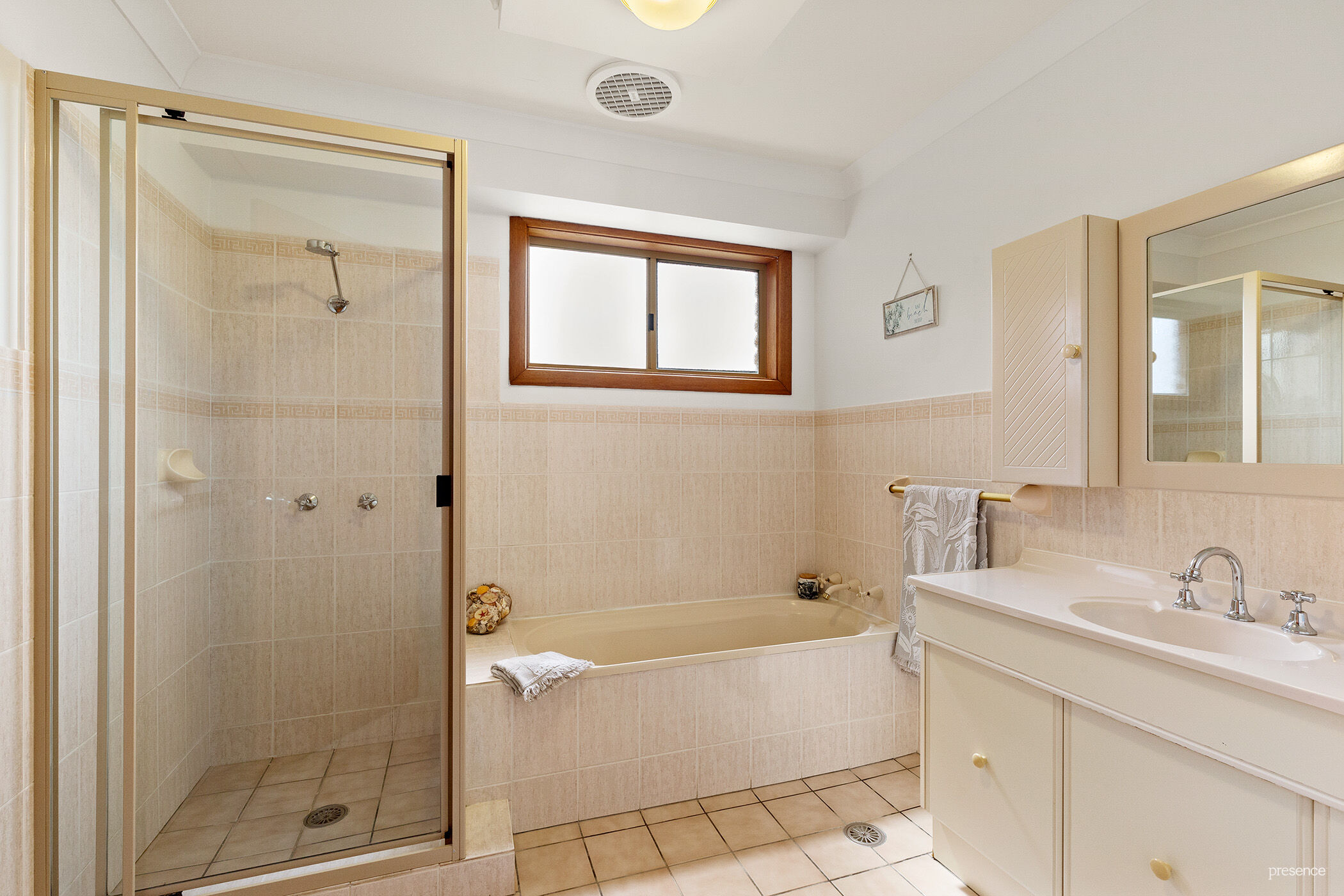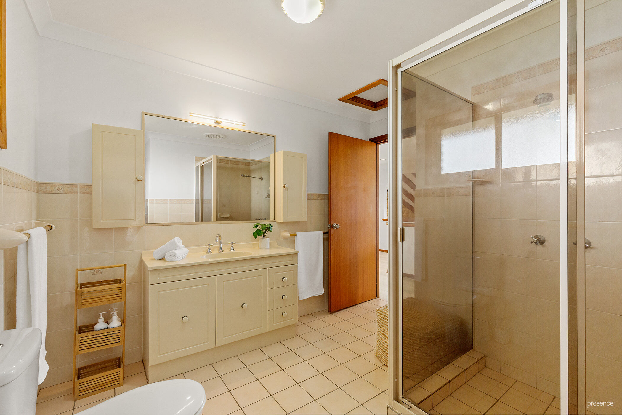 The master bedroom enjoys bay and garden views, built-in wardrobes, ceiling fan and a spacious ensuite with convenient two-way guest access. A light-filled study enjoys leafy, tree-top vistas, while a well-proportioned fourth bedroom completes the upper level.