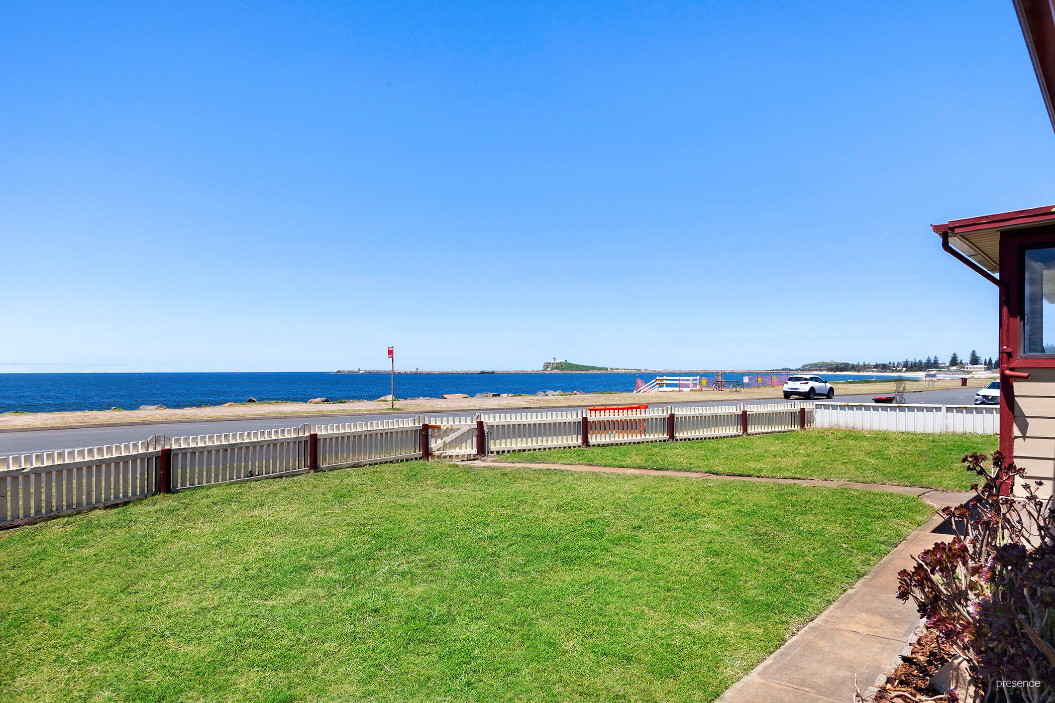 This tidy, three-bedroom home boasts 270-degree views north to Port Stephens and south to Nobby’s Headland. All bedrooms and the bathroom enjoy ocean views but none as spectacular as the views from the spacious living area. The dining area flows through to a generous size kitchen with gas upright cooker and ample cupboard space. The easy-living interior is complemented by an enclosed front porch to take in the ocean views and a large covered entertainment area ideal for get-togethers with friends, while the backyard offers ample space for play.