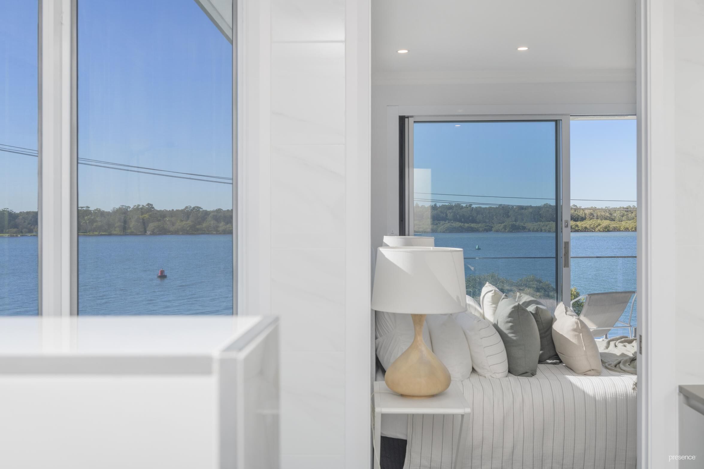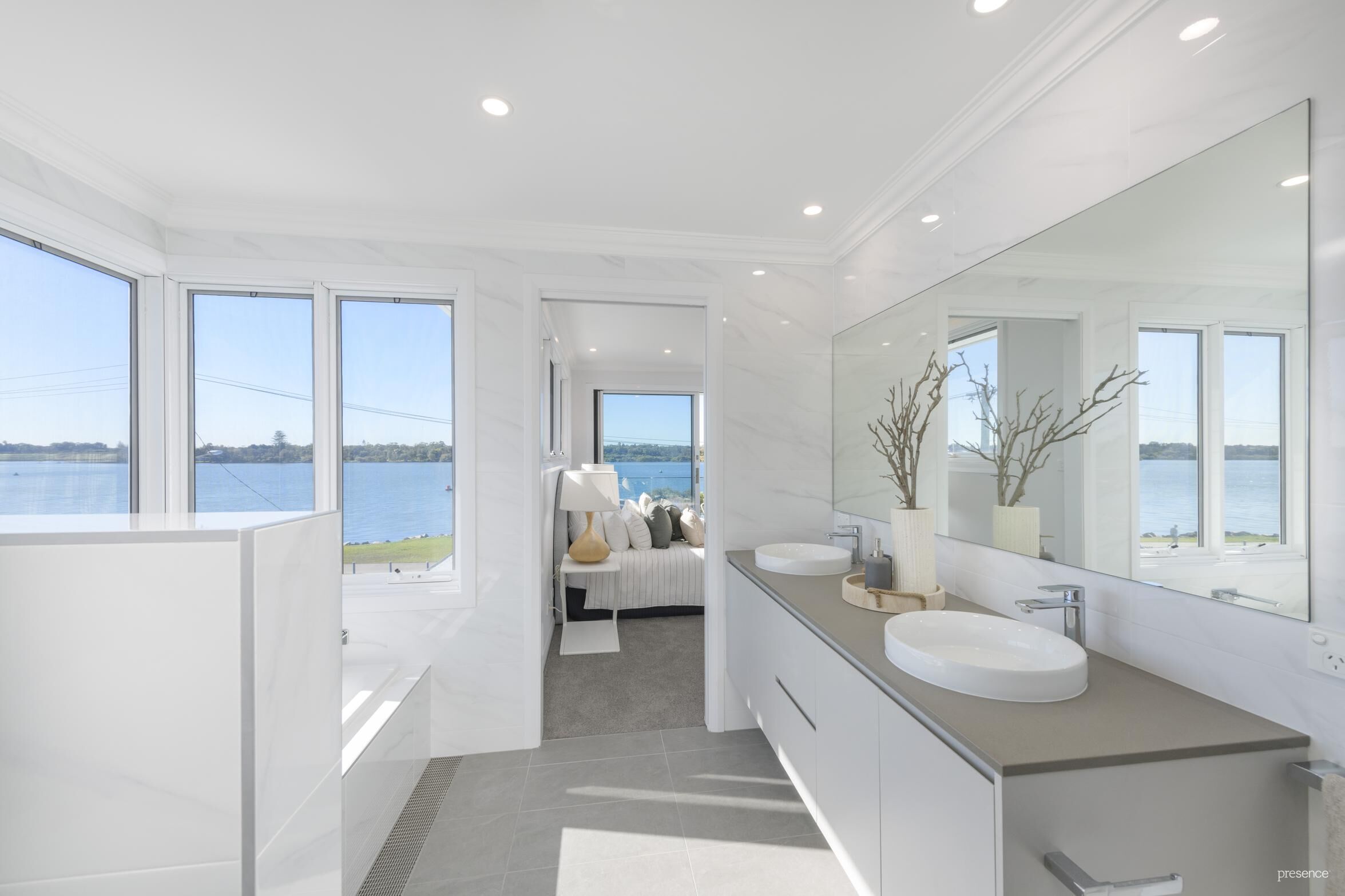 * Master bedroom with huge, luxe ensuite and walk in robes (also with water views of course) and a balcony looking clear across the water