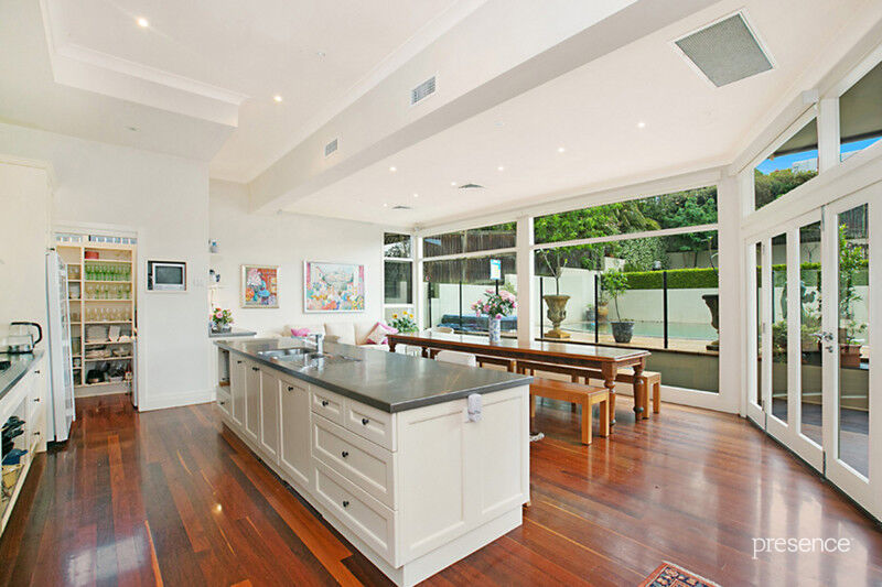 Arranged over three levels, the home is ideally suited to a contemporary family lifestyle with four double bedrooms, a living area and bathroom upstairs, while the impeccable master bedroom with marble ensuite and walk-in robe, as well as the 6th bedroom are on the main level. The home opens into a gorgeous entry porch with leadlight windows and timber floors and flows onto the formal portion of the property with two lounge rooms featuring an abundance of period features including timber fretwork, ornate ceilings, picture rails and gas fireplaces. The grand theme has been continued into the sympathetic kitchen/living extension with soaring ceilings, seamless flow to the alfresco entertaining and a wall of windows overlooking the impressive pool and immaculate landscaped gardens. The kitchen comes equipped with premium appliances, stainless steel benches and a butlers pantry. The lower level houses the double garage, an abundance of storage and an enormous, air conditioned wine cellar.