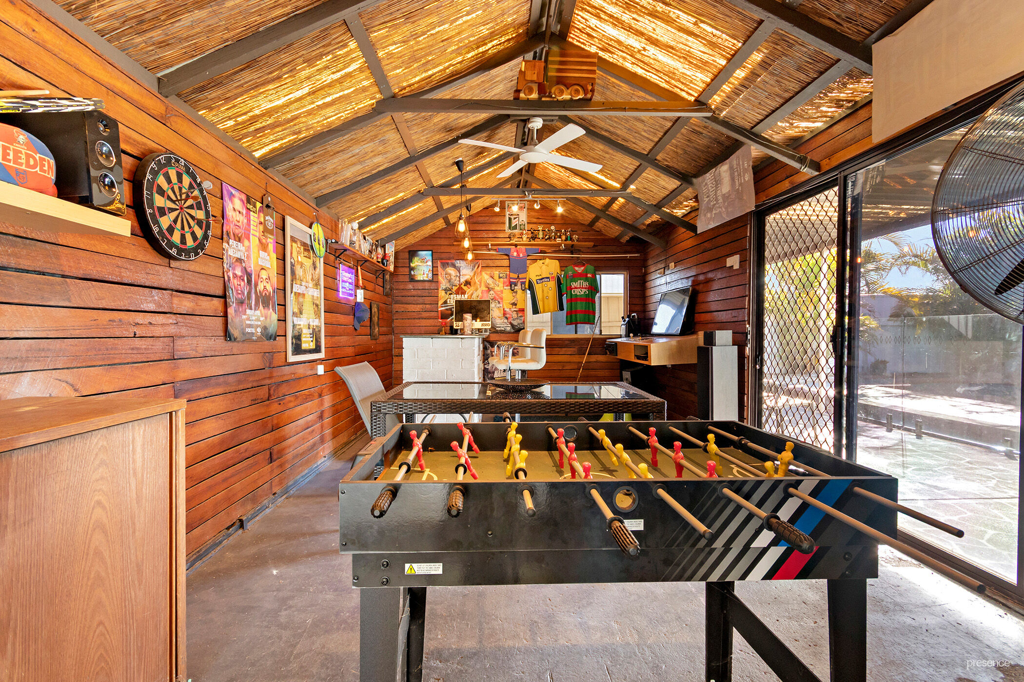 – Separate man cave with bar plus additional shed