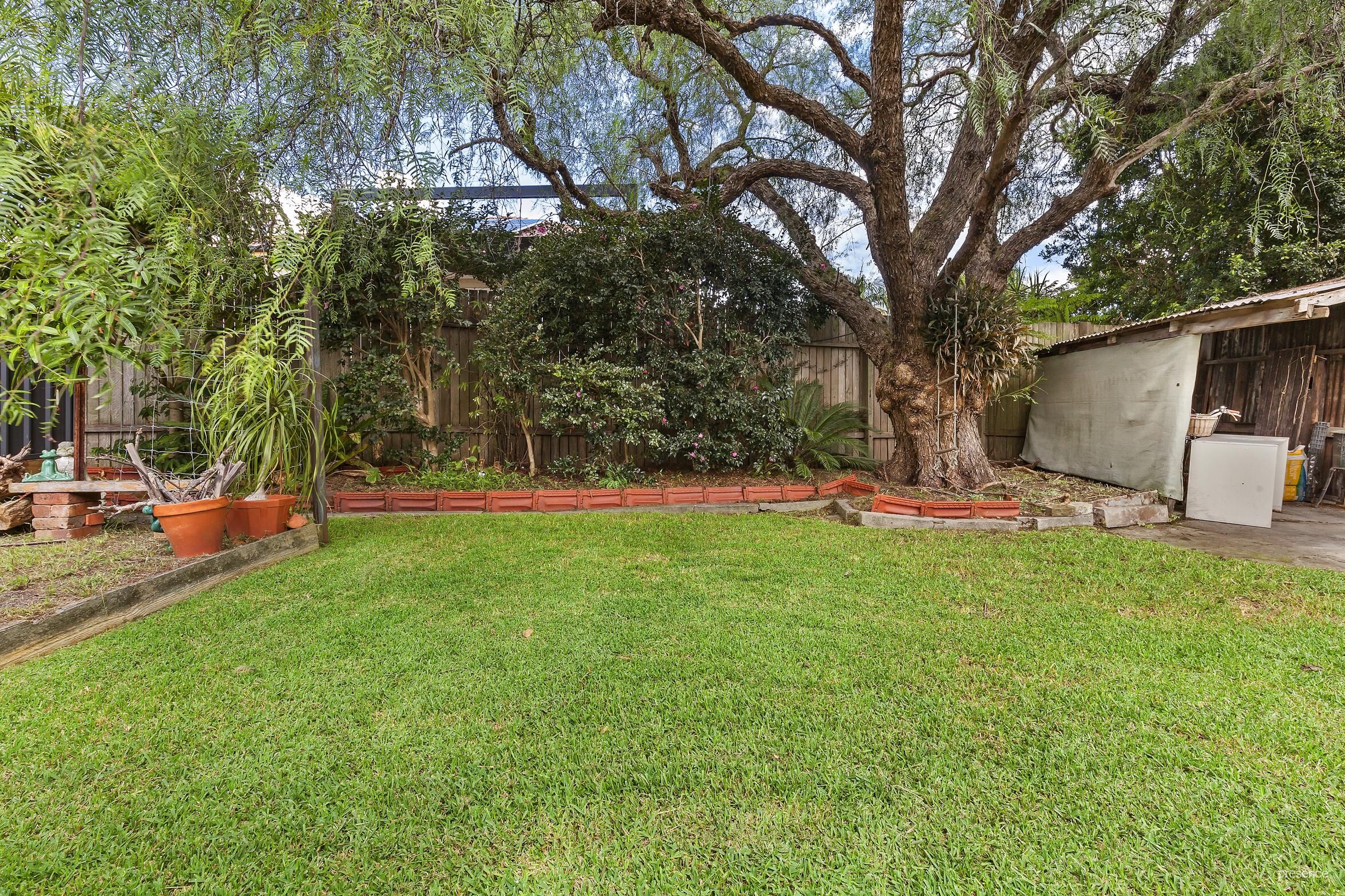 Venture outside to discover a covered alfresco leading to a secluded backyard, fenced for both children and pets. Boasting a harmonious blend of lush lawns and paved areas, framed by a majestic pepper tree, the outdoor space is further enhanced by a fire-pit area, two garden sheds, a side driveway, and off-street paved parking for two cars.