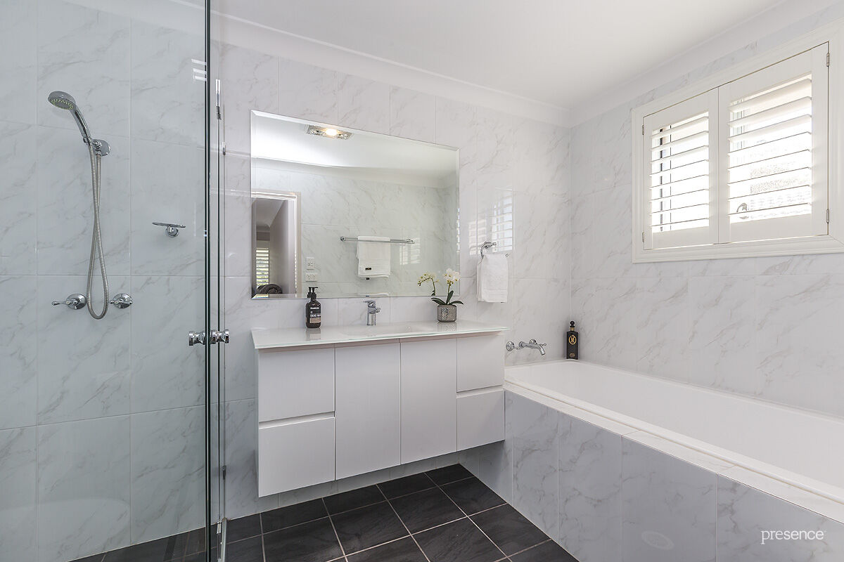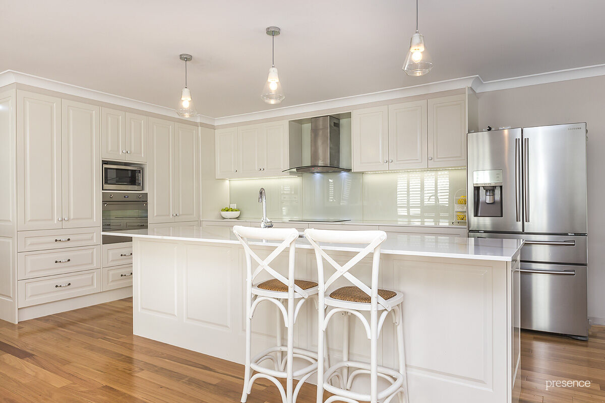 Step inside to a light-filled residence highlighted by Blackbutt timber floors and a warm neutral colour palette. A rumpus with ensuite on ground floor offers floorplan flexibility as a teen/parents’ retreat, guest accommodation or space to work from home. Upstairs, the hero of this property is undoubtedly the huge island kitchen by Everlong. Perfectly positioned to overlook the living and dining domain as well as the outdoor entertaining area and backyard, it features a super-sized stone island bench, induction cooktop, pyrolytic oven and a plethora of bench drawer and cupboard space , before seamlessly flowing outside to the all-weather alfresco. Separating rest from play, bedrooms are private and roomy sanctuaries. The master is a true parents’ retreat and includes a walk-in robe with impressive storage, a sleek ensuite and a balcony that serves as a quiet hideaway.