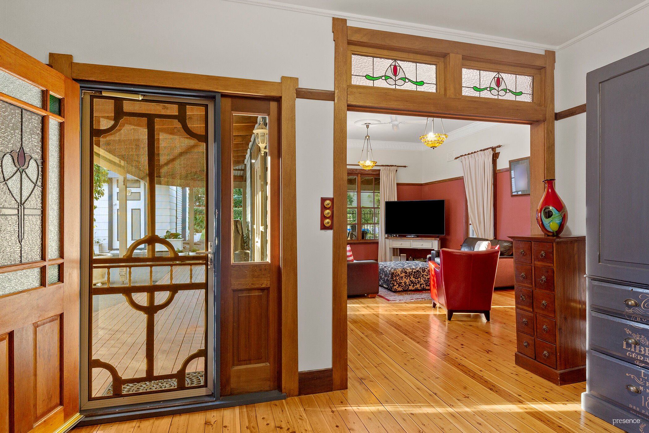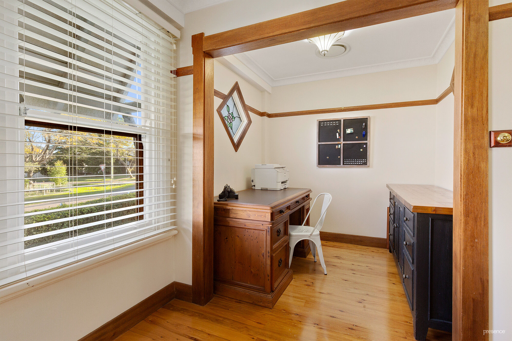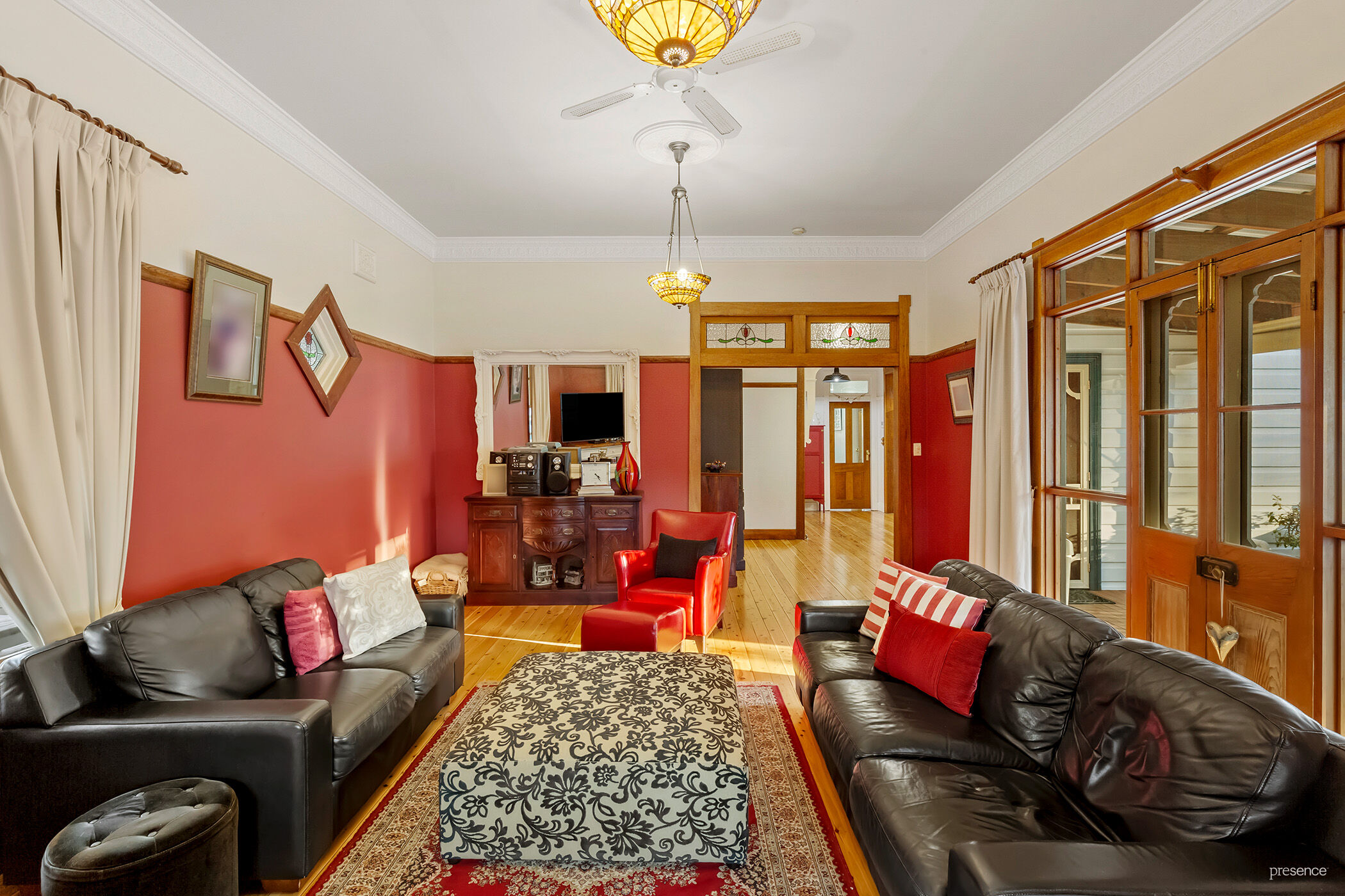 – Charming c.1920s Federation home showcasing exquisite Arts & Crafts details throughout, including polished timber floors, soaring ceilings, ornate plasterwork, and decorative fireplaces.