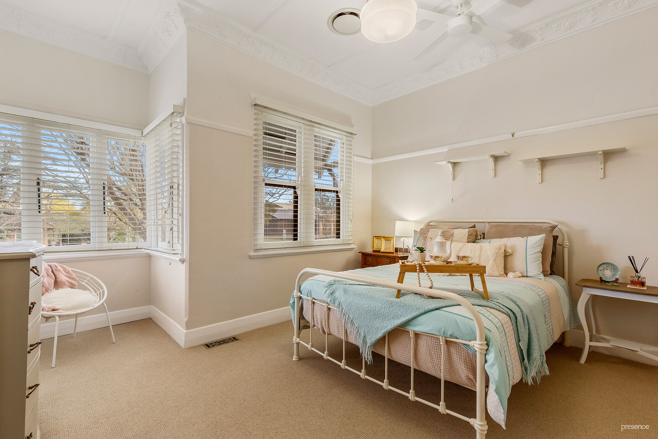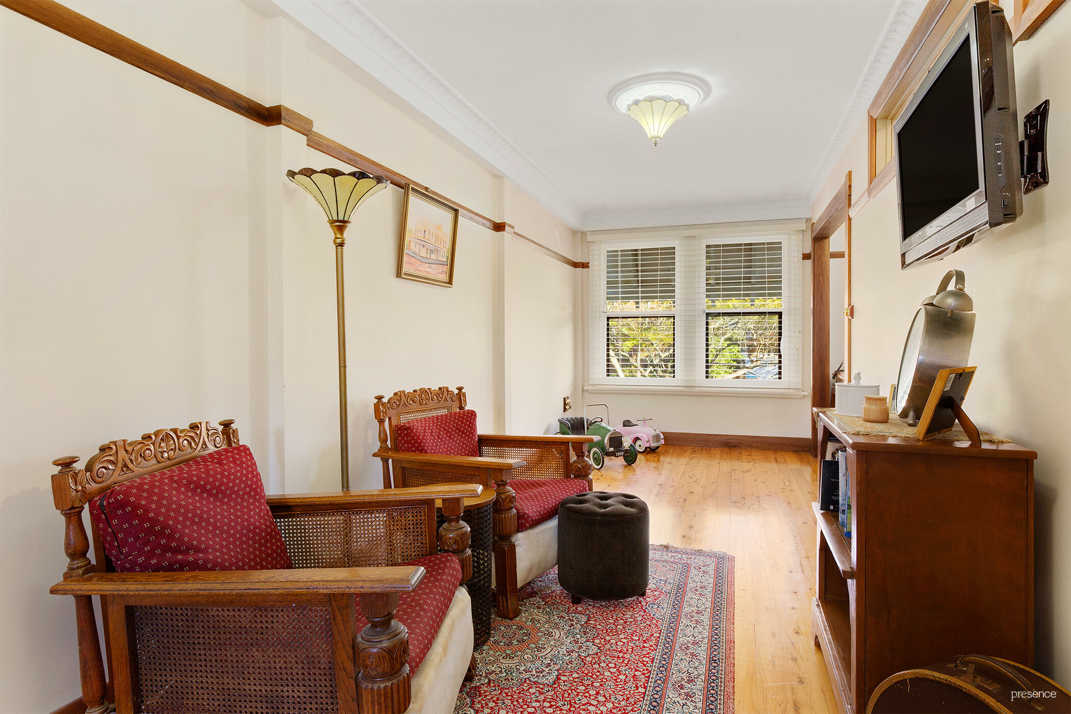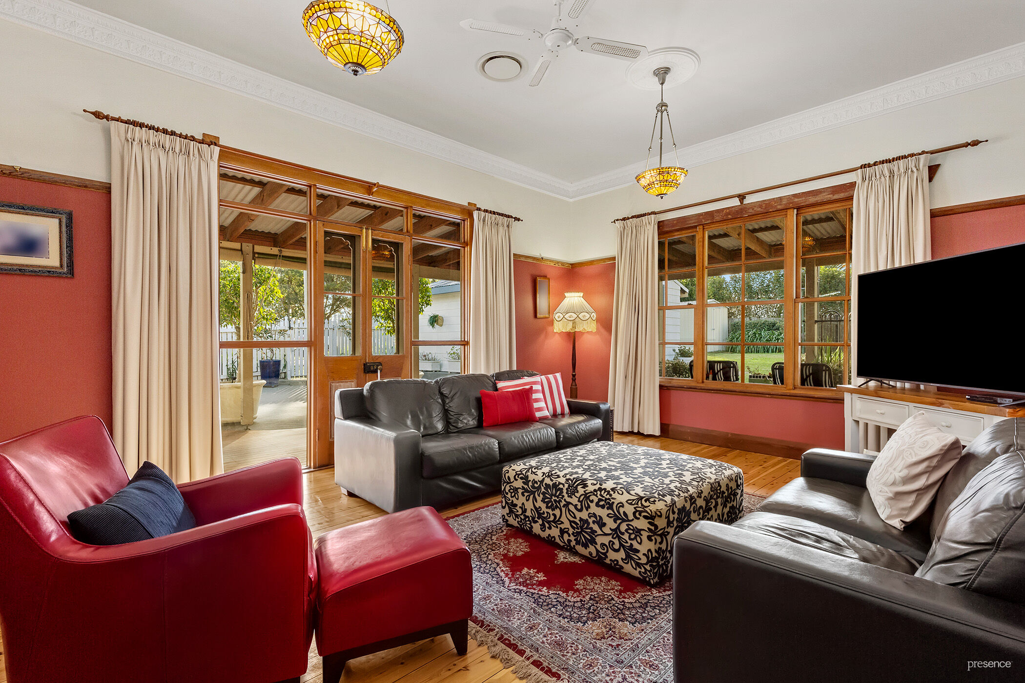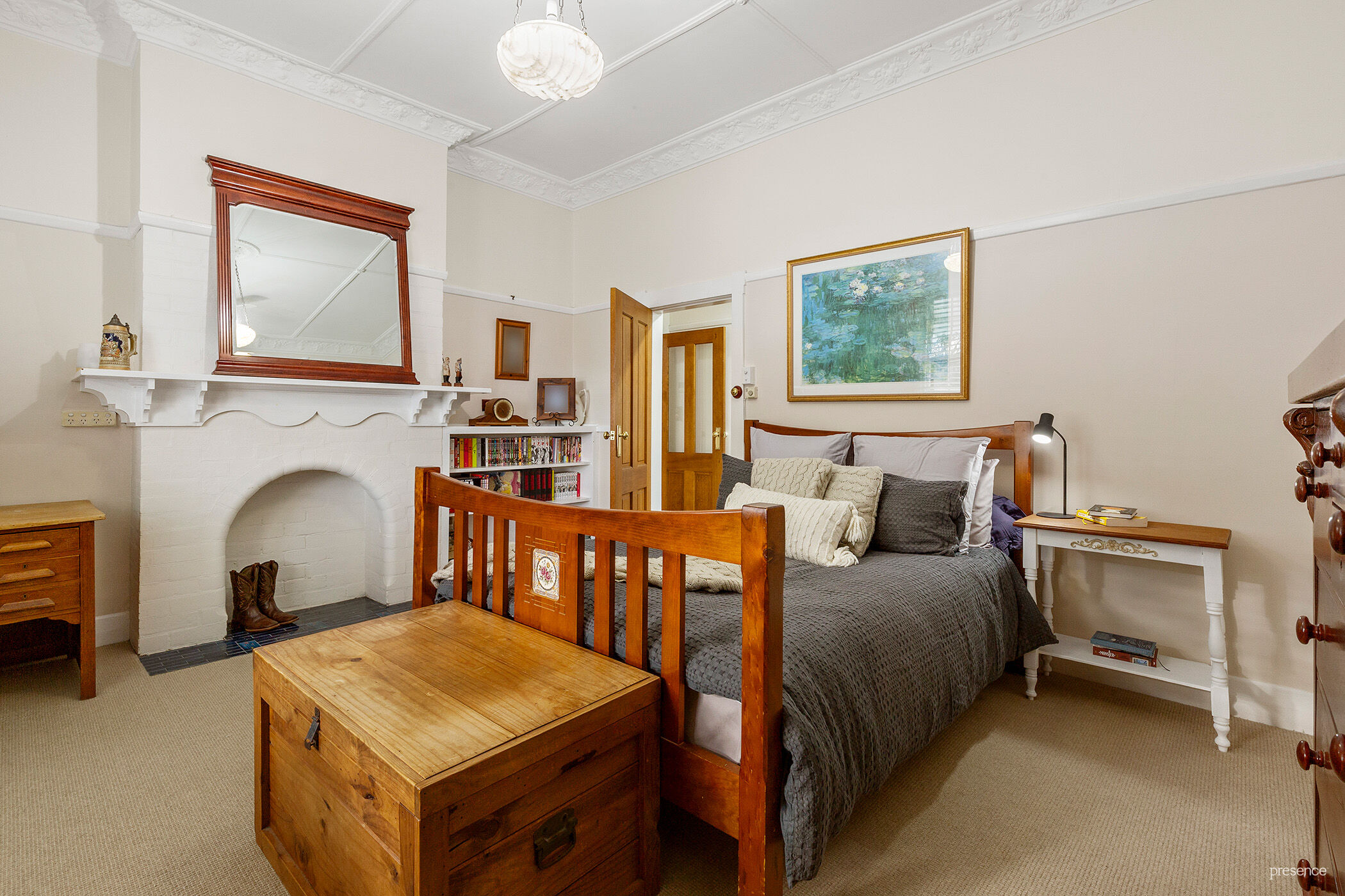 – Charming c.1920s Federation home showcasing exquisite Arts & Crafts details throughout, including polished timber floors, soaring ceilings, ornate plasterwork, and decorative fireplaces.