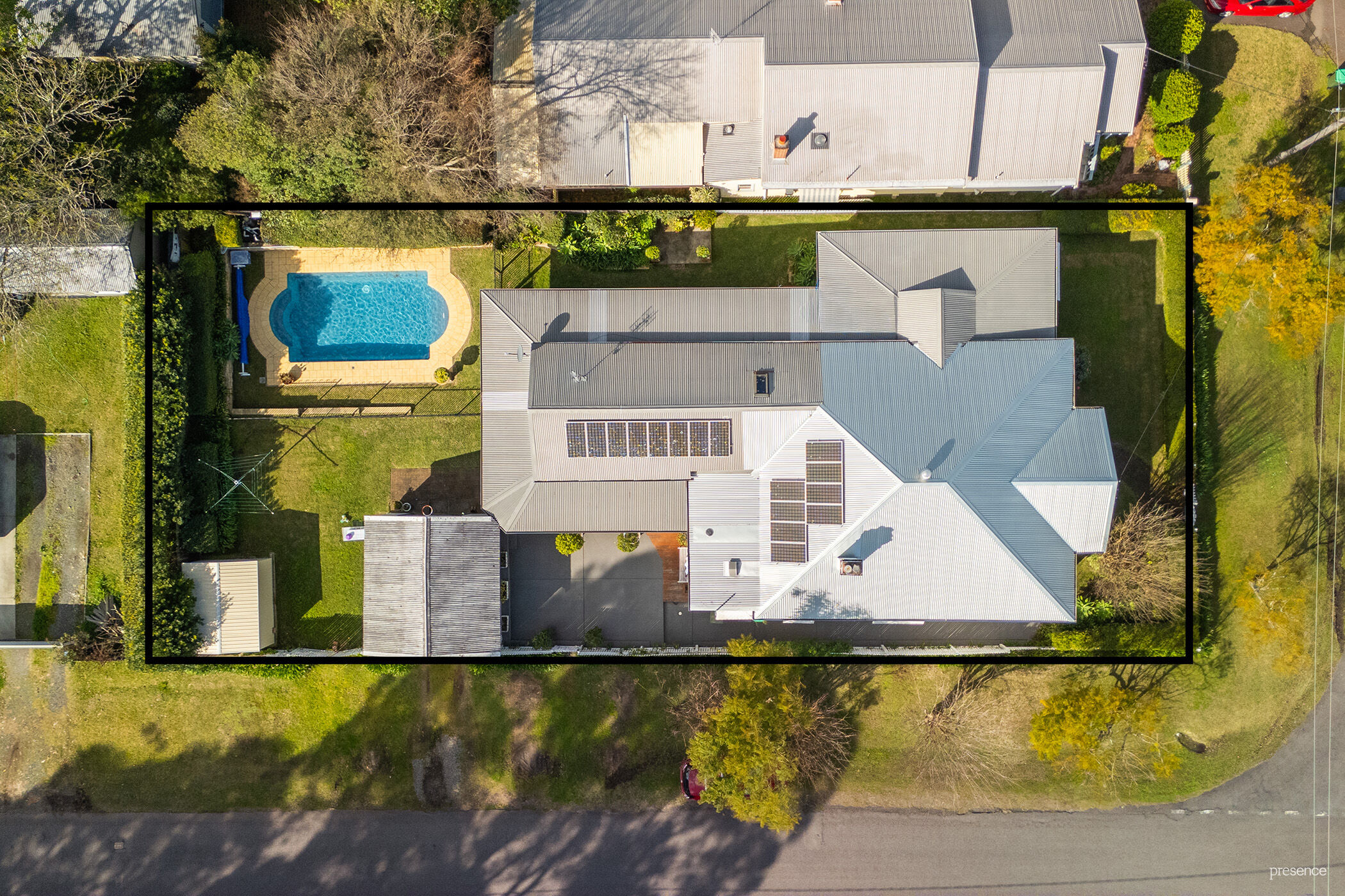 – Ducted air-conditioning throughout provides year-round comfort while 16 solar panels contribute to sustainable living.