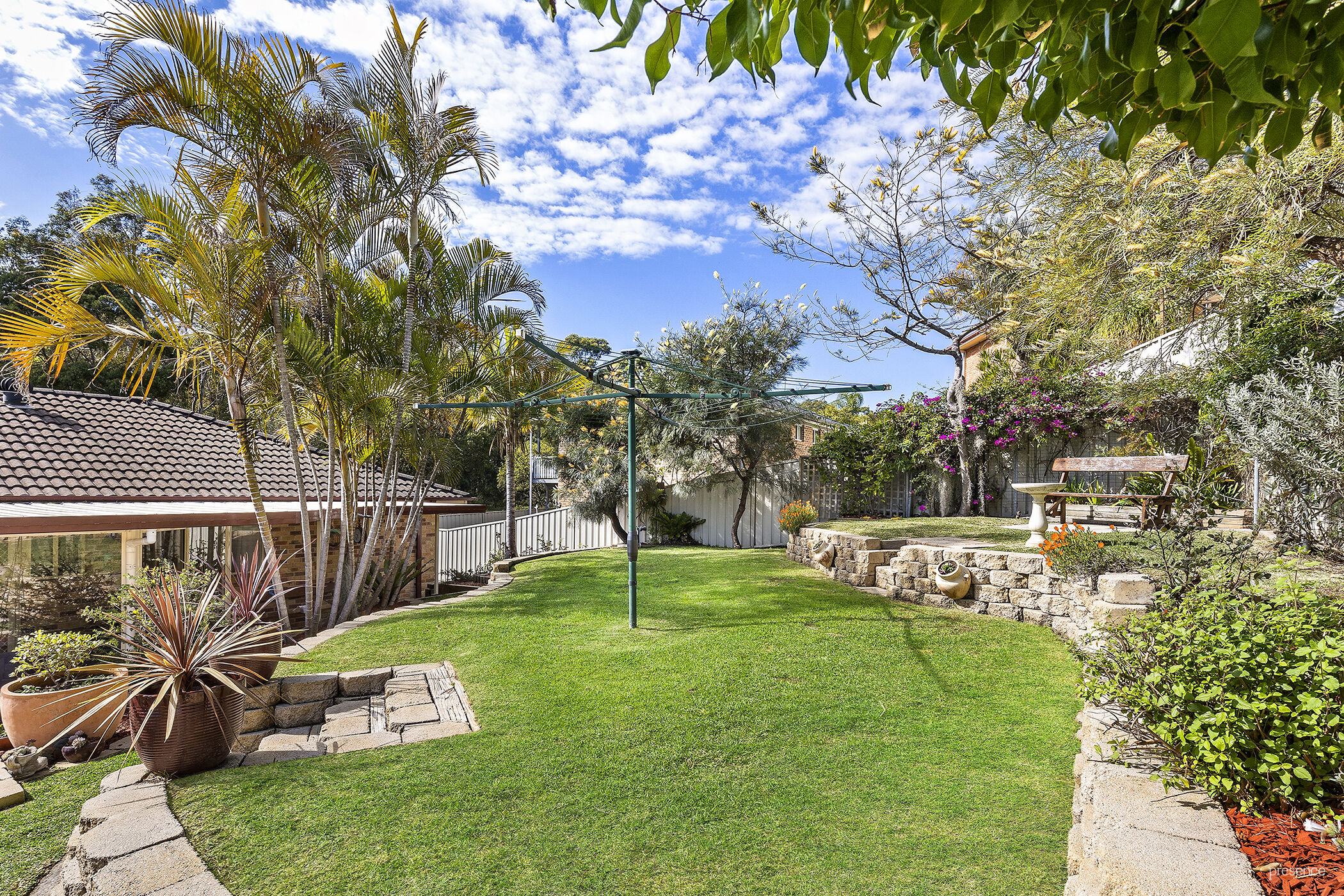 – Beautiful, terraced backyard with grevilleas and natives that attract birds