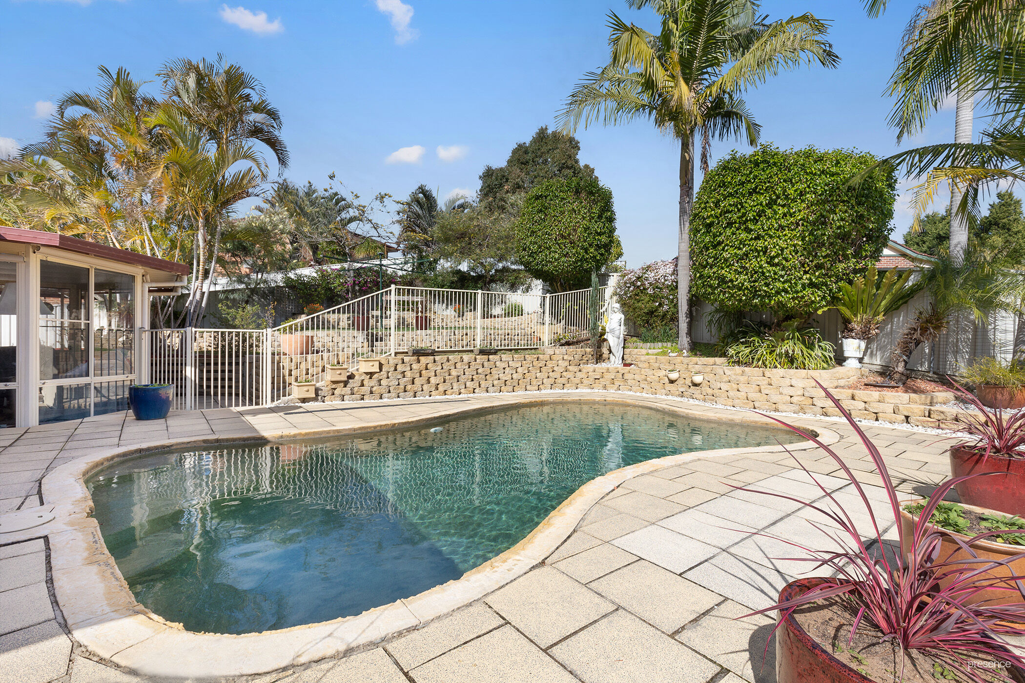 – Covered entertaining area, saltwater pool