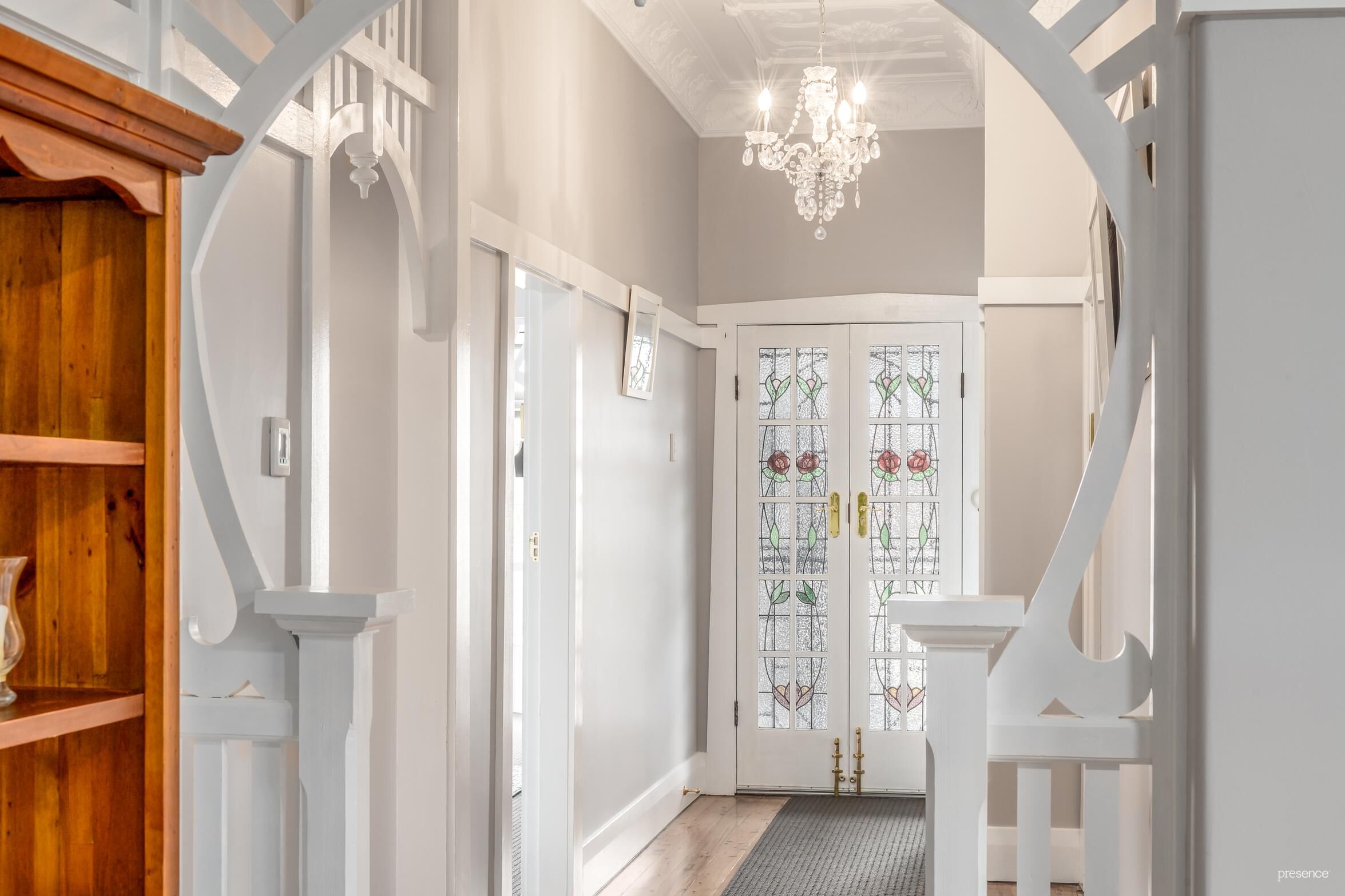 The elegant facade entices the eyes with stunning leadlight windows and a French front door along with a traditional front verandah that’s a delightful spot to sit with the afternoon sun on your face. Inside, a central hallway showcasing timber floors and spectacular fretwork and ornate ceilings splits two huge bedrooms including a stunning master with bay window, a bathroom and a formal lounge room featuring a wood burning fire. Two additional bedrooms are served by a contemporary new bathroom, while an open plan kitchen, dining and family living area at the rear open to all-weather alfresco entertaining and level lawns.