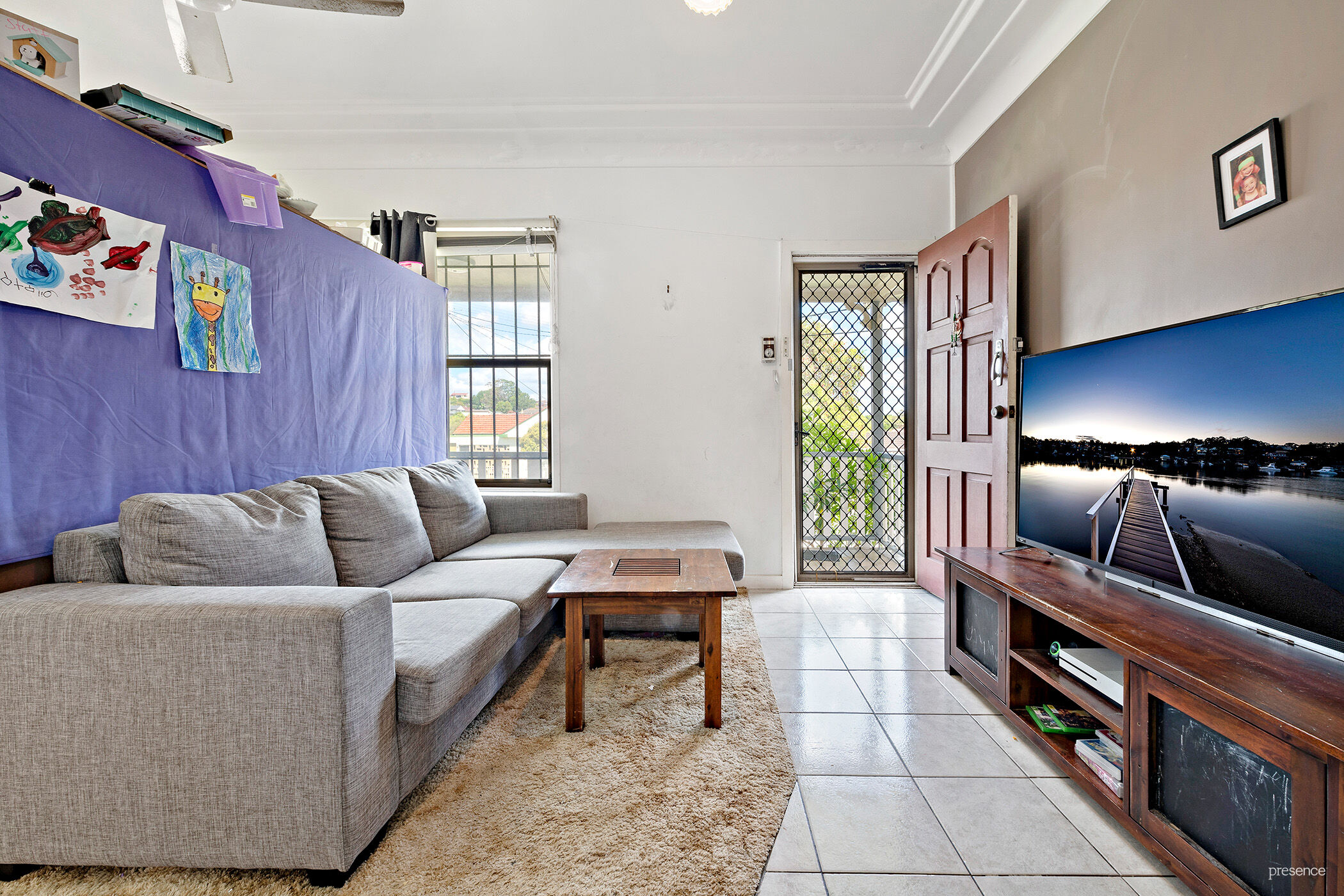 • The light filled living room enjoys air-conditioning and ceiling fan