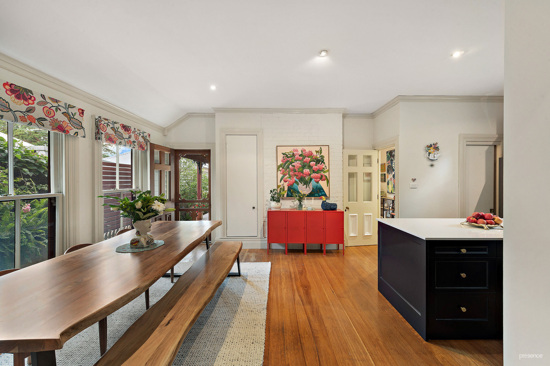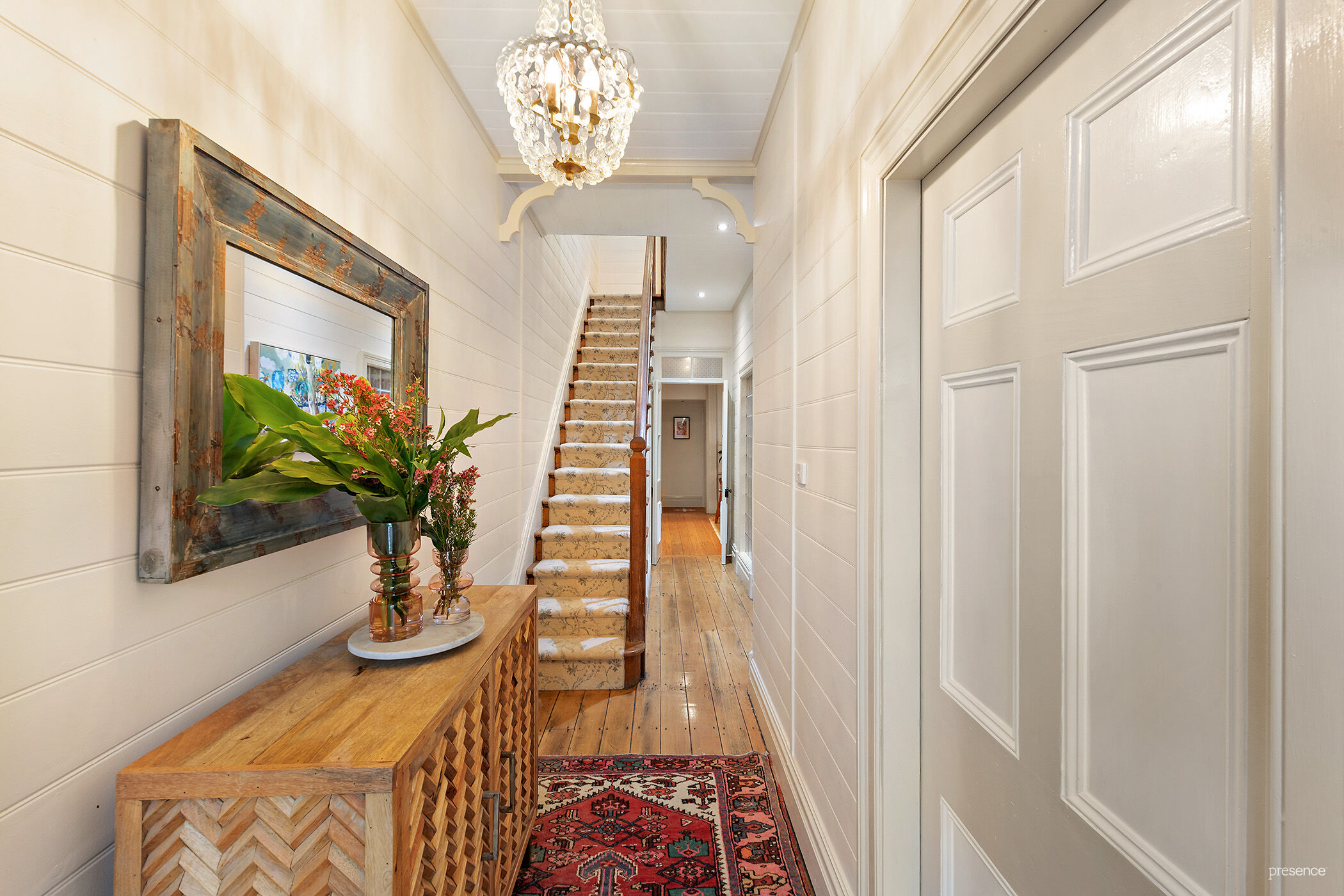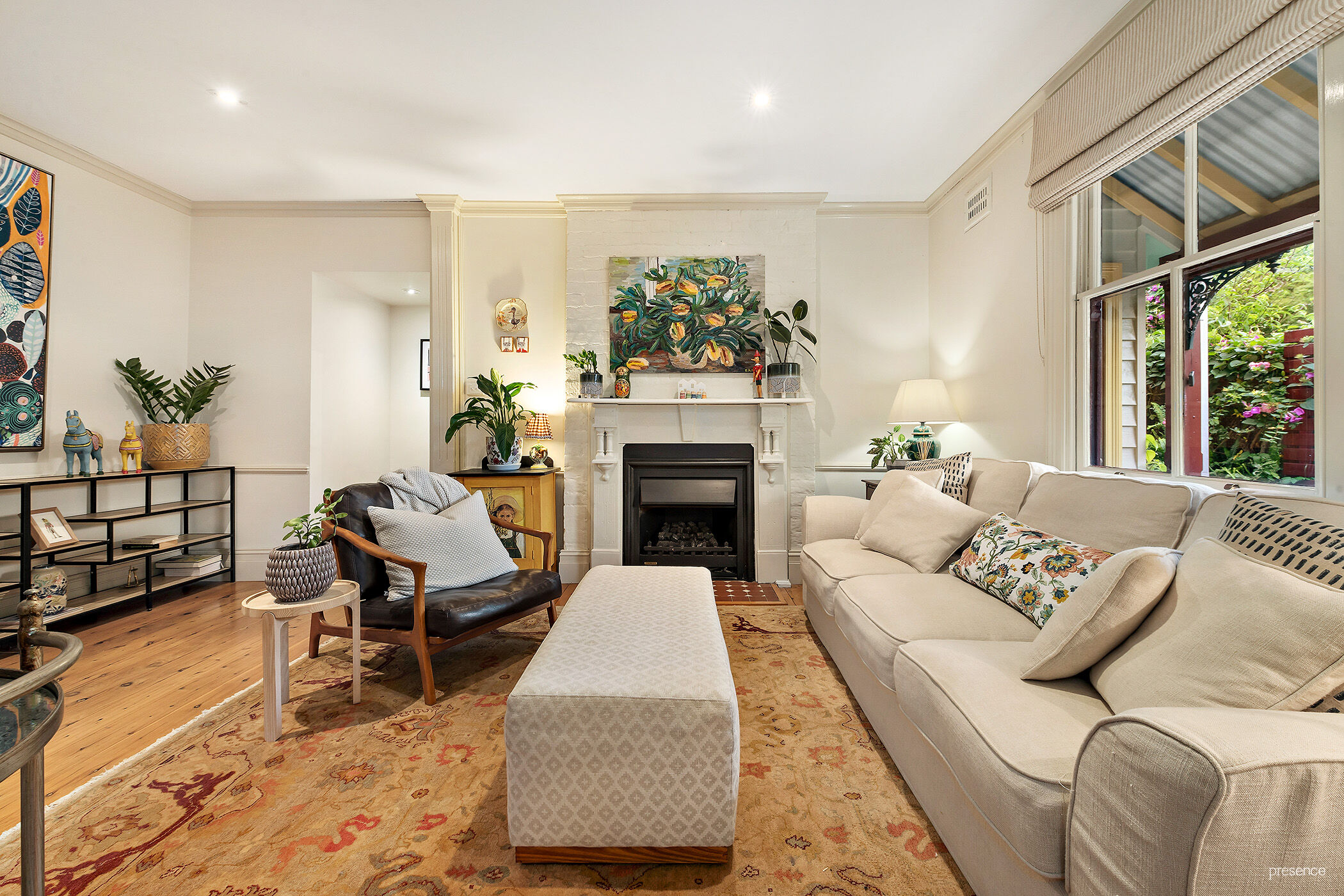 a filigree iron balustrade on the upper balcony completes its classic kerb appeal. Inside, the home has undergone a sympathetic renovation with an interior design that seamlessly blends period features with contemporary style.