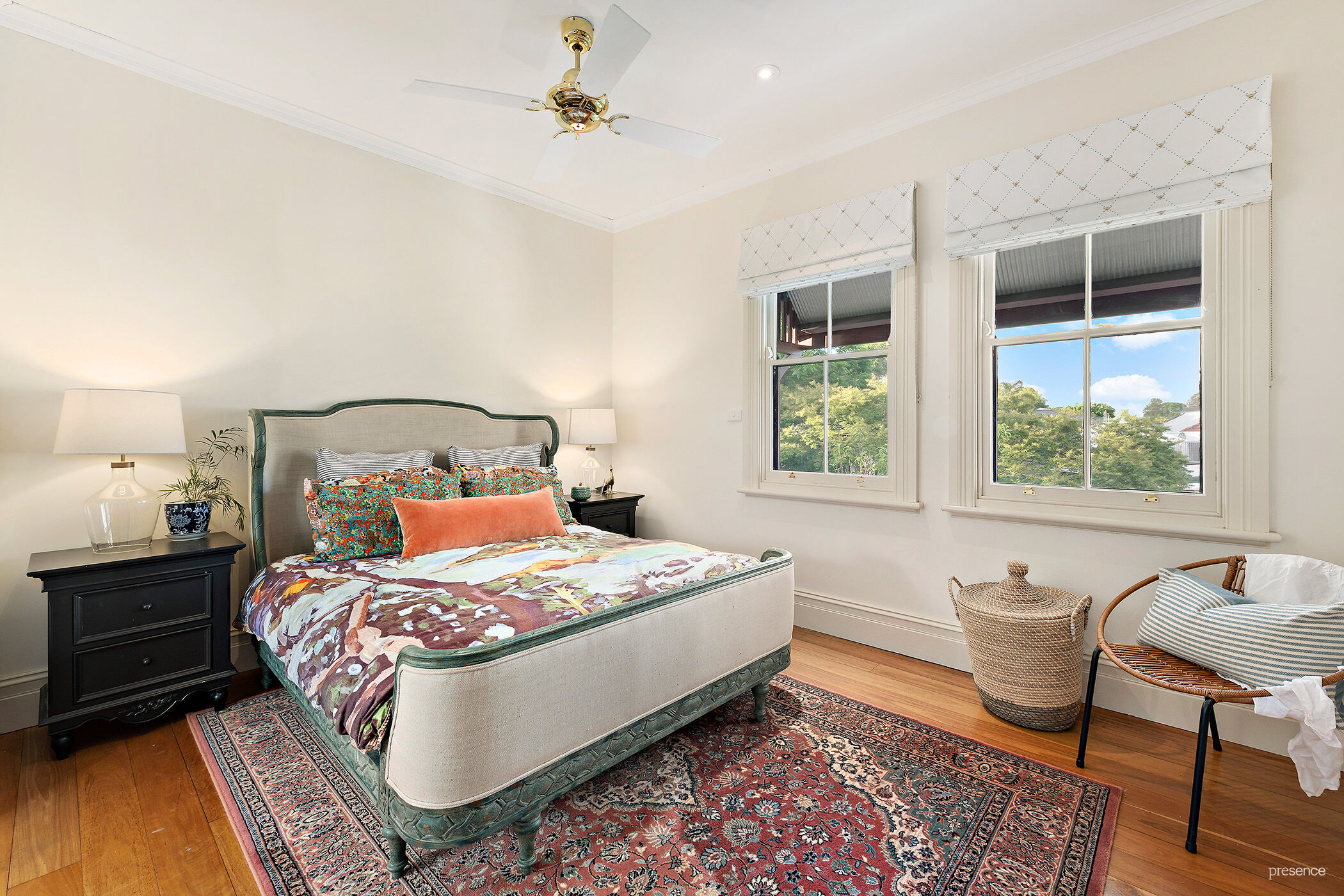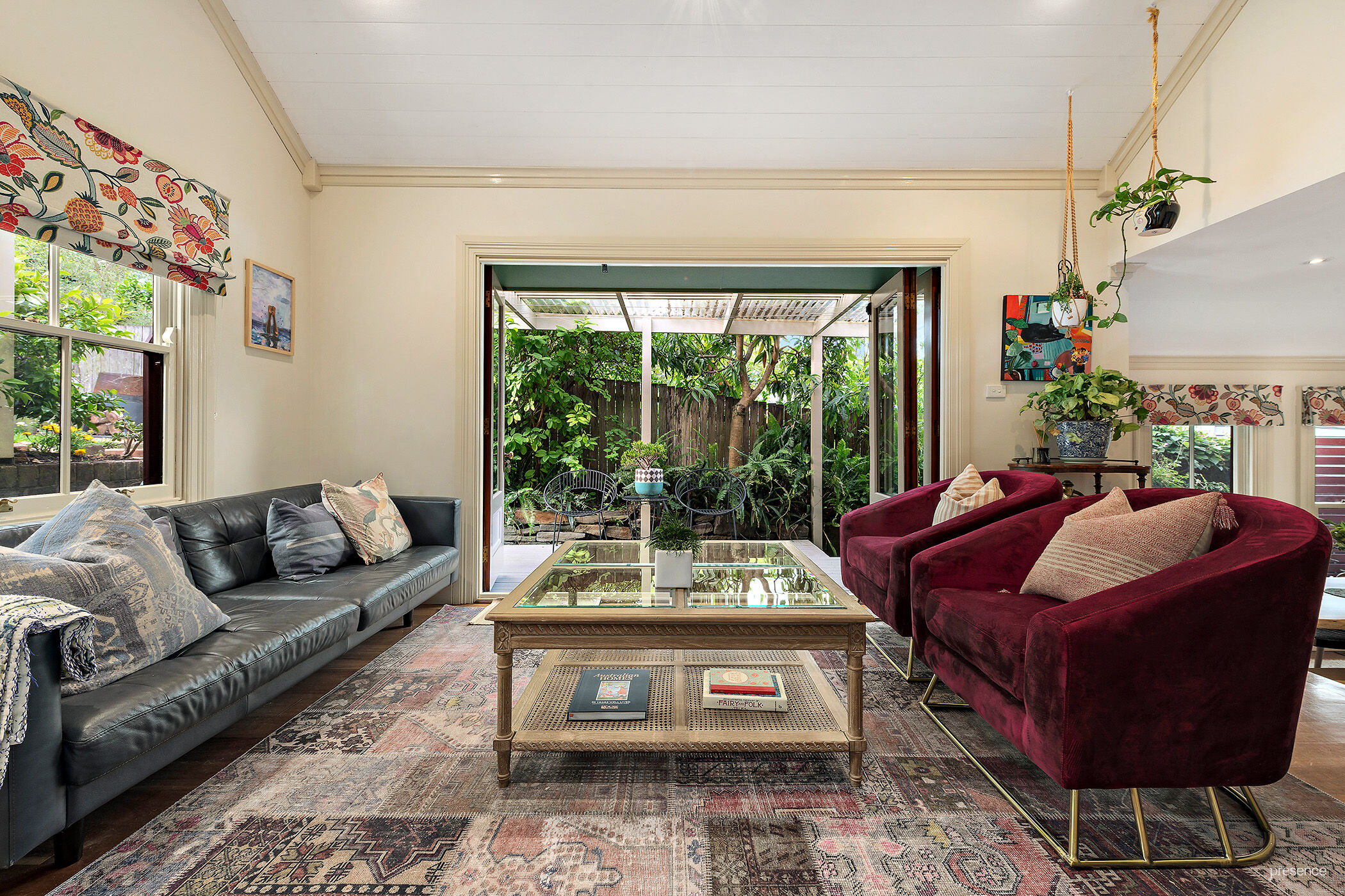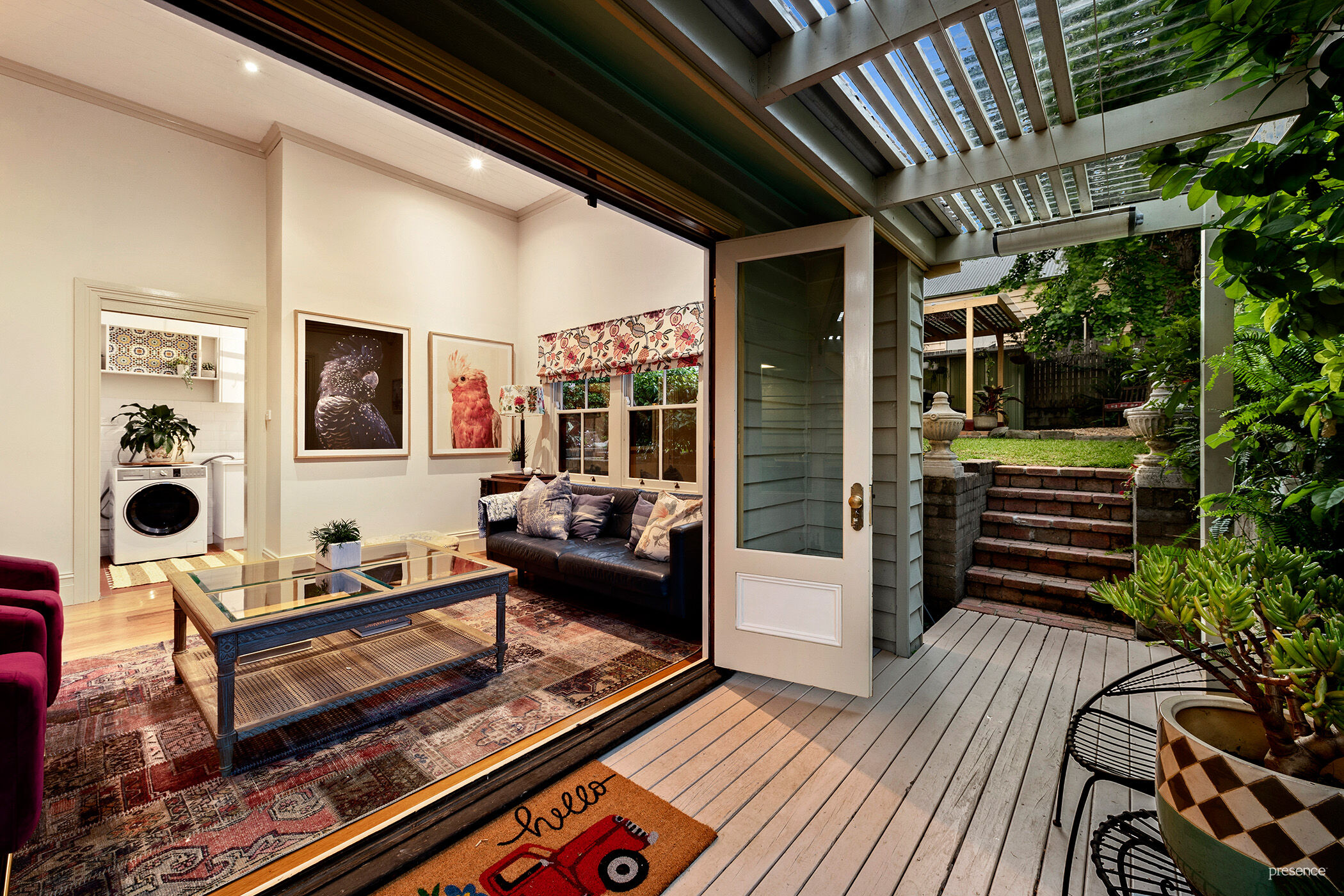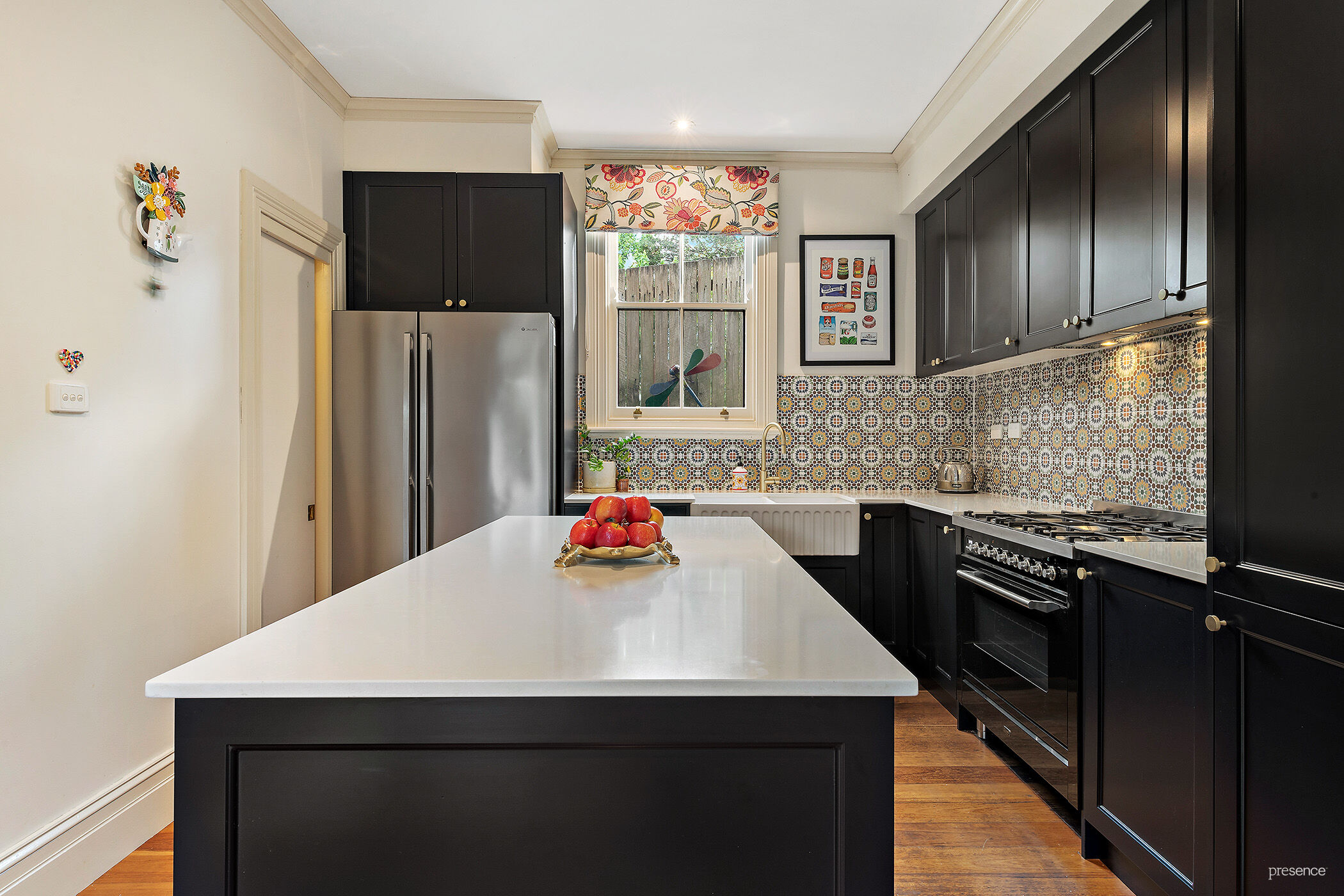 a filigree iron balustrade on the upper balcony completes its classic kerb appeal. Inside, the home has undergone a sympathetic renovation with an interior design that seamlessly blends period features with contemporary style.
