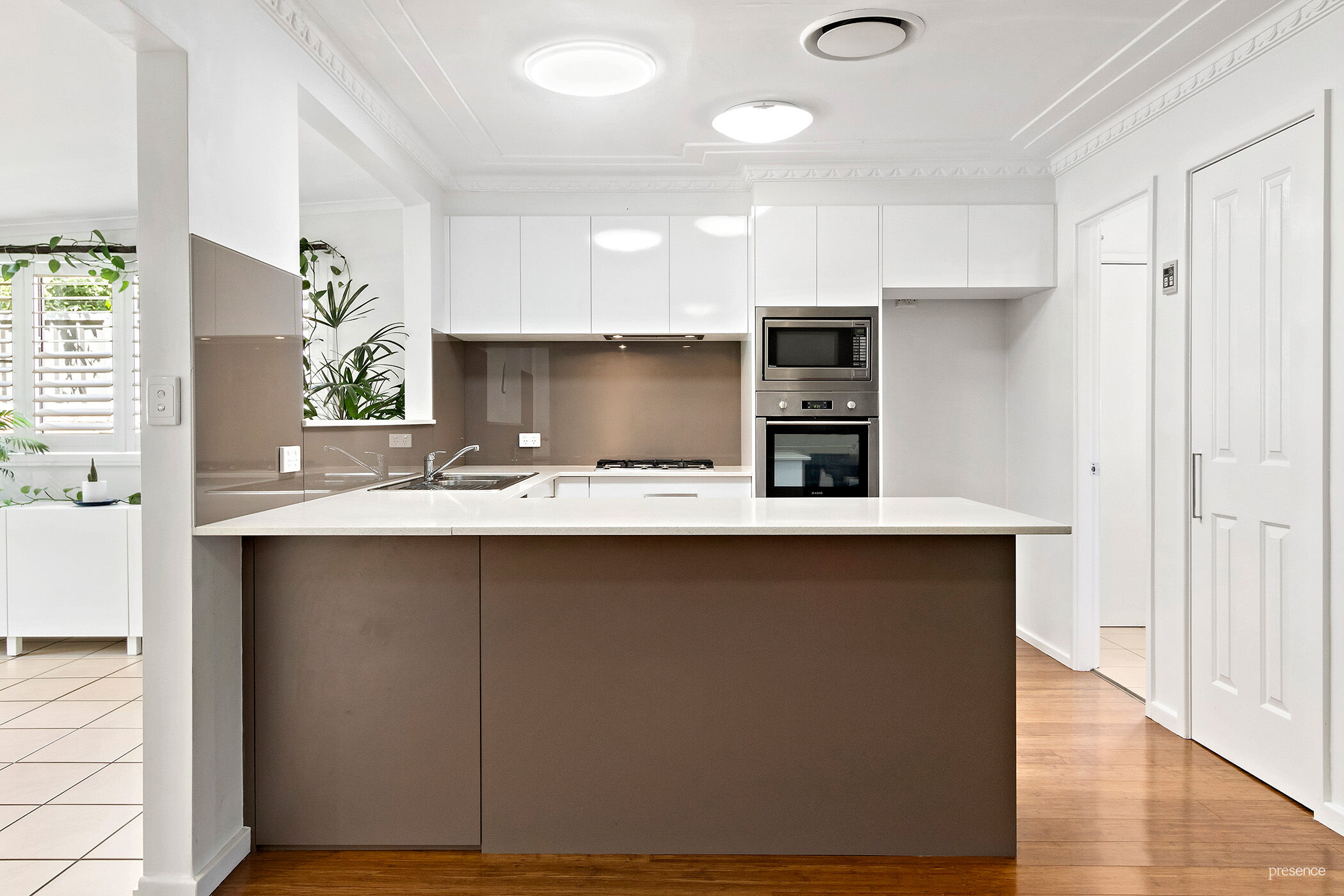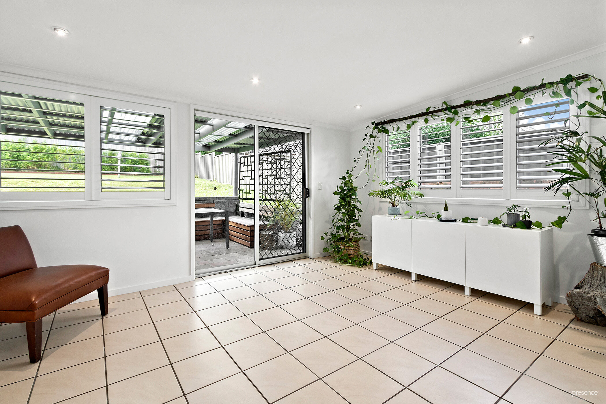 – Stylish plantation shutters and LED downlights with a dimmer switch