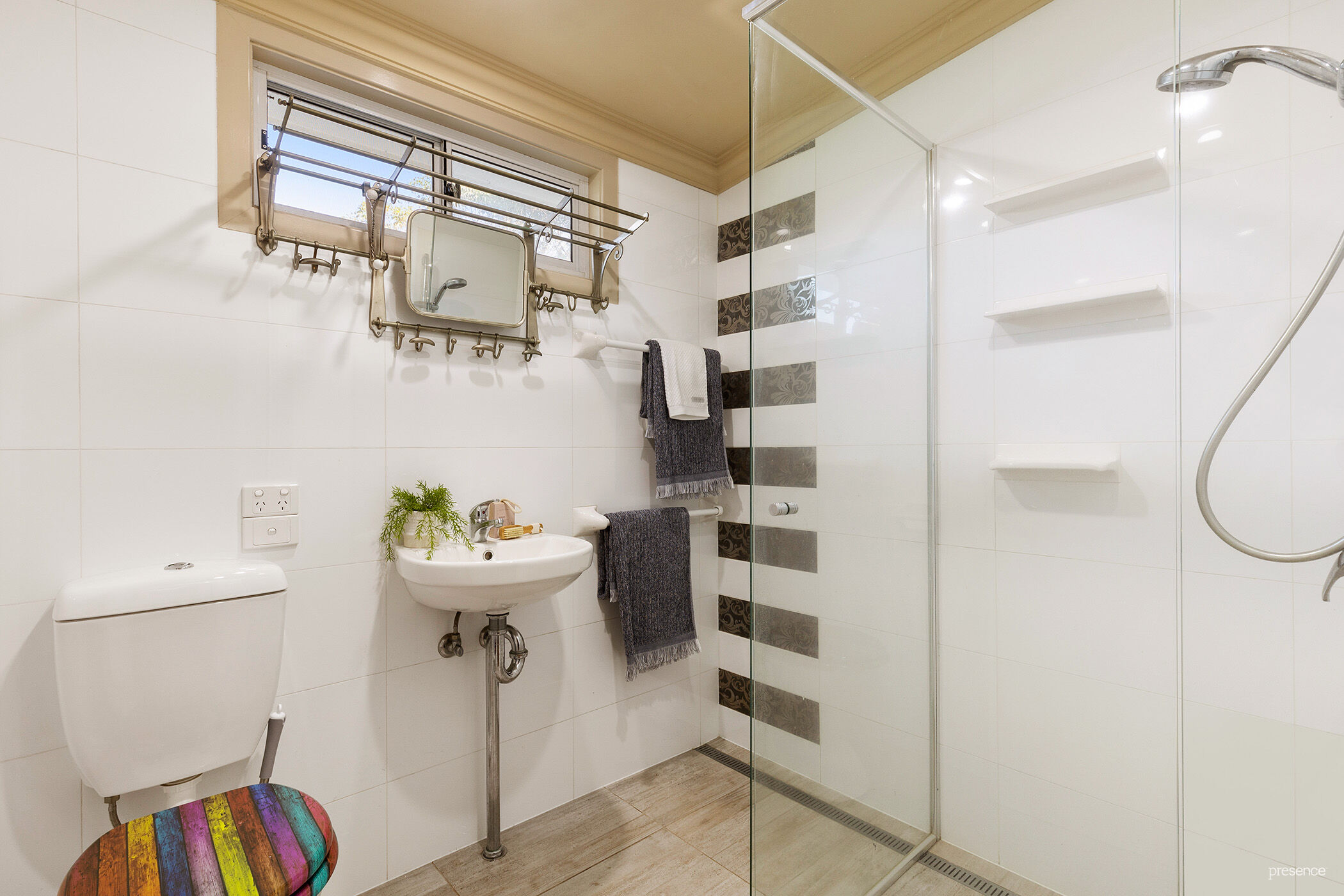 – Recently updated bathroom with floor to ceiling tiles and sleek shower