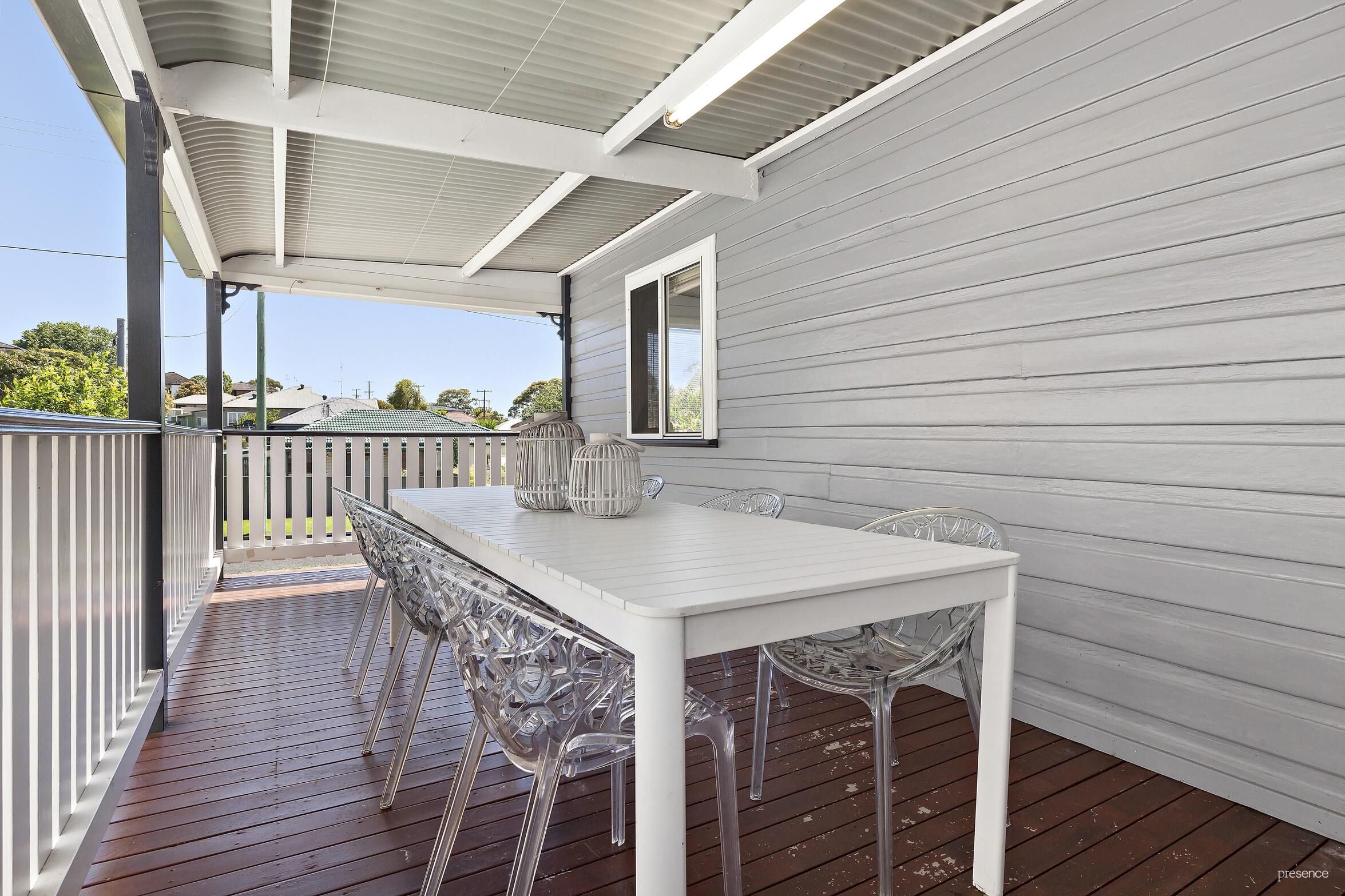 The north side of the home, facing Tyrrell Street, boasts a lush lawn graced by a fragrant frangipani tree, ideal for creating a private sanctuary or safe play area for children and pets. Underneath the home, a single garage, and carport accommodates your car and offers additional under house storage.