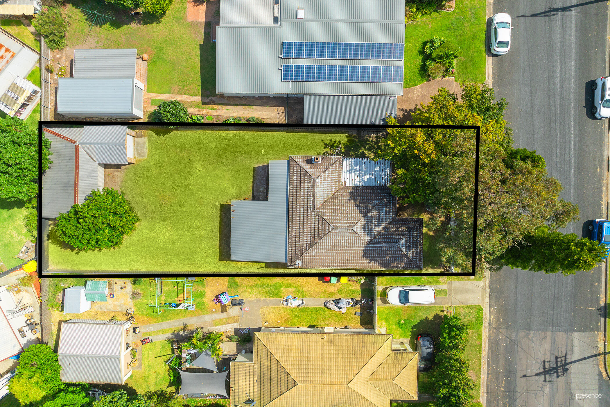 – Large lawned yard with potential for a pool, gardens, or a granny flat STCA.